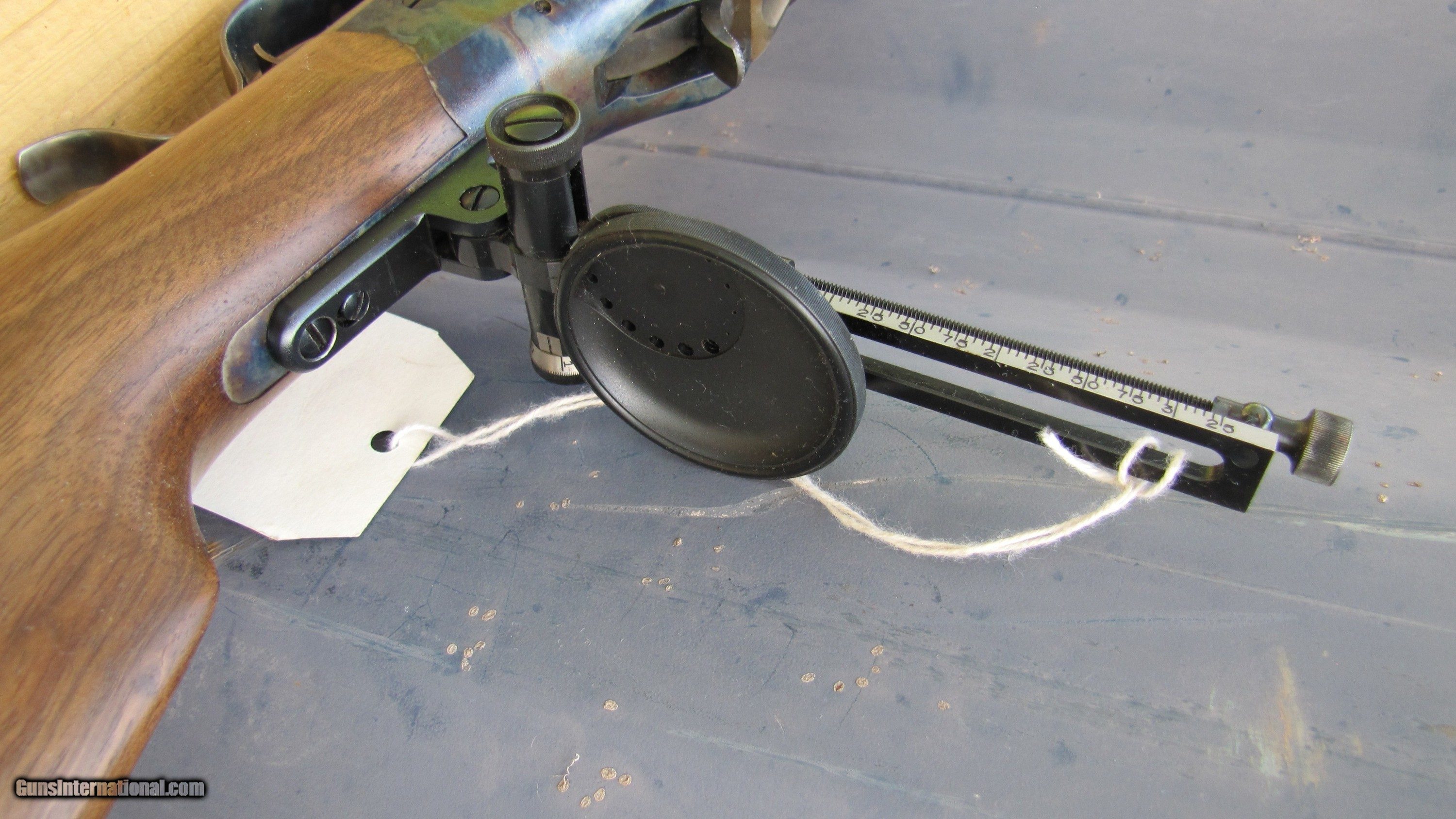 Description: Here is a C Sharps Arms Co Inc Old Reliable - 45-70 Govt. This rifle is marked C Sharps Arms Co Inc, Big Timber Montana USA 85-886 in the side of the receiver. The barrel is marked Old Reliable and has the company name repeated along with 45 CAL 2-1/10. It has an awesome tang mounted Verneer peep sight with a rotating disk that allows for the changing of the aperture size. The front sight is case colored and is a tube style with a aperture inside. The barrel is 34" long and is 1-1/8" in thickness. The bore is excellent. The rifle is very heavy and there is a 1.5 lb mercury recoil reducer in the butt. There is a 1.5" crack on the stock where it meets the receiver but it still feels solid. This would make a super long range bench or buffalo rifle. $60 shipping. We are required to charge 8.25% for Texas residents. There is a 3.5% fee if paying by credit card. SOLD Rifle Caliber: .45-70 Government Manufacturer: C Sharps Arms Co Model: Old Reliable Serial Number: 85-886 Barrel Length: 34 Condition: Very Good Metal Condition: Excellent Wood Condition: Very Good Bore Condition: Excellent Extras: Mercury Recoil Reducer |