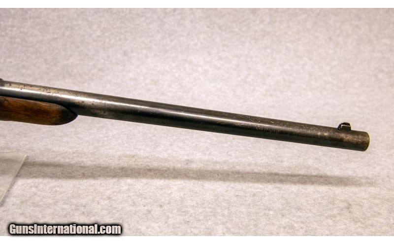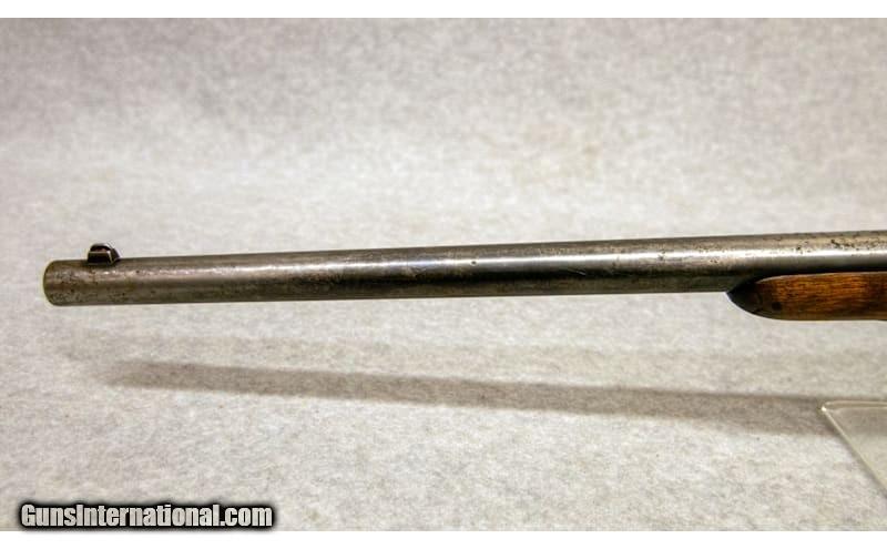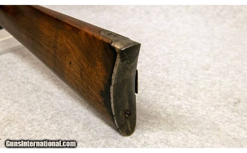 Description: C. Sharps New Model 1895 Carbine, chambered in .52 Cal. Features include: walnut stock, blue barrel, patch box, iron furniture and color case-hardening on the following: breechblock, level, receiver, trigger plate. You can see the Sharps and RS Lawrence patent stamps on the right side of the receiver. A new rear sight may have been put in place of a damaged original as there does not appear to be the usual stamp on it. Rifling is surprisingly crisp, and the bore is clean. Metal has varying amounts of corrosion and patina present. .52 Cal Rimfire SOLD Chambers: .52 Cal Metal Condition: Fair Wood Condition: Fair Bore Condition: Very Good Barrels: 22'' Stock Dimensions: 13.5'' Butt Pad: Metal Sights: Adjustable Rear Item Location: Fort Mill, SC |
