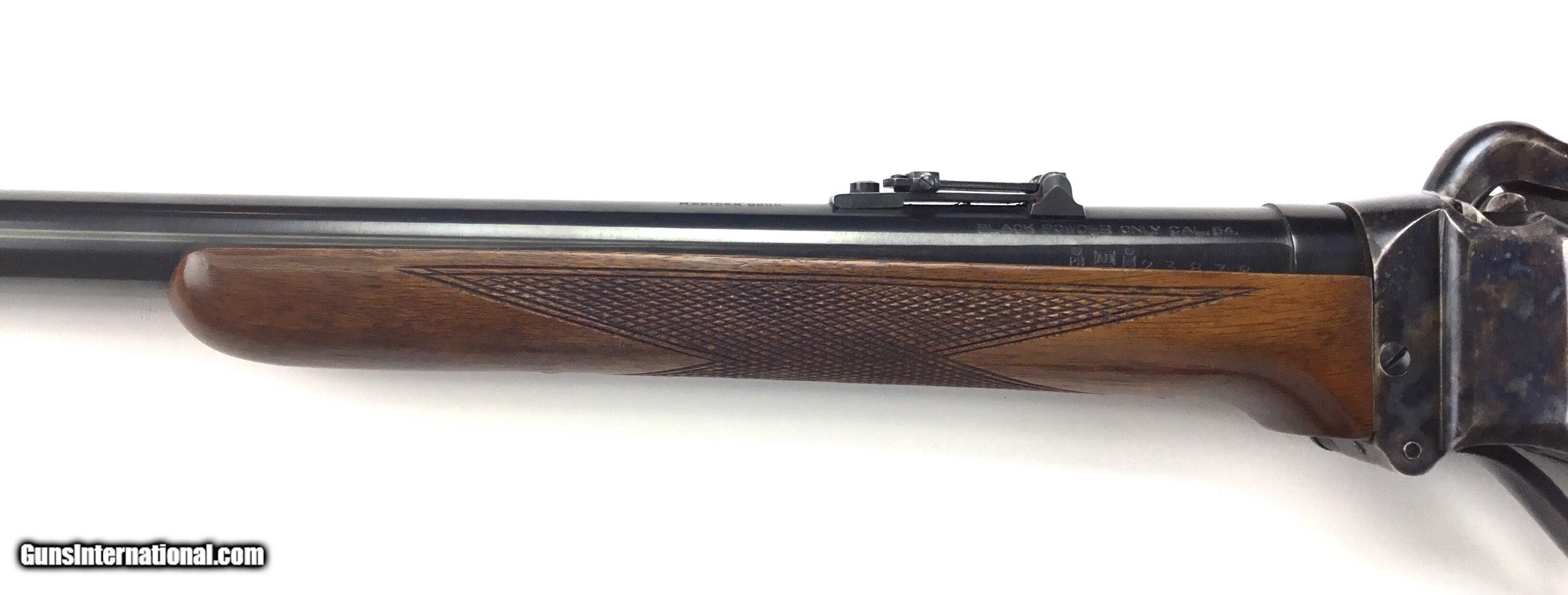 Description: IAB MARCHENO is a reproduction sporting rifle in .54 Cal. percussion, BLACK POWDER only. U.S. Sharps’ Rifle Co. Meriden, Conn., imported by Sile New York, N.Y.. C. Sharps’ Pat. Sept. 12th 1848 on the left side of the receiver and C. Sharps’ Pat. Oct. 5th 1852 on the right side. Barrel Length is 28 1/2”. Made in Italy. Hampel’s Gun Co since 1919. SOLD |