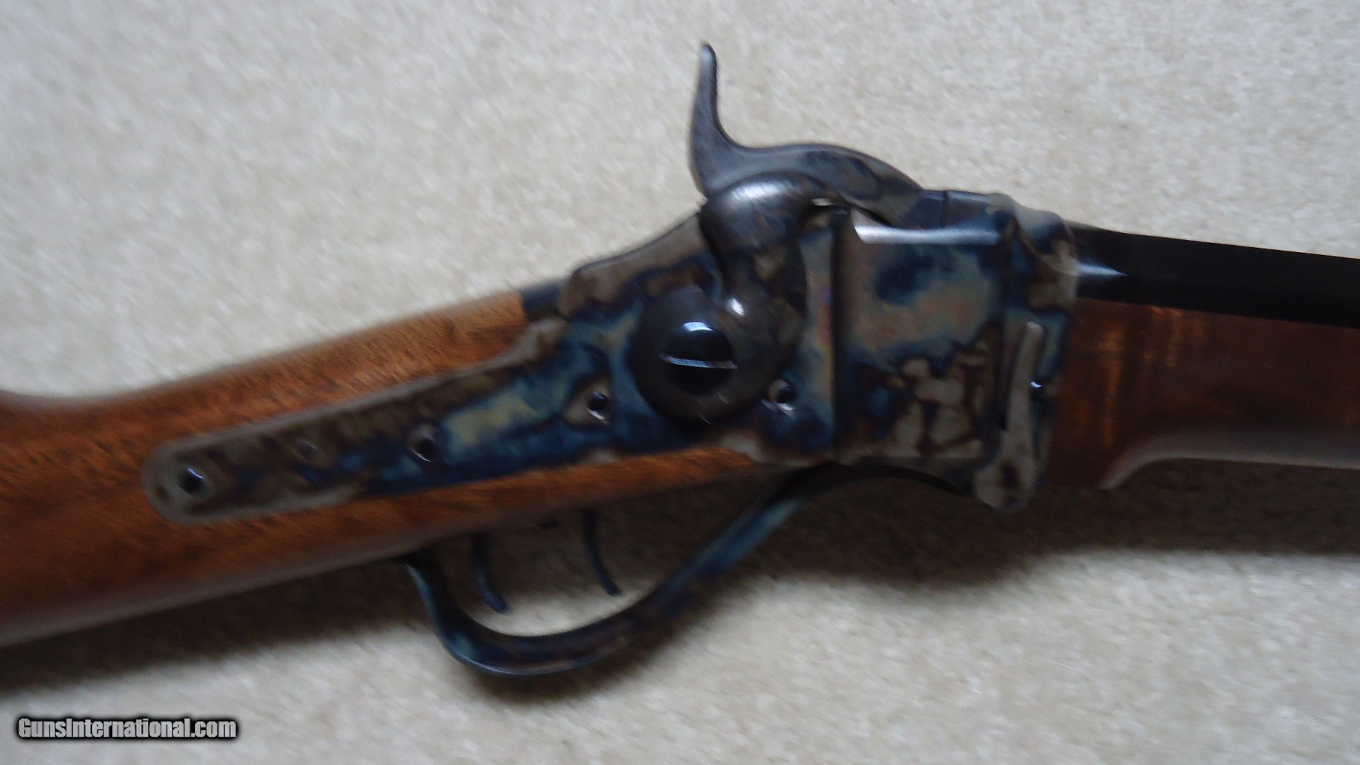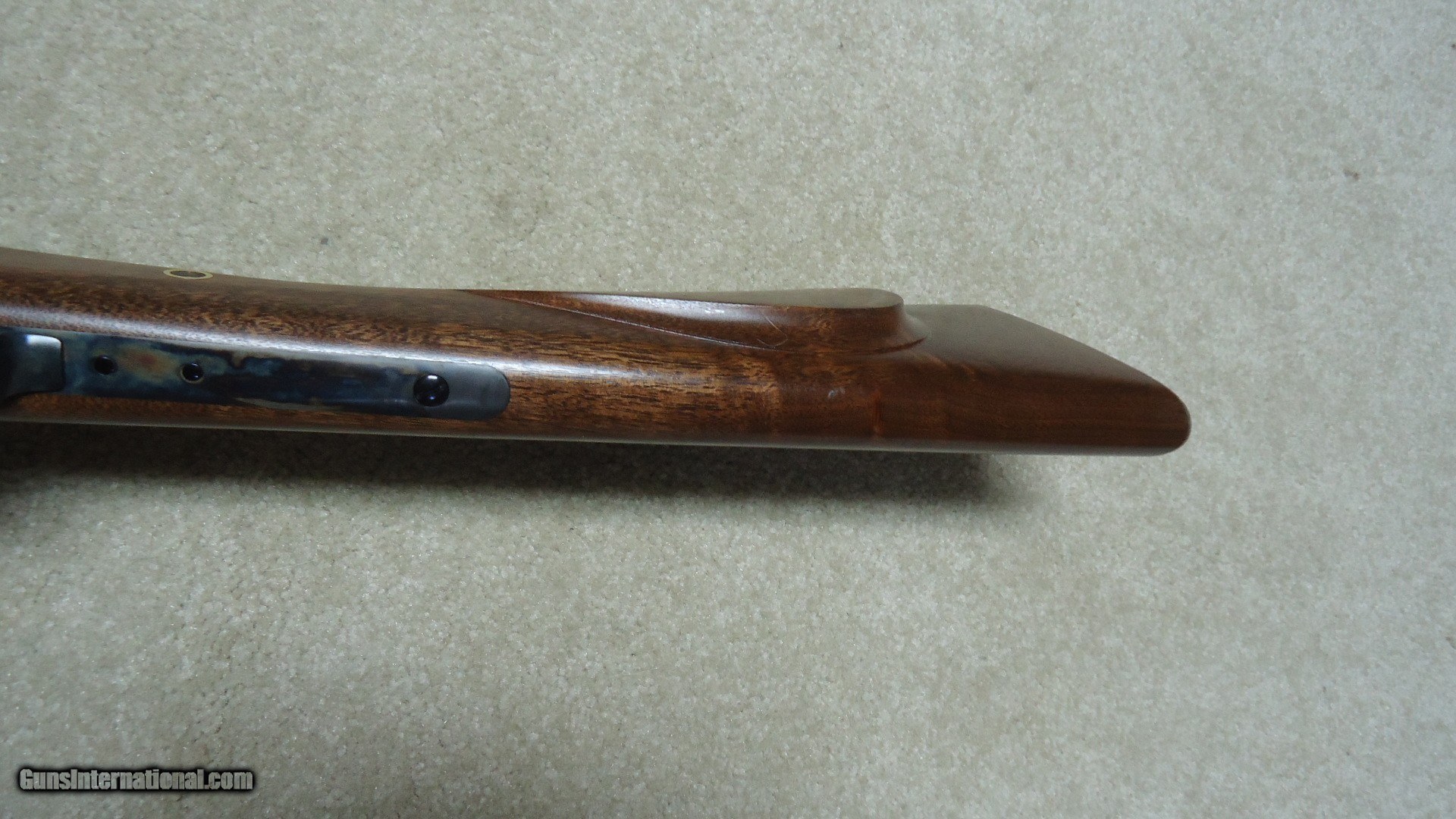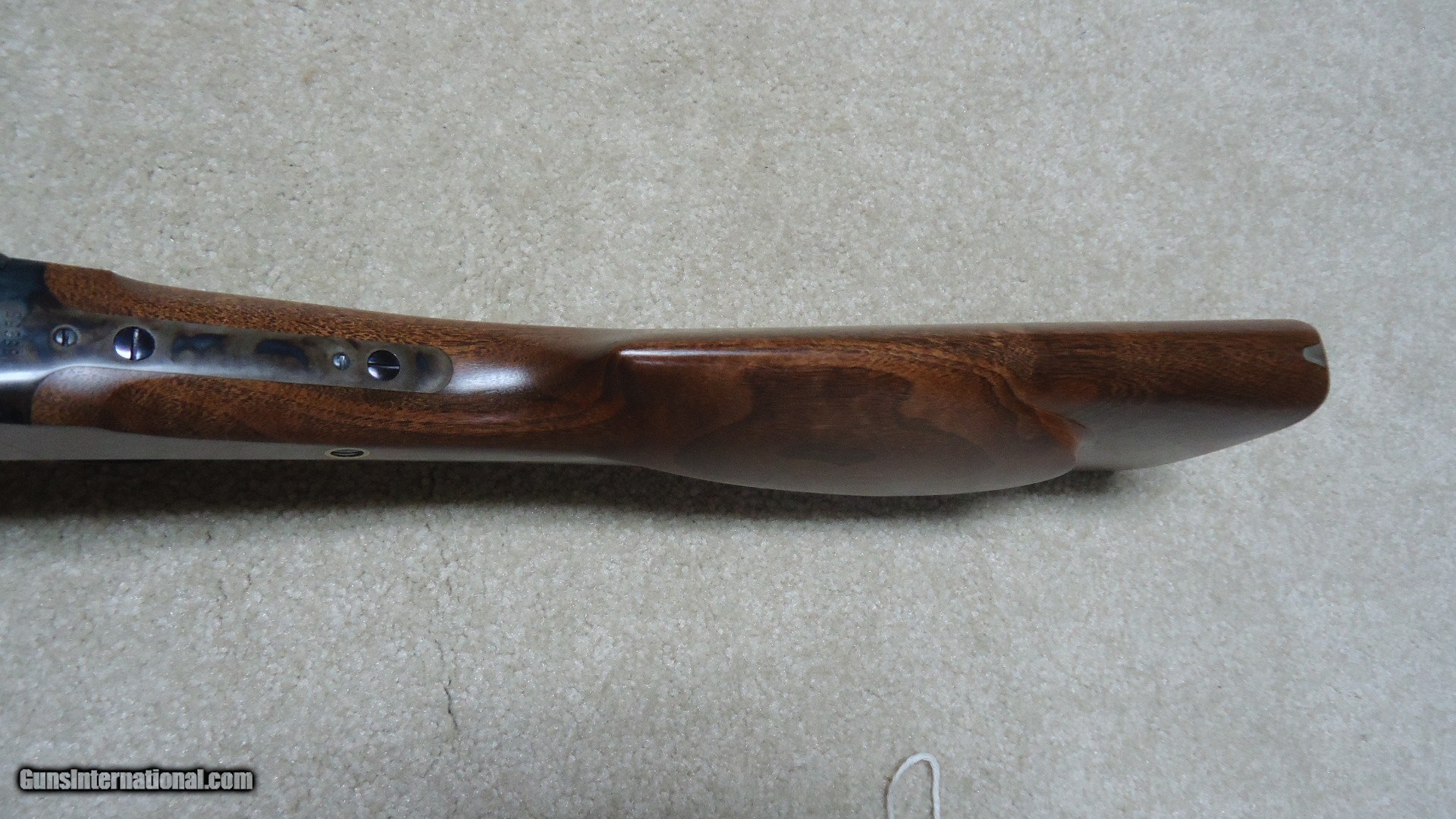Description: JUST IN FROM SHILOH SHARPS: 1874 Saddle Rifle (this model comes standard with straight stock, shotgun butt and cheek piece), .45-70, 30" heavy octagon barrel, full-buckhorn rear sight, extra-fancy walnut, AA, pewter forend tip, checkered steel butt plate, brass escutcheons, accent line on the cheek piece, polished barrel, polished/fire blued screws, bone and charcoal pack harden case colors, built to be like a very fancy heavy sporting/buffalo rifle of the mid-1870s period....................$4247.17 (#10949) PRICE INCLUDES ALL SHIPPING ETC. NOTE: I HAVE BEEN A SHILOH DEALER SINCE 1993. I CAN ALSO TAKE YOUR CUSTOM ORDER AND HAVE IT TO YOU IN USUALLY 6 MONTHS OR SO. SOLD Manufacturer: SHILOH RIFLE Model: 1874 SADDLE RIFLE Serial Number: 88XXB Barrel Length: 30" HEAVY OCT. Condition: NEW IN BOX |