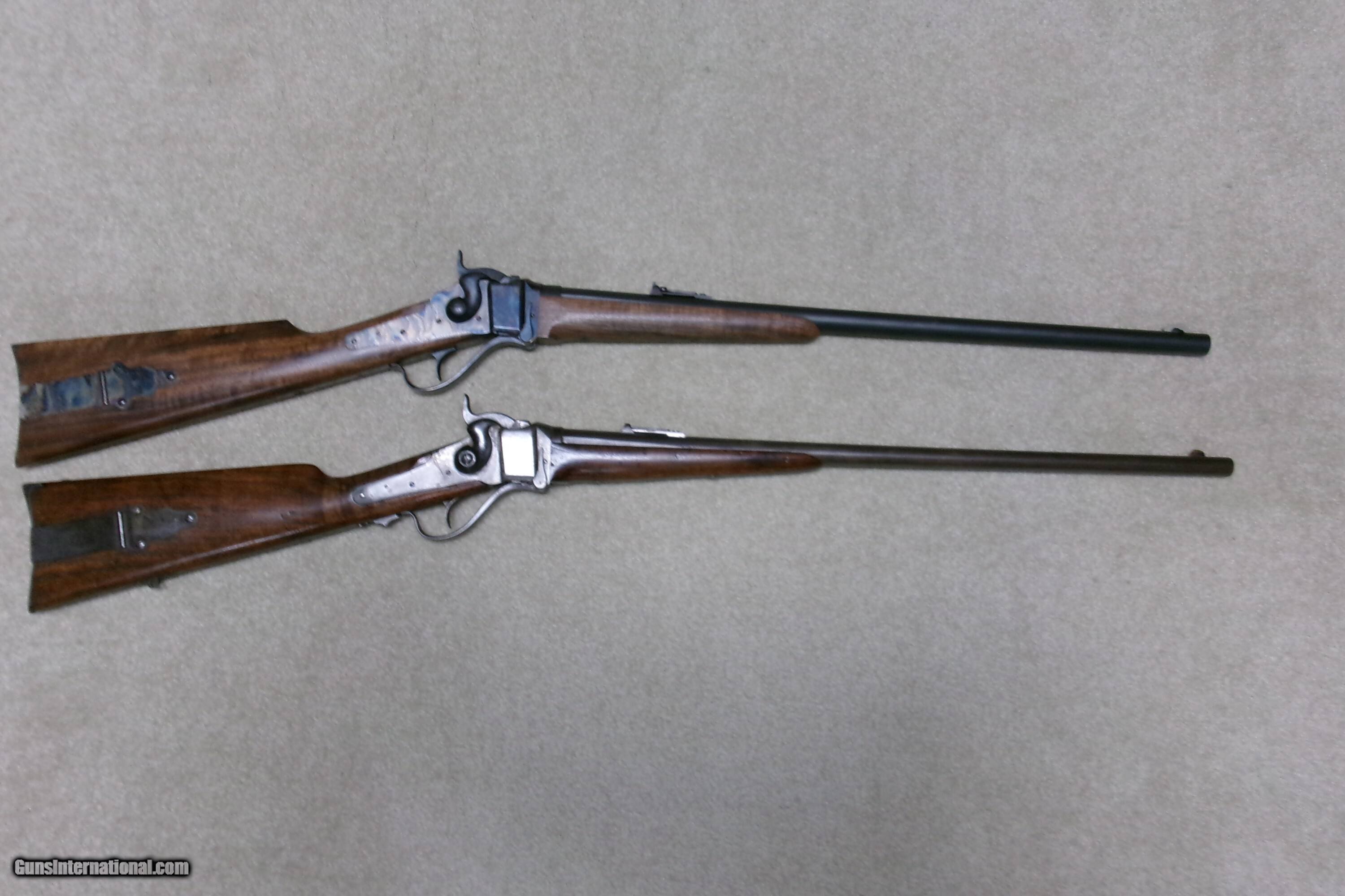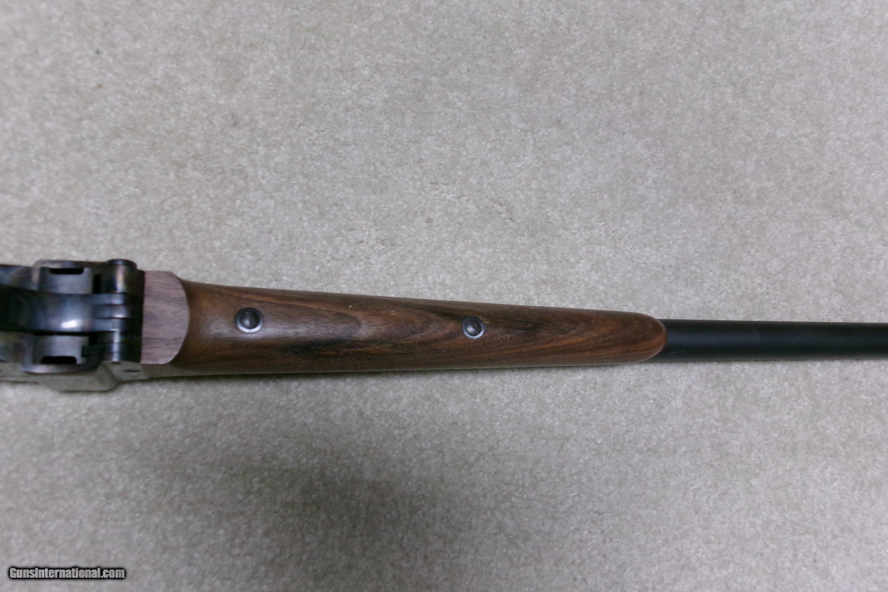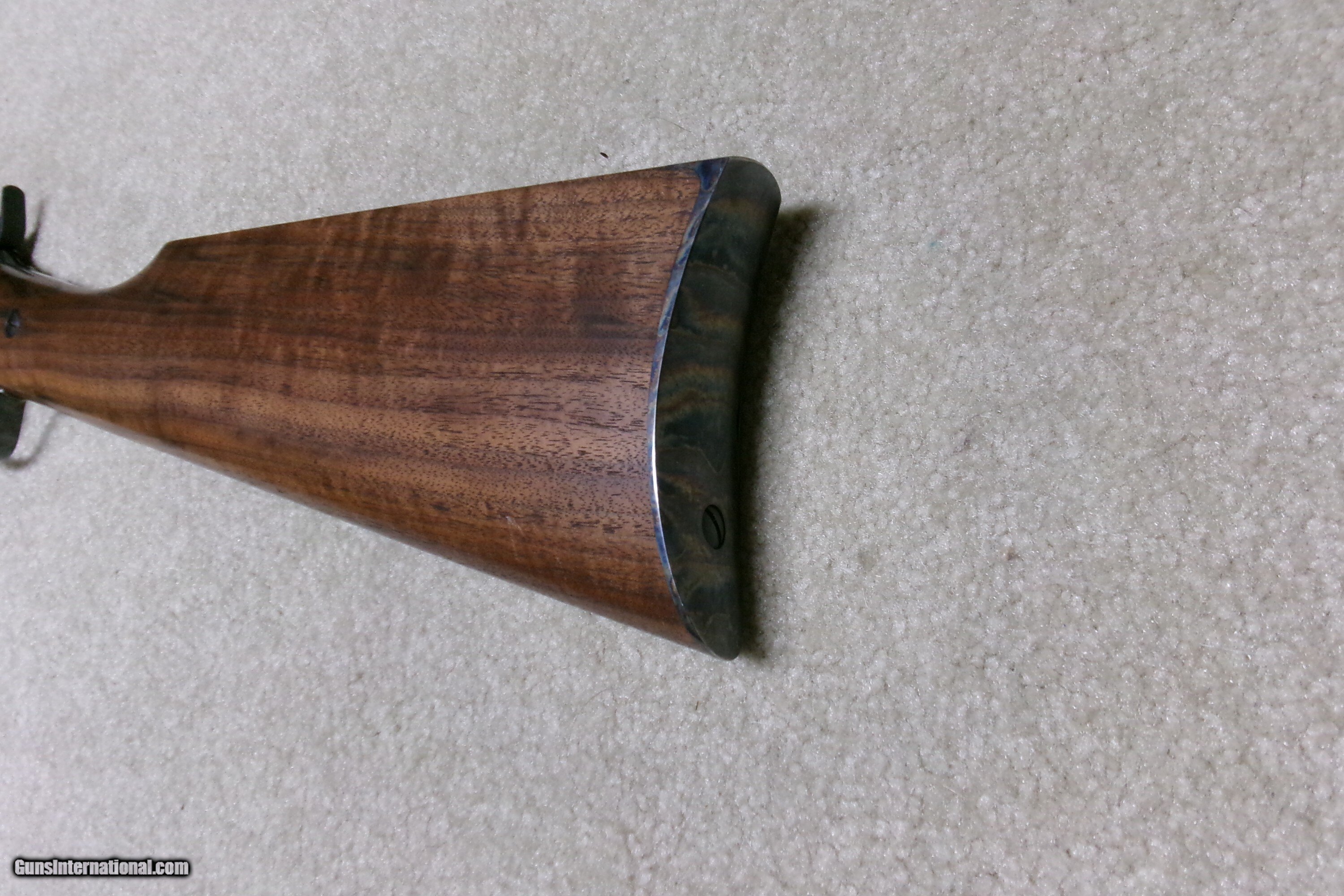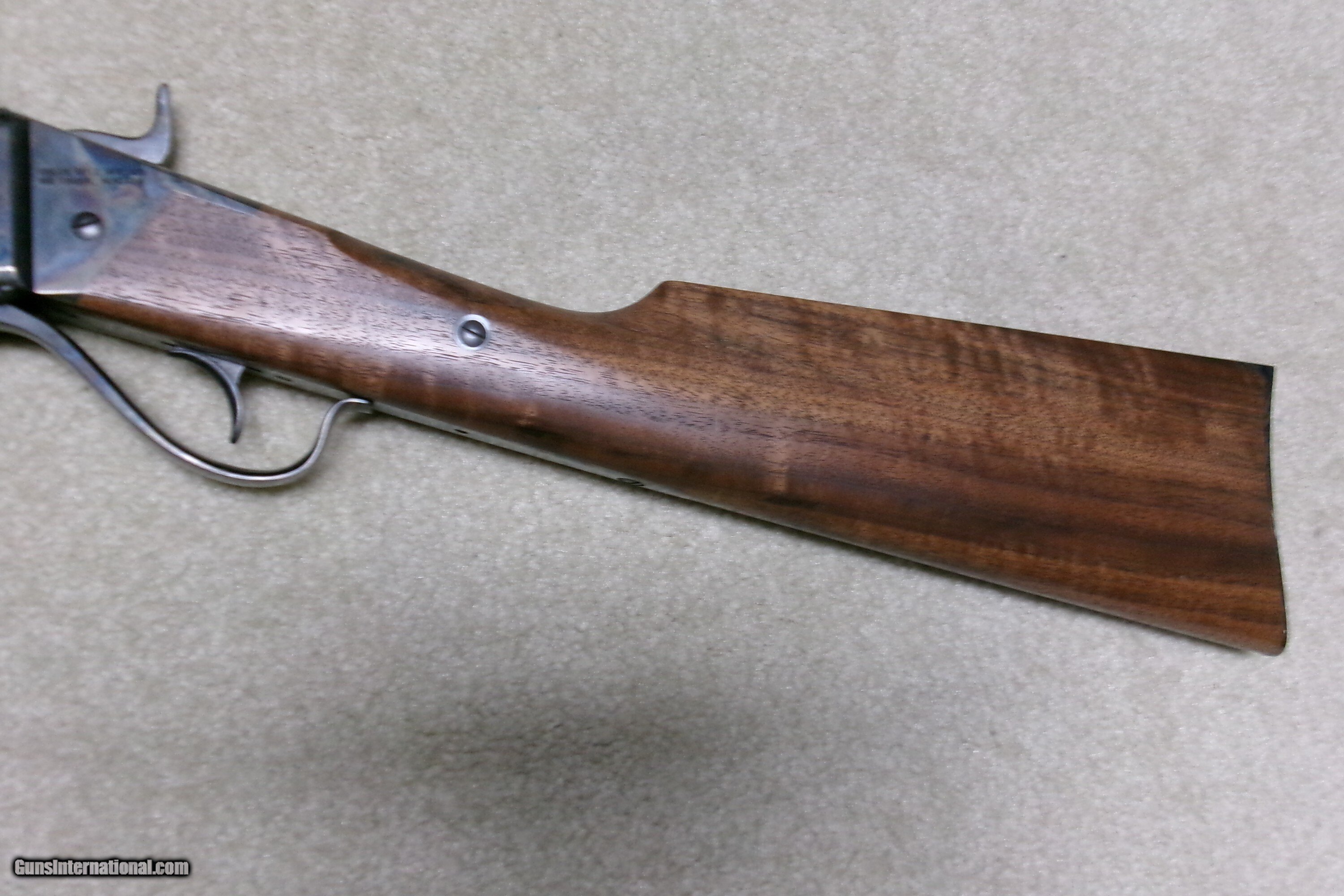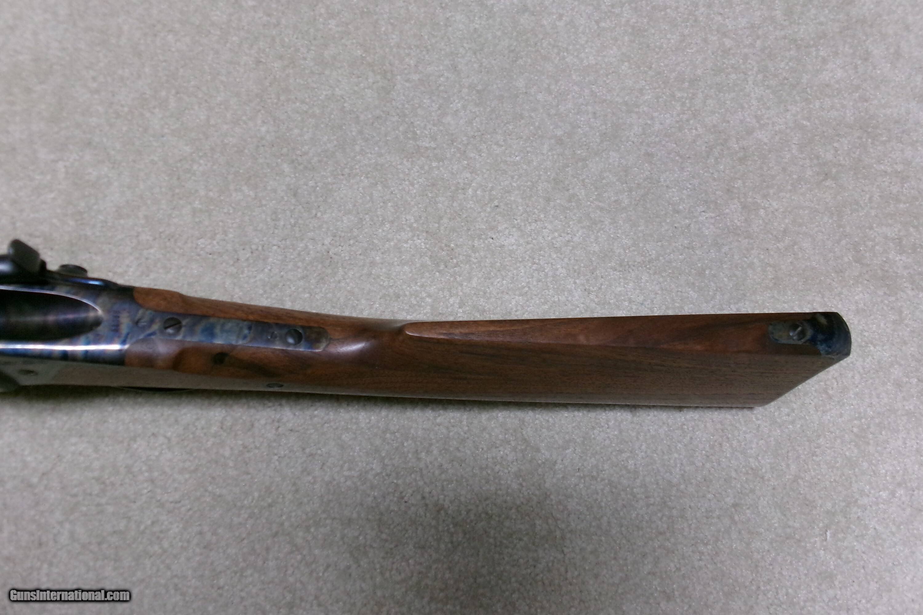 Description: RARE SHILOH SHARPS OFFERING! SPECIAL EDITION 1874 .45-70 “HUNTERS RIFLE.” About 15 years ago, as a Shiloh Dealer, I contracted for ten (10) non-cataloged “Hunter Rifles.” Six were in .45-70 and four were in .50-70 caliber. I copied an example shipped to Denver, Colorado in 1876. .These rifles all had non-cataloged 25” round barrels with “splinter forends,” single triggers with crisp/light pulls, patchboxes, semi-buckhorn Lawrence ladder rear sights and blade front sights. This example also has semi-fancy walnut. Of the ten, this is the first I’ve seen since shipping them in 2011 and I received it from the original owner, it looks like he never used it. Weighs right about 8 ½ lbs and balances perfectly between the receiver and rear sight. It is factory drilled and tapped with filler screws should you wish to install a tang sight. The current catalog price for this rifle (if you could even order one like this!) would be over $3700. The last photo shows it with the original rifle shipped in 1876. A chance to own a superb hunting Shiloh of which only six in .45-70 exist! My price, $3450. Rifle Caliber: .45-70 Government Manufacturer: SHILOH RIFLE Model: 1874 SPECIAL HUNTER Serial Number: 5XXXB Barrel Length: 25" ROUND Condition: LIKE NEW Bore Condition: EXCELLENT Price: $3,450.00 Contact Seller |