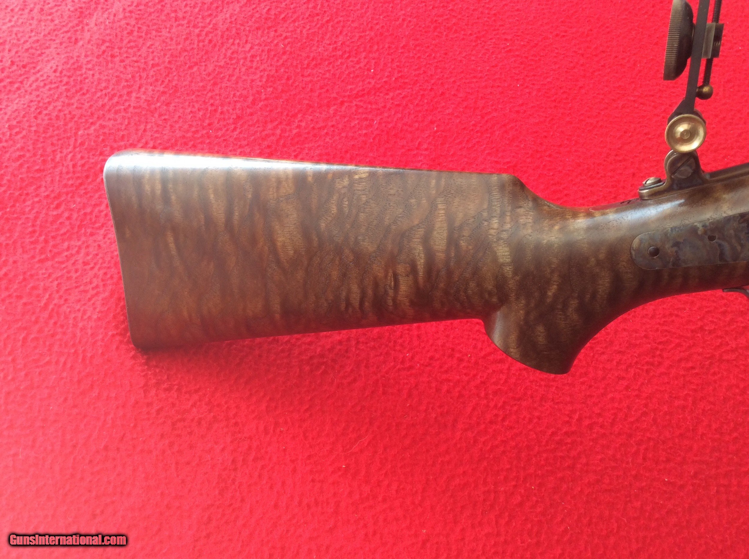 Description: For sale is a Shilo Sharps No.1 sporter 30” heavy octagon barrel in the desirable 45-70 caliber. Rifle has semi fancy wood, brass escutcheons, custom bedded forearm, pewter tip, steel butt plate, with cheek piece. The rifle has it’s original rear barrel sight and is outfitted with the highest quality Long range case hardened Kelly brand front and rear sights. This rifle is in outstanding condition and is like new in box. Comes with original Doskocil case. I have added extra pics as the wood on this rifle is so outstanding, i needed to show it in different light conditions. Call for more info etc. Thanks for looking SOLD |