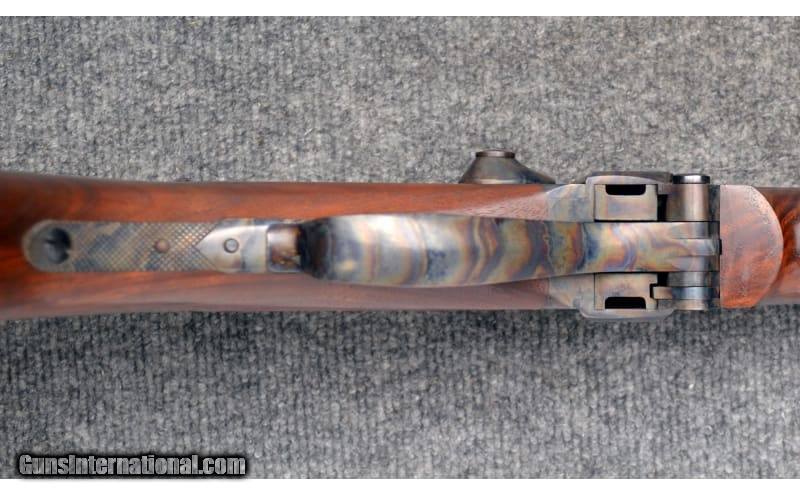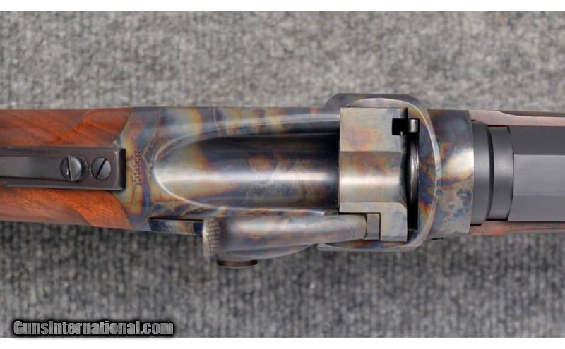 Description: For your consideration, a Shiloh Rifle Mfg. Co. Sharps model 1874 chambered in .40-90 Sharps Straightwall. The caliber is rendered on the octagonal barrel as .40 3 1/4." Sighting consists of a Vernier tang mounted peep rear and Shiloh's #111 globe front. The furniture is rendered in gorgeously figured Walnut. .40-90 Sharps Straight SOLD Metal Condition: Excellent Wood Condition: Excellent Bore Condition: Excellent Barrels: 34 Triggers: Double Stock Dimensions: 14" LOP Fore End: Pewter Tip Butt Pad: Checkered Steel Weight: 13.5 Lbs Sights: Globe and Peep Item Location: Hamburg, PA |