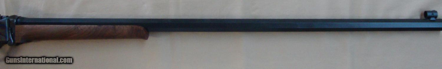 Description: Shiloh Sharps 1874 Long Range Express 45-70. Features include: 34" heavy, octagonal barrel, Standard color cased, Semi Fancy Grade American Walnut, Cheek Rest, Pistol Grip, Double Set Triggers, Tang Peep Rear Sight, and Beech Front Sight.This gun is like new,Shiloh letter , with no box. From the factory, this rifle has a 20 month backorder. SOLD |