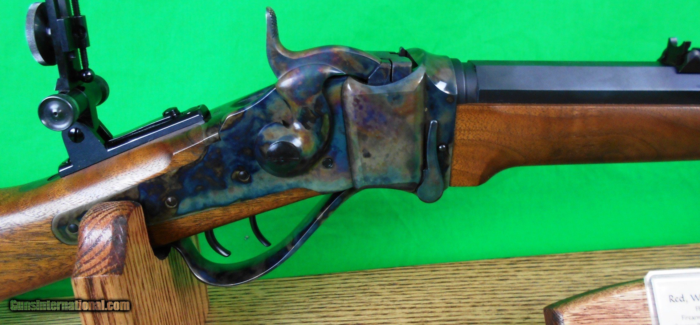Description: Shiloh Sharps 1874 Hartford model in 45-110 Rifle has a military buttstock with 30 inch heavy octagon barrel with semi-buckhorn rear sight. Metal has beautiful charcoal and bone case hardening on receiver, patchbox, saddlring and steel buttplate. Rifle includes Montana Vintage Arms long range soule rear vernier tang sight, Shiloh #111 front globe sight, RCBS dies and 40 pieces of fired 45/110 brass. Please feel free to ask questions or for additional pictures. Firearm is for sale locally. Shipping and insurance will be determined for buyer and remember this is a heavy rifle. - price reflects a cash discount - add 3% for Mastercard/Visa/Discover - payment arrangements must be made within 3 days of end of sale. SOLD Manufacturer: Shiloh Sharps Model: 1874 Caliber Info: 45-110 |