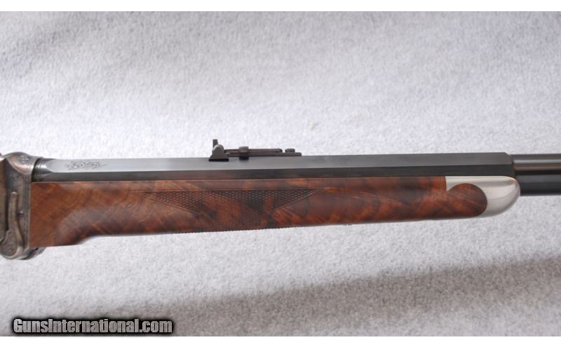 Description: Hand engraved by Master Engraver Suzi Bradley by old world engraving methods using no lasers or computer aided devices.Includes Certificate of Authenticity.Antique Finish.Brass Escutcheons.Professionally repaired crack in upper tang. SOLD Manufacturer: Ordered April 2014. Shipped October 2017 Caliber Info: .45-90 Metal Condition: Insignificant handling marks Wood Condition: Insignificant handling marks Bore Condition: Bright and clean with sharp lands Barrels: 34" Heavy. 1/2 Octagon 1/2 Round Triggers: Double Set Triggers Stock: Presentation Grade AAA Walnut with finely checkered pistol grip and cheek piece. Stock Dimensions: 14" LOP Fore End: Finely checkered Walnut with pewter tip Butt Pad: Steel buttplate Weight: 12 Lbs. 4 Oz. Sights: # 103 MVA Long Range Buffalo Soule Tang Sight. #113 MVA Spirit Level Front Slght. Notched Ladder Rear Sight. Extras: Owners manuals for rifle and sights. Item Location: Billings, MT |