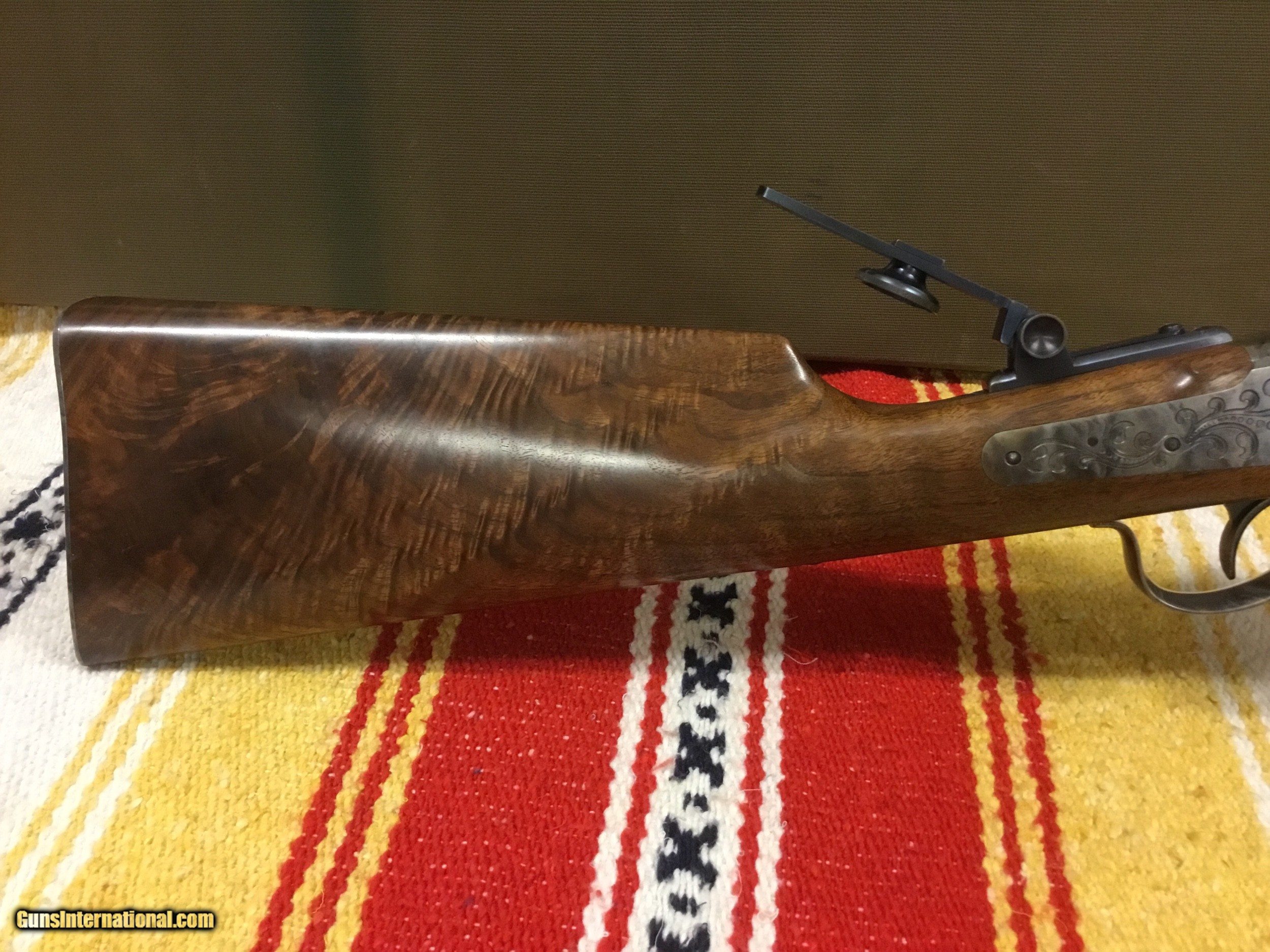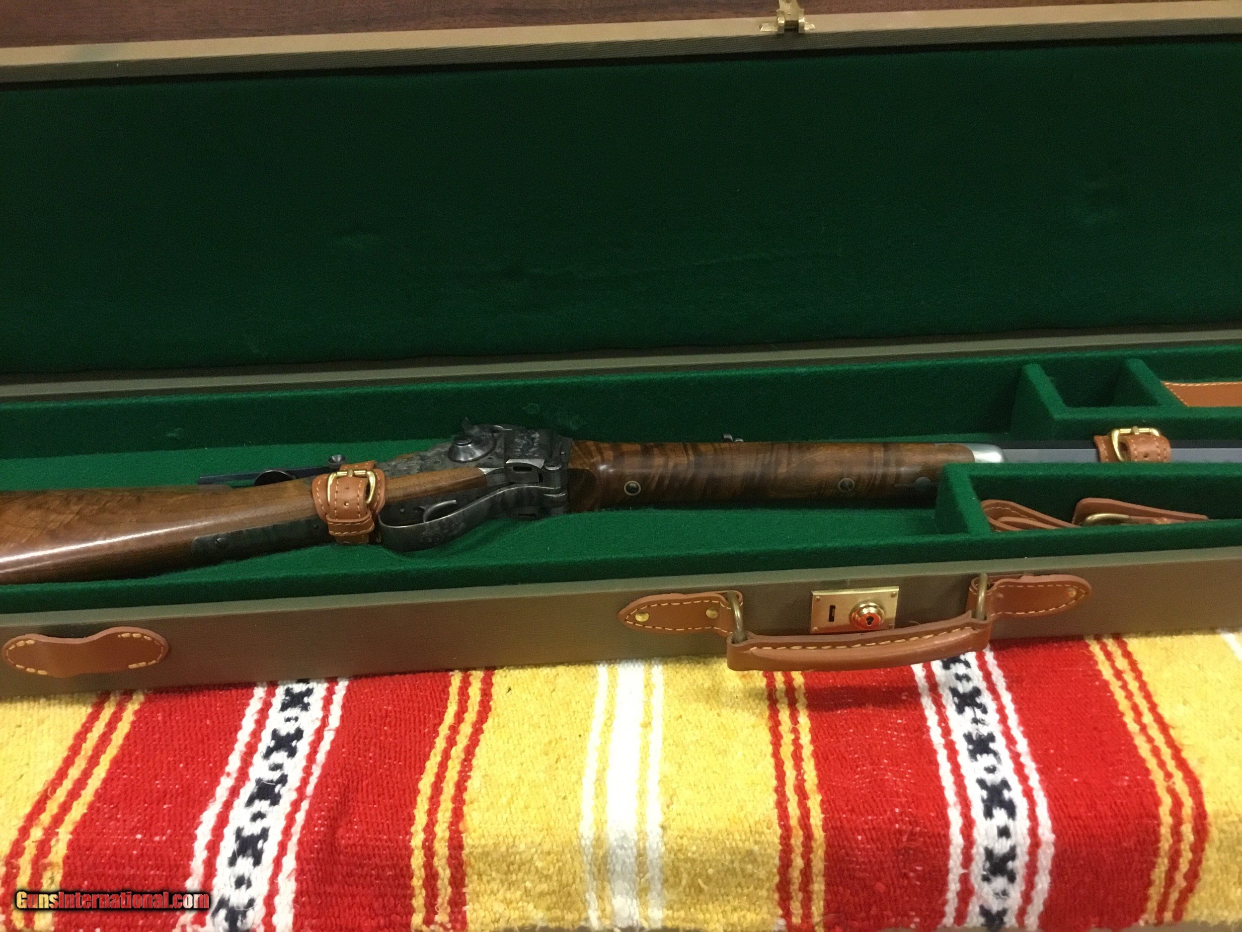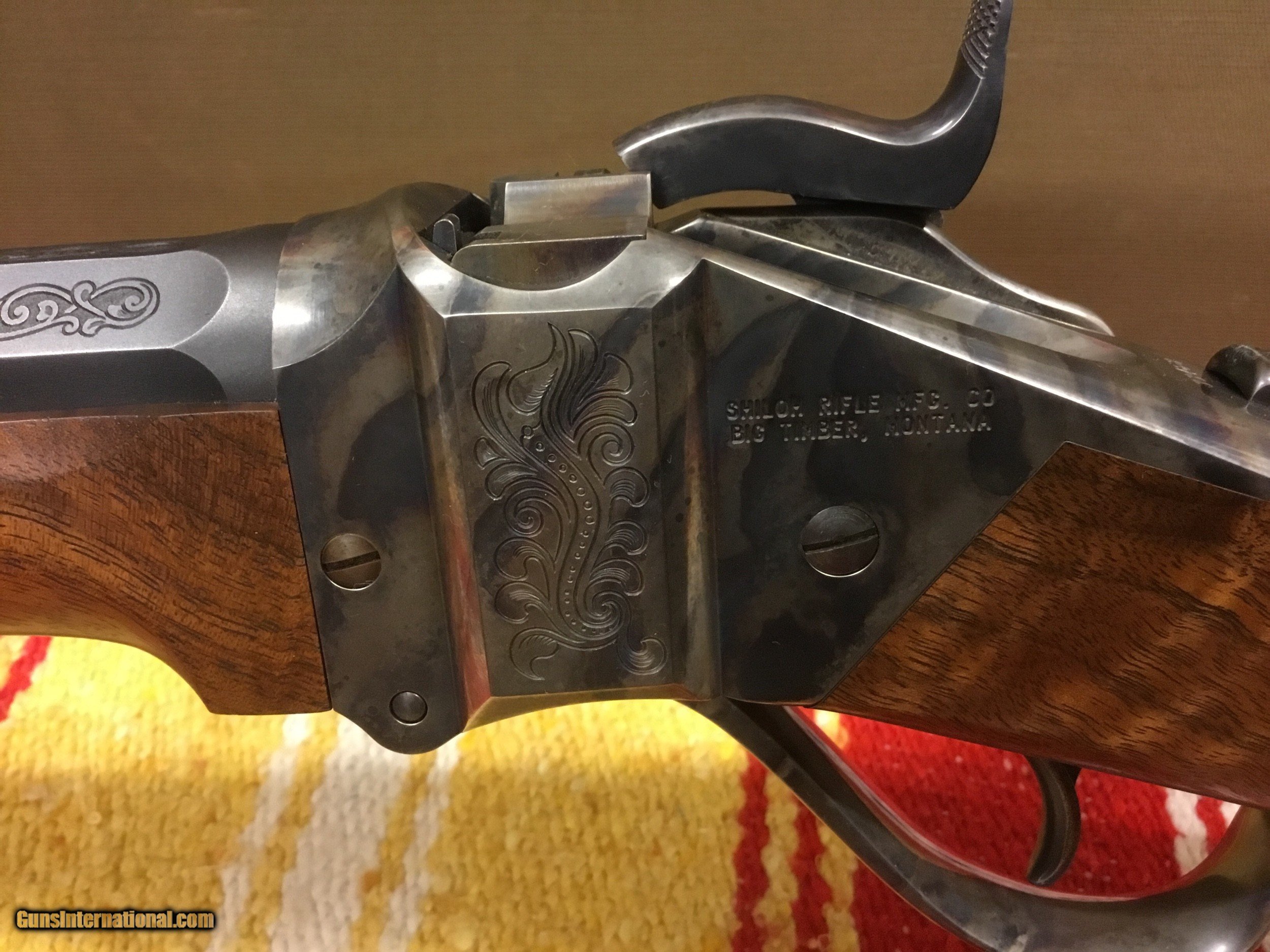 Description: 1874 Shiloh sharps #3 sporter,45/70 caliber ,30” heavy barrel ,shotgun butt,up graded wood with brass escutcheons,pewter tip and factory engaving by Shiloh in house engraver,and signed on bottom,rifle has single trigger and sporting tang sight,4295.00 plus shipping,price does not include case but will sale if wanted,please email questions,thanks Jim SOLD |