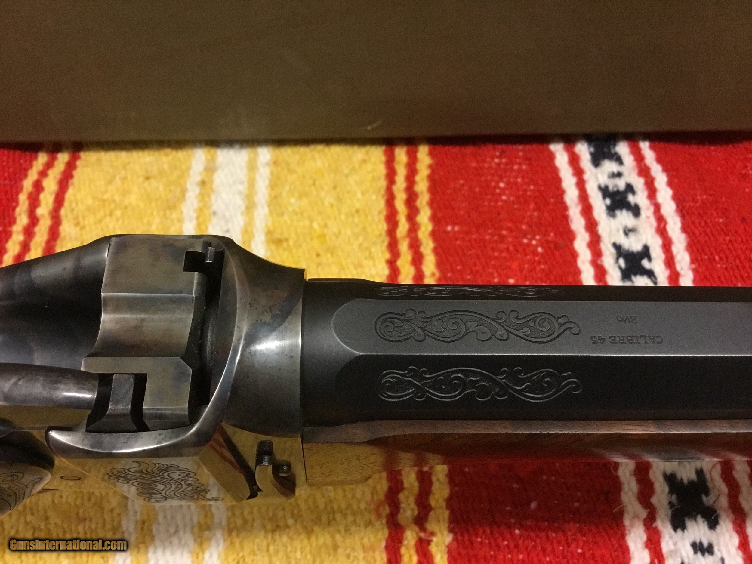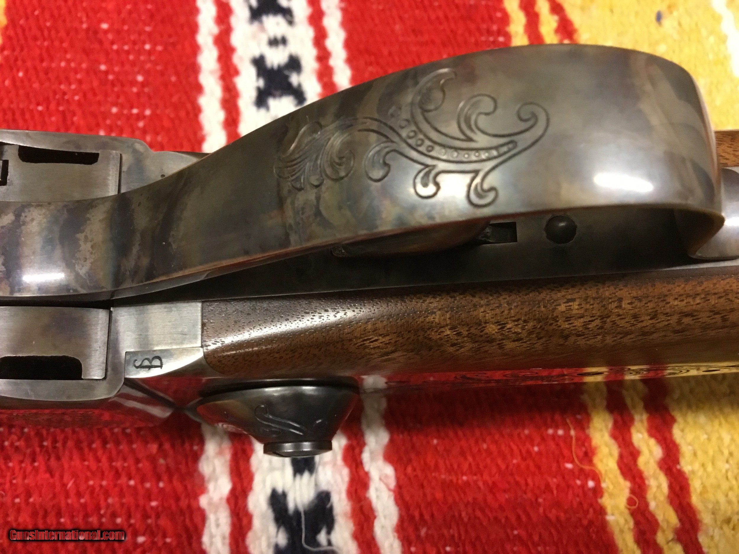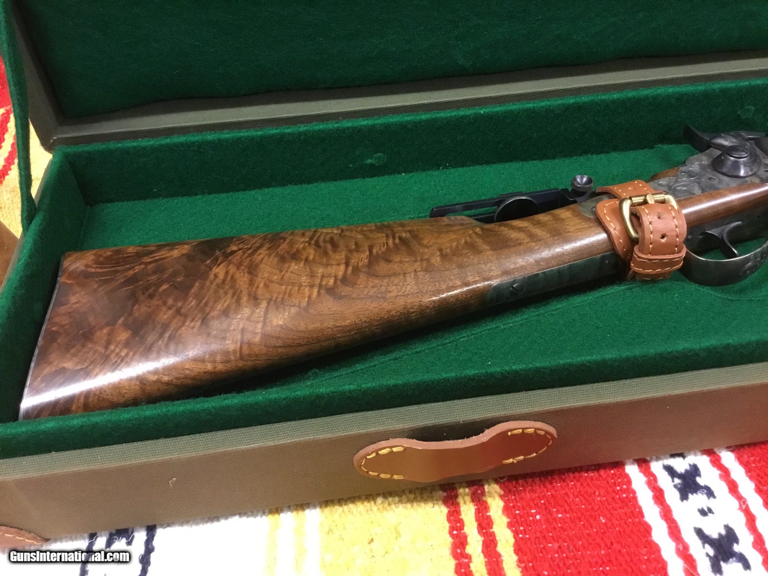 Description: 1874 Shiloh sharps #3 sporter,45/70 caliber ,30” heavy barrel ,shotgun butt,up graded wood with brass escutcheons,pewter tip and factory engaving by Shiloh in house engraver,and signed on bottom,rifle has single trigger and sporting tang sight,4295.00 plus shipping,price does not include case but will sale if wanted,please email questions,thanks Jim SOLD |