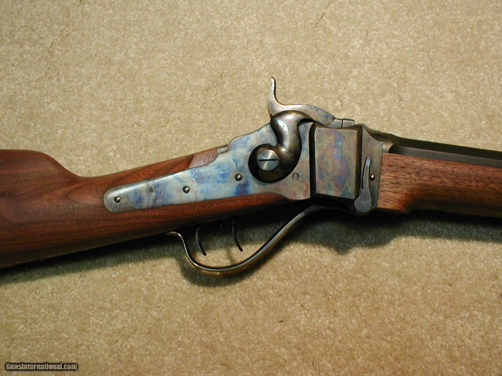 Description: SHILOH SHARPS NO.3 .45-70 SPORTING RIFLE, MADE IN BIG TIMBER, MONTANA, .30" standard octagon barrel, straight stock with standard hard rubber shotgun butt plate, double set triggers, full buckhorn Lawrence ladder rear sight with blade front sight, weighs approx. 10 1/4 lbs, like new. SOLD Manufacturer: Shiloh Rifle Mfg. Co. Model: 1874 No.3 Sporter Serial Number: B1XXX Caliber Info: 45-70 Condition: like new Barrels: 30" oct. |