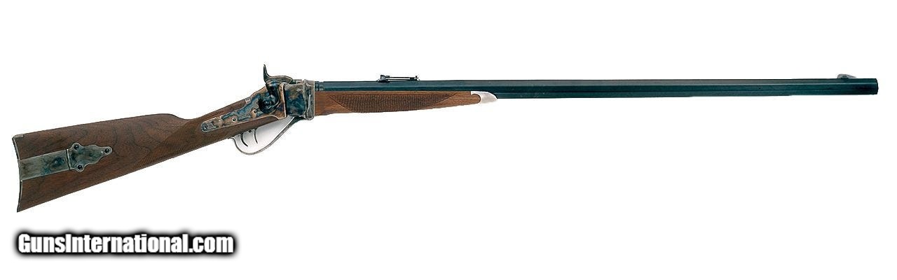 Description: Manufacturer: Taylor's & Company Model: 1874 Down Under Model SKU: RIF/138CABLU Caliber: .45-70 Government Capacity: Single Shot Barrel Length: 32" Octagonal Overall Length: 49" Weight: 10.6 lbs Finish: Blue Finish with Case Hardened Frame and Double Set Trigger Stock: Checkered Walnut Sights: Fixed Front Sight, Rear Ladder Sight Best known as a buffalo-hunting gun, the Sharps sporting rifle became known as the "Old Reliable" by those who hunted buffalo for their hides. Among those associated with the rifles were Billy Dixon, Buffalo Bill Cody, Bat Masterson and others who used the big single-shot to maximum effect on the seemingly endless herds of buffalo. Reproducing the Sharps at a reasonable price was a challenge for modern manufacturers because of its sliding breechblock and many angles and corners. It has been accomplished, however, and Taylor & Co. is proud to offer the colorful, high quality 1874 Sporting Rifle in a variety of barrel lengths and calibers for hunting and target shooting. 1874 Down Under Model Features case-hardened frame, patchbox, butt plate, and lever; blue barrel finish, hand-checkered stock and forend. Forend has a Hartford-style, pewter forend tip. SOLD |