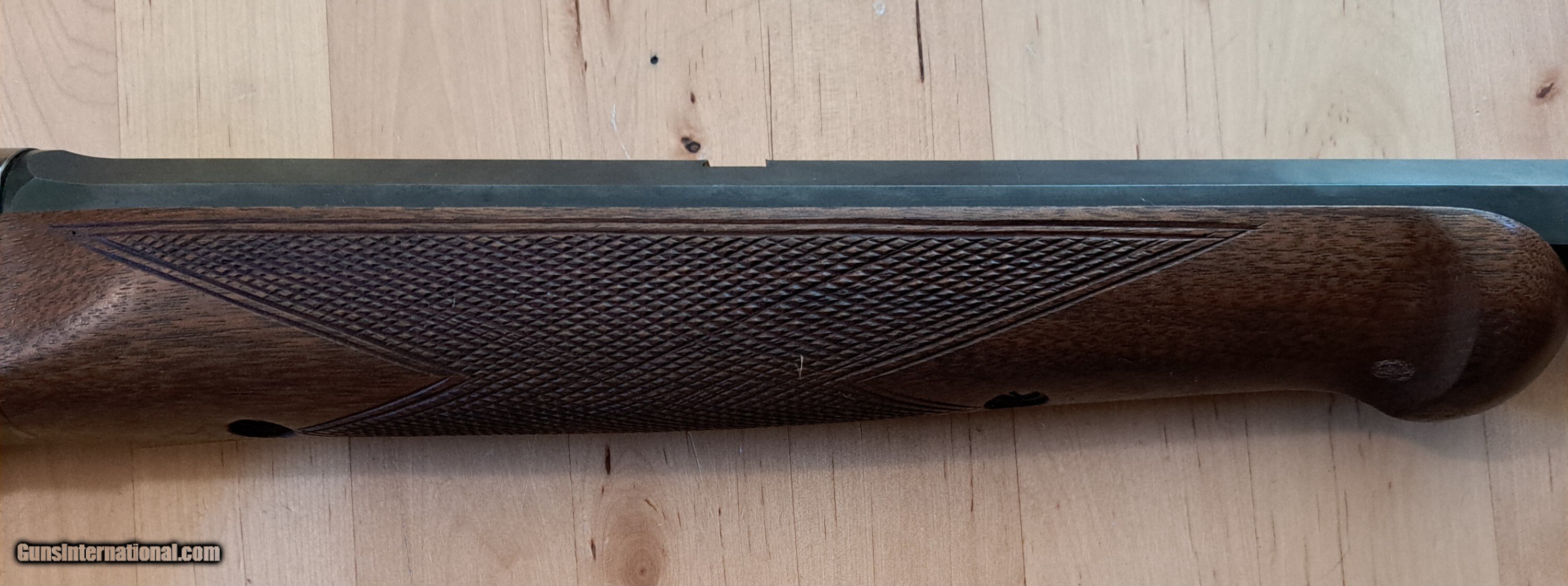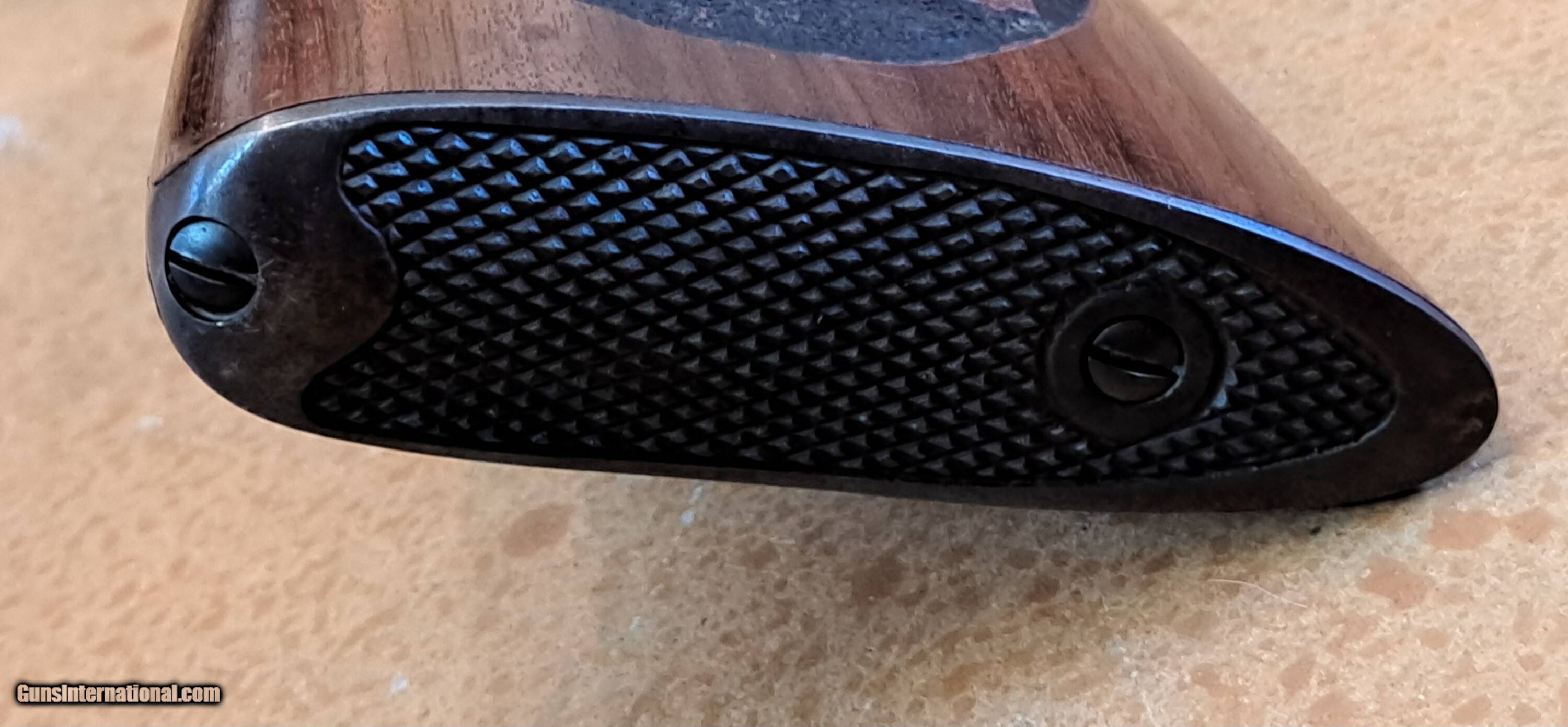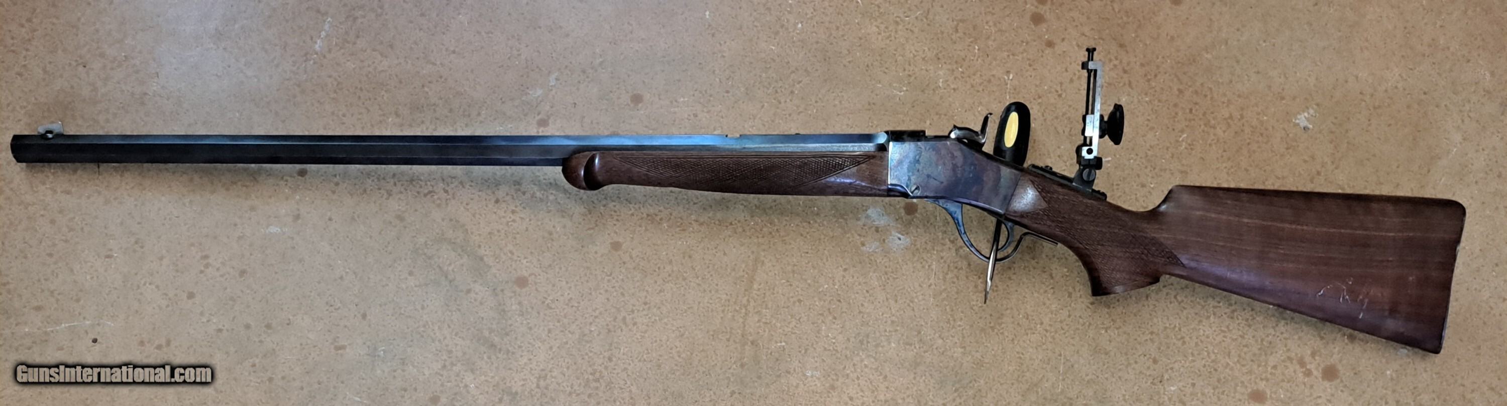 Description: Used, but not abused, C. Sharps Model 1875 in desirable mid-range .40-65. It has a heavy 30" straight taper octagon barrel with excellent bore. Bluing would rate maybe 98%. Silver blade front sight and vernier tang sight with adjustable aperture. No rear barrel sight. Extra screw hole for some previous aftermarket rear sight. Excellent case colors on receiver. Smooth action. Stocks are overall very good plus with excellent checkering. There is a stylized bison carved into right side of buttstock. Some safe rash on left side. Checkered steel buttplate. LOP is 14 1/8". Rifle weighs 9.7 lbs. I will soon have a large supply of brass, bullets, wads, and die set that can be purchased separately. Rifle only, $1500 + Shipping to your FFL. Price: $1,500.00 Contact Seller |