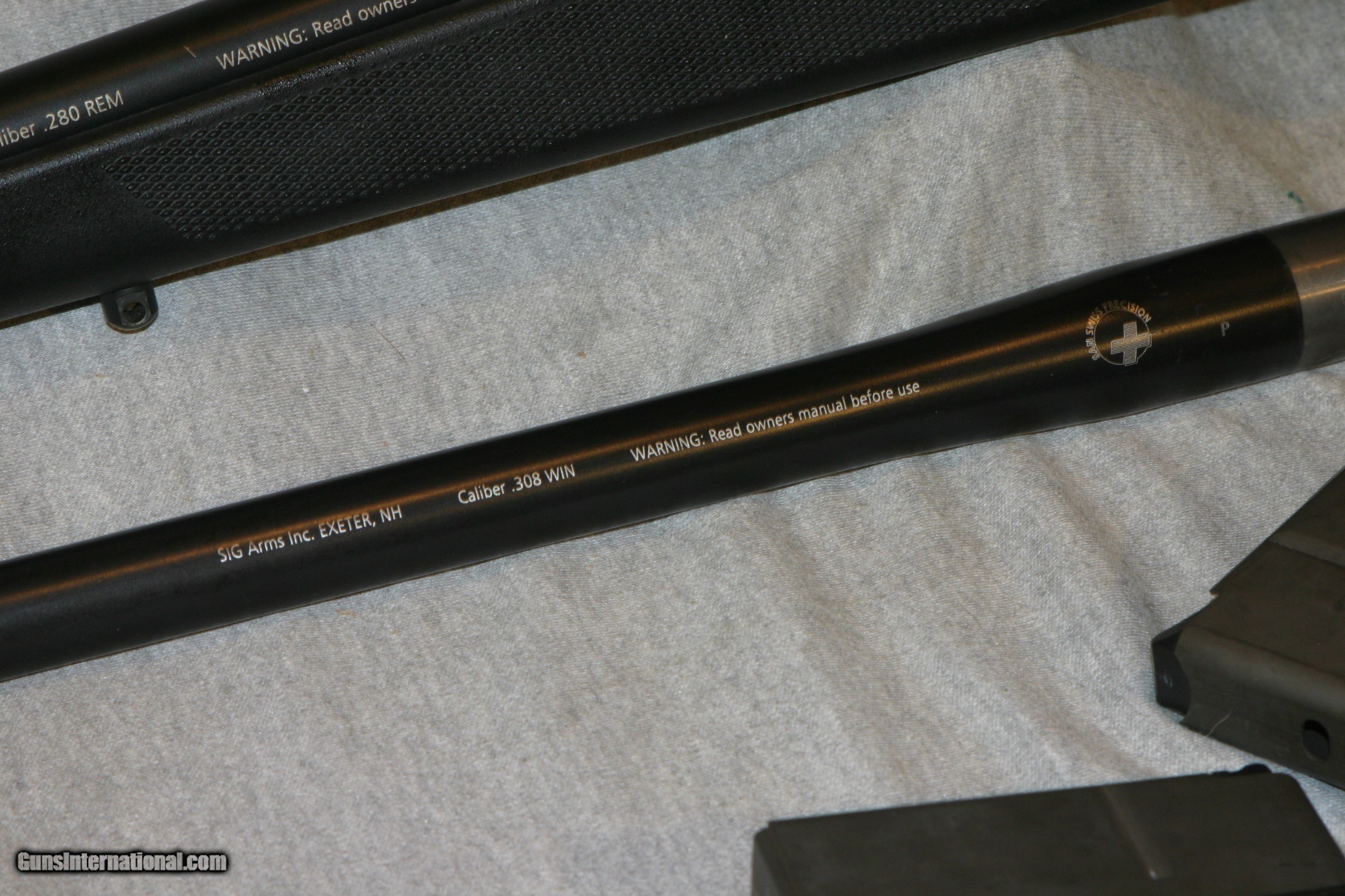 Description: SIG ARMS OF SWITZERLAND PRODUCED THESE IN LATE 90'S,THIS ONE IS A TWO BARREL SET IN .280 REM AND .308 WIN,BOTH WITH 22" BARRELS,COMES WITH CASE,TOOLS AND THREE MAGS TO HANDLE BOTH CARTRIDGES. RINGS AND 1" RINGS ARE LEUPOLD.GREAT BUY FOR THIS PACKAGE! SOLD |