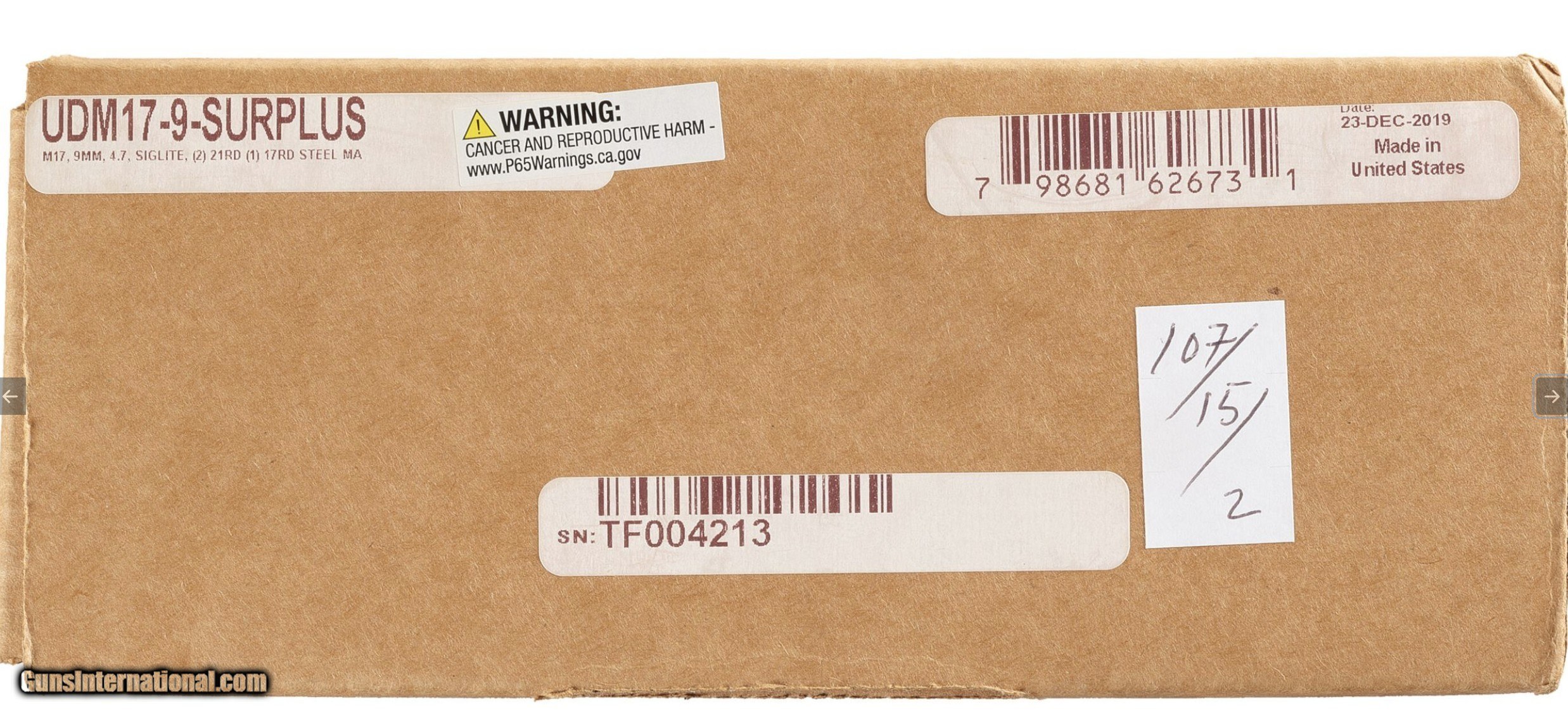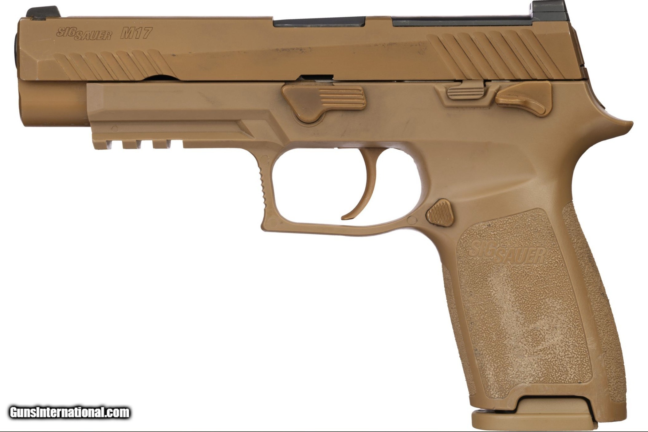 Description: Documented U.S. Army Issued SIG Sauer M17 Semi-Automatic Pistol with Box and U.S. Army FOIA Letter This pistol is one of many that were issued out to U.S. Army starting in late 2017, with roughly 3,000 later returned to SIG Sauer and made available for sale on the commercial market. Selected by the U.S. military in January 2017 as the winner of the Modular Handgun System (MHS) competition to replace the Beretta M9 series. The M17 is a variant of SIG Sauer's P320 line of striker-fired, semi-automatic pistols, which utilize a serialized fire control unit (FCU) that can be readily swapped between grip frames of differing size, with the M17's FCU also incorporating a bilateral thumb safety. Features illuminated night sights, an optic mounting point machined into the top of the slide, an extra weight recoil spring, coyote colored polymer grip unit marked size "M" on the backstrap, along with coyote PVD finish on the slide and some of the metal components. Includes a matching numbered SIG Sauer shipping box dated "23-DEC-2019" identifying the pistol as "UDM17-9-SURPLUS", along with two extra magazines, an extra recoil spring assembly, "M17" marked user's manual, and an action lock. Also included is a Freedom of Information Act response letter from the U.S. Department of the Army, listing the pistol by serial number as issued to Bravo Company of the 327th Infantry Battalion at Fort Campbell, Kentucky, on December 18, 2017, and later turned in to the Fort Campbell Logistics Readiness Center by Bravo Company of the 327th Infantry Battalion on December 10, 2019. This pistol is also two digits off from another FOIA documented U.S. Army issued SIG Sauer M17 pistol in this , Note: This item features a high-capacity magazine which has a capacity above 15 rounds and cannot be sold or transferred to residents of CA, CO, CT, DC, HI, IL, MD, MA, NJ, NY, RI, VT, or WA. Please check your local laws and regulations prior to . Condition Exceptionally fine as a U.S. Army issued M17 service pistol, retaining 95% plus original coyote PVD and black finishes with, some minor holster pattern edge wear, minor cycling wear, and some scattered minor handling marks. The grip module is fine with scattered mild scrapes and scuffing on the textured grip, hinting at the extent of this pistol's use in its window of service. Mechanically excellent. The box is very fine. Contact Guy McRee (972) 670-8562 (Call or Text) Handgun Caliber: 9x19mm Parabellum (9mm Luger, 9x19mm NATO) Price: $4,990.00 Shipping: $75.00 Pay with