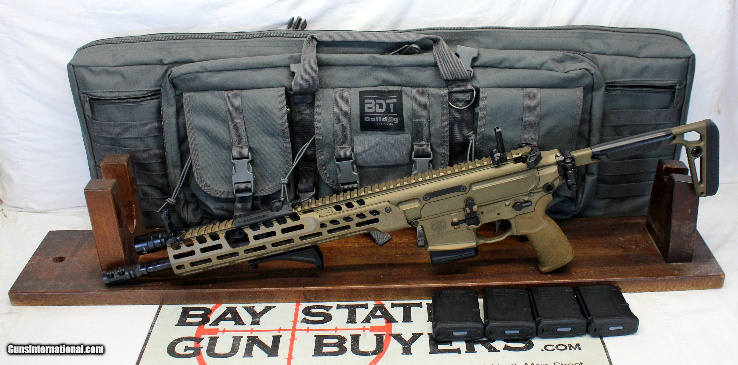Description: We are offering for sale a Sig Sauer MCX SPEAR LT semi-automatic rifle chambered in 5.56/.223 calibers. This is a 16" example in very good preowned condition. The gun has been fitted with several upgrades. 16" barrel is very good with bright clean bore showing crisp rifling. The muzze brake shows some powder wear. The frame is very good with light handling wear; Cerakote finish on handguard shows some light powder wear. Handguard has been fitted with Magpul hand-grip and Surefire Scout Light KE2-B flashlight. The gun comes with (5) 10rd magazines. The gun also comes with a Bulldog Tactical carry case/bag. **** PLEASE NOTE: WE ONLY ACCEPT MASTERCARD AND VISA AS PAYMENT OPTIONS (please note we charge a non-negotiable 3% CC fee) **** **** WE TAKE CREDIT CARD PAYMENT OVER THE PHONE. WE DO NOT TAKE PAYMENT THROUGH THIS **** PLEASE LOOK AT ALL PHOTOGRAPHS FOR CONDITION Please know the legality of any weapon in your state before . If a gun can’t be transferred to you we will charge a 15% re-stocking fee. We are in the shop MODAY, WEDNESDAY, THURSDAY, FRIDAY and SATURDAY 8am-4pm EST. We will be in touch within 24 hours of your purchase. Please be ready to provide CC information. Please have your FFL email a copy of their license to: . No Face To Face Transfers! Please note: Clicking "buy" does not guarantee that this gun is yours, However clicking “Buy” will reserve this gun for you, if it hasn’t been sold in store. We will try to do our best to remove the posts as efficiently as possible, but sometimes delays may ensue. “Buy” is your safest bet to reserve a gun. Also please add 6.25% MA state sales tax (if from MA) and 3% credit card shop courtesy fee for all out of state buyers Before calling with concerns read these conditions and meet them accordingly SOLD |