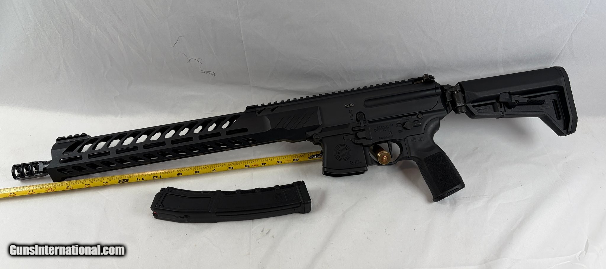 Description: Guns Listing ID: 588230 SIG Sauer MPX Rifle – 9mm – Very Good Condition Description: Offered here is a SIG Sauer MPX Rifle chambered in 9mm Luger. The MPX platform is a modern, purpose-built 9mm carbine that pairs proven short-stroke gas operation with excellent ergonomics and modularity — ideal for range use, training, or a compact patrol/utility rifle. This example is in very good condition with light handling wear and a clean, serviceable bore. This rifle features a 16\" barrel, SIG’s short-stroke gas piston system tuned for 9mm, and a flat-top upper with a full-length Picatinny rail for optics and accessories. It is fitted with an M-LOK free-float handguard, an adjustable collapsible stock for easy length-of-pull changes, and ambidextrous controls for comfortable use by right- or left-handed shooters. The MPX feeds from detachable box magazines and delivers soft, controllable recoil with excellent reliability. Features: Short-stroke gas piston system for reliable, clean operation 16\" barrel for balanced handling and a useful sight radius Flat-top upper with full-length Picatinny rail for optics and accessories Free-float M-LOK handguard for mounting lights, grips, and rails Adjustable/collapsible stock and ambidextrous controls for user comfort and versatility Includes: (1) 30-round magazine Manufacturer: SIG SAUER Model: MPX Caliber Info: 9MM LUGER (9x19 PARA) Condition: Used - Non-Certified Barrels: 16" BARREL Action: SEMI AUTOMATIC Price: $1,549.99 Contact Seller |