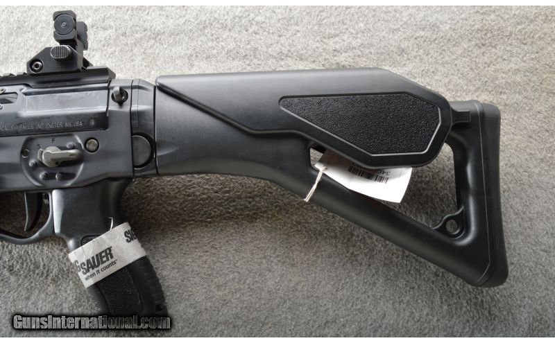 Description: • Three-position adjustable gas-piston operating system • Swiss-style folding stock with removable cheek riser • Ambidextrous controls Powerful and reliable, the SIG Sauer 556xi Standard Semiautomatic Tactical Rifle offers unparalleled modularity in barrel length, caliber, magazine type and stock configuration. A three-position adjustable gas-piston operating system with a rotating bolt keeps the rifle cooler and cleaner, increasing accuracy and reliability. Also features ambidextrous magazine release, bolt release, safety selector, charging handle, Swiss-style folding stock with removable cheek riser and locking flip-up sights. Accepts any mil-standard AR-15/M4/M-16 or AK-style magazines, depending on the lower. SOLD Caliber Info: 5.56 Nato Chambers: Semi-auto. Metal Condition: ANIB. Wood Condition: ANIB. Bore Condition: ANIB. Barrels: 16 inch plus flash suppresser Triggers: Single. Stock: Swiss style folding stock. Stock Dimensions: 13 1/8 inch LOP. Fore End: Top rail. Butt Pad: Black rubber butt pad. Weight: 7 Lbs 12 Oz. Sights: Factory flip up sights. Extras: Comes with the factory box, mag, lock and factory paperwork. Item Location: Owatonna, MN |