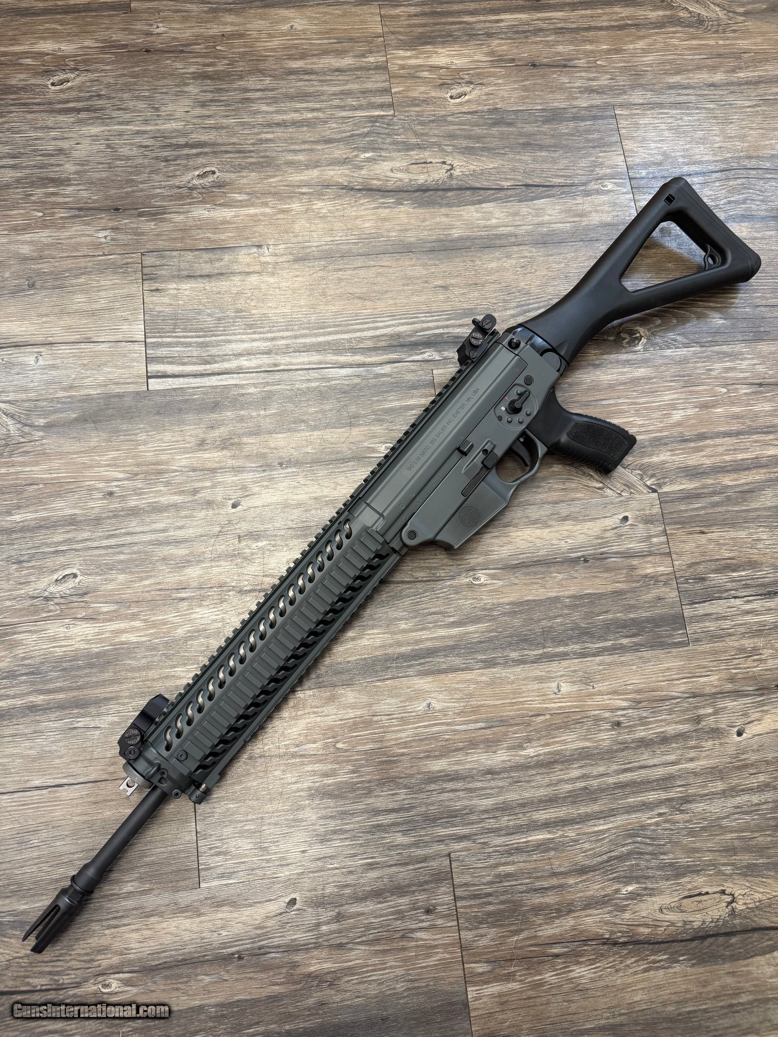 Description: Guns Listing ID: 565917 For sale is a Sig Sauer 556 rifle chambered in 5.56 NATO / .223 Rem, in excellent condition. This Swiss-inspired design blends the rugged reliability of the SG 550 series with the familiarity of the AR platform. Specifications & Condition Model: Sig 556 Caliber: 5.56 NATO / .223 Rem Barrel Length: 16\" Stock: Factory side-folding stock Condition: Excellent – minimal handling wear Accessories: None included (rifle only, no box) Features Gas piston operating system for clean, reliable cycling Full-length rail for optics and accessories Folding stock for compact storage and transport Why This Rifle The Sig 556 offers a battle-proven gas piston system with modern modularity, making it a dependable and unique alternative to a standard AR-15. With its side-folding stock and excellent condition, this rifle is both a collector’s piece and a high-performance shooter. SOLD Manufacturer: SIG SAUER Model: SIG 556 Caliber Info: 5.56X45MM NATO Condition: Used - Non-Certified Barrels: 16" BARREL Action: SEMI AUTOMATIC Finish: black and gray |