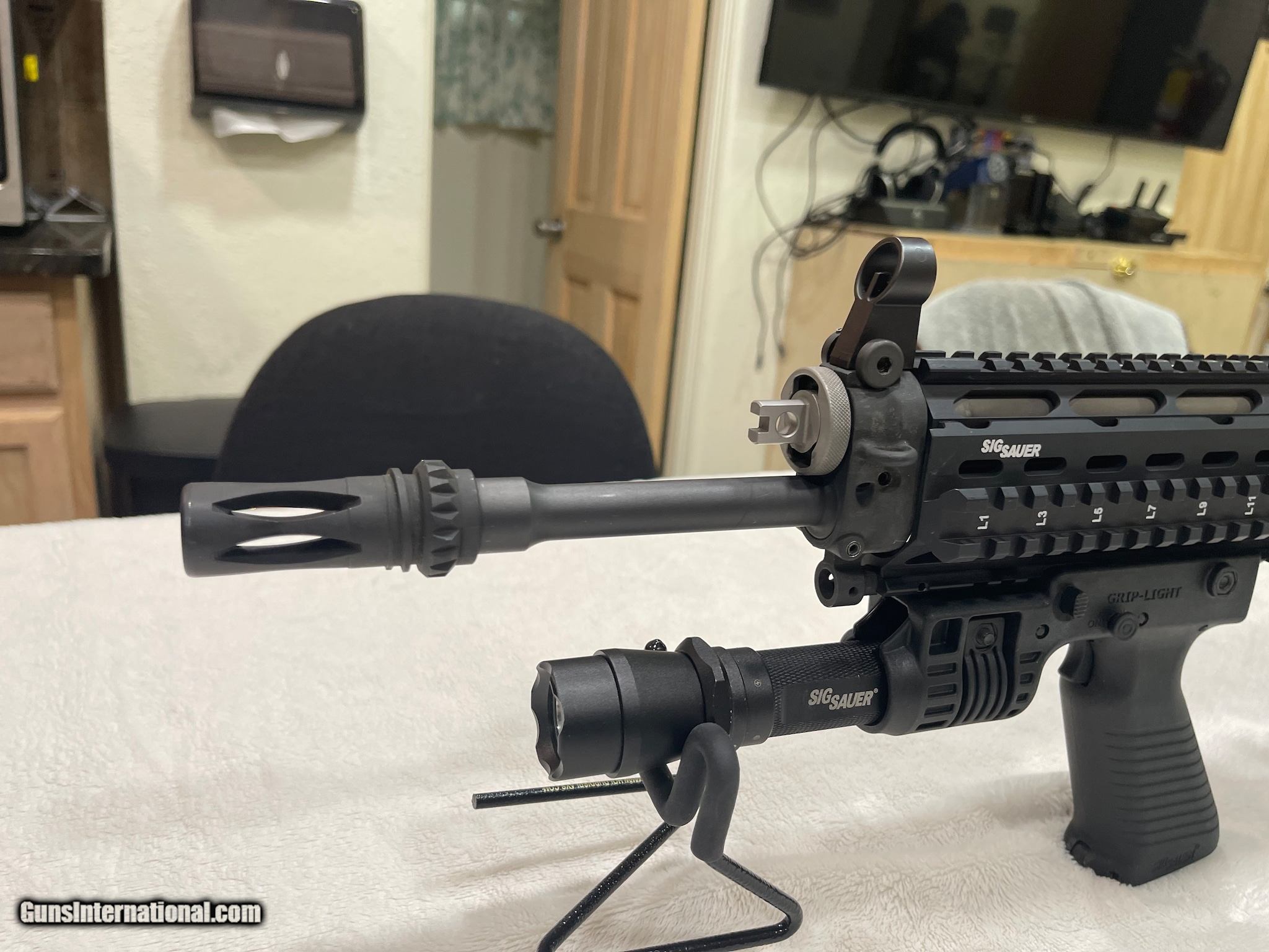 Description: Guns Listing ID: 492123 This LE model SIG 556 Classic is fully loaded with SIG flashlight operating SIG front grip trigger. Sauer iron sights good to 300 meters. 16\" Farrell with 1/7 twist comes with (2) 30 round mags. you won‚‚t find another one online in this shape and condition is suppressor ready and piston operated with suppressor selector switch SOLD Manufacturer: SIG SAUER Model: SIG 556 CLASSIC SWAT Caliber Info: 556 NATO Condition: Used - Non-Certified Barrels: 16 BARREL Finish: BLACK |