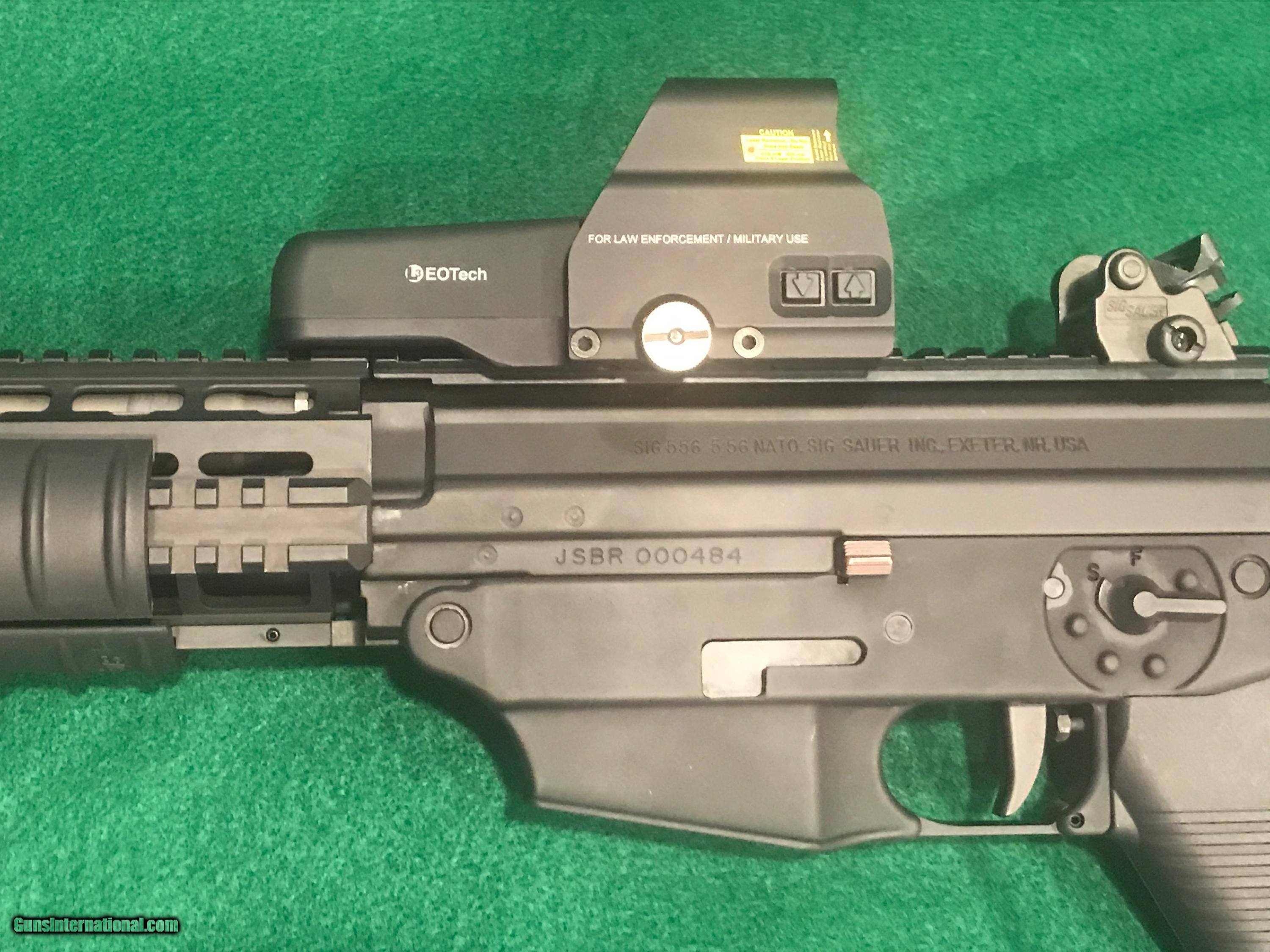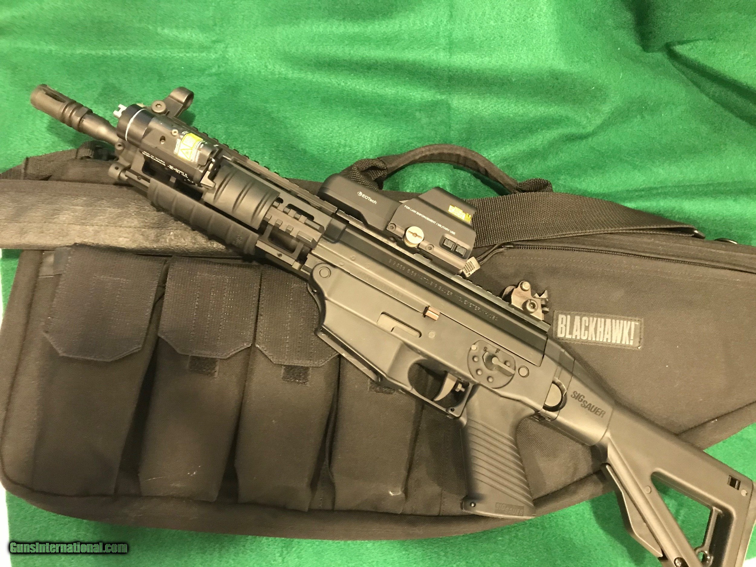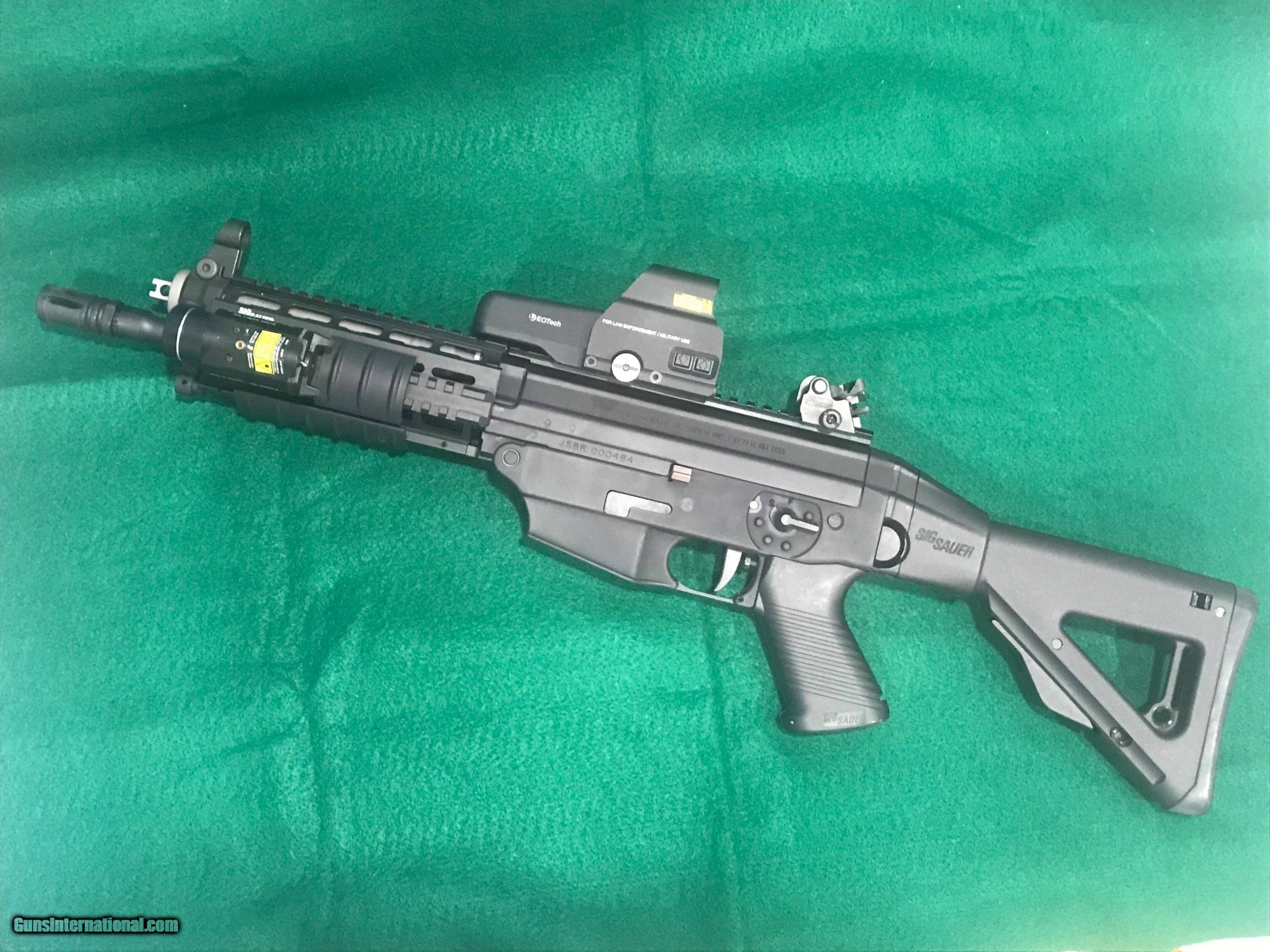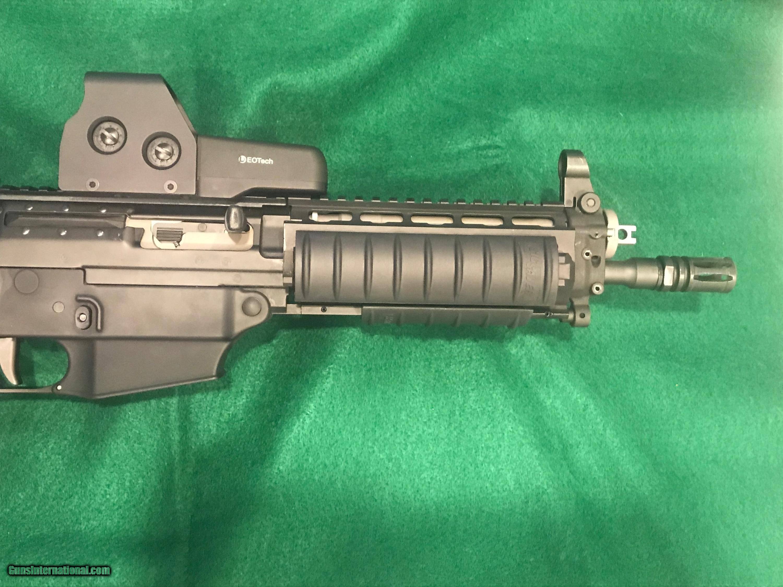 Description: *REDUCED*. SIG SAUER SIG556405 SBR - CLASS III This is a new SIG SAUER SIG556405 "Short Barreled Class III Rifle, chambered 5.56 with a 10" barrel. It has a black finish with a quad rail, Folding Collapsible Stock and adjustable EOTECH Sight. Comes with an attached TLR-2 STREAMLIGHT, 4 clips and a Soft Sided BLACKHAWK! Case w/Strap. $50 S&H "MUST BE SHIPPED TO A DEALER WITH FFL & CLASS III LICENSE SOLD Rifle Caliber: 5.56x45mm NATO Manufacturer: SIG SAUER Model: SIG 556405 SBR CLASS III Condition: Excellent Stock: Collapsible Stock Finish: Black Sights: Adjustable EOTECH Extras: TLR-2 STREAMLIGHT Case: Soft Sided BLACKHAWK! Case Item Location: Florida |