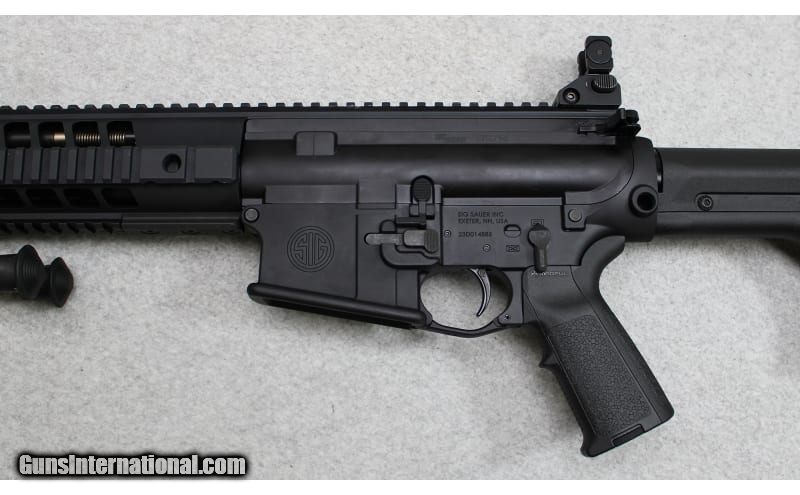 Description: This Sig Sauer semiautomatic rifle is chambered in 7.62 NATO. This rifle features a fully adjustable stock, rear peephole sights with a shrouded front sight as well as multiple picatinny rails for optics solutions and attachments. Features a bipod attached to the fore end. This rifle comes with a hard plastic case (black) with Sig Sauer logo. Has original manuals as well as one (1) extra magazine (total of 2) as well as a canvas sling. 7.62 Nato SOLD Wood Condition: N/A Bore Condition: Bright and clear with no pitting Barrels: 20 inch Stock Dimensions: Adjustable stock Weight: 12 Lb 2 Oz Sights: Rear peephole/Shrouded front sights Item Location: Fort Worth, TX |