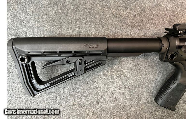 Description: This semi-auto rifle is a SIG Sauer SIG716-G2 Patrol chambered in 7.62 NATO. Combining the reliability and ergonomics of the SIG516 series rifle with the more powerful 7.62mm cartridge, the SIG716 G2 Patrol features a short-stroke pushrod gas system. This advanced operating system reduces carbon fouling, excessive heat and unburned powder in the action, ensuring reliability and function that is unmatched. The SIG Sauer 716 Gen 2 Patrol has the proven features of the classic 716 with reduced weight saving enhancements. It features an adjustable gas valve that can be opened to increase gas flow when ammunition or adverse environmental conditions require additional cycling energy or turned off completely for use with suppressors. It has a lightweight keymod rail system, 16" free-floating barrel, telescoping stock, and Magpul PMAG. The SIG716 G2 Patrol is the rifle of choice when you require the power of a larger caliber carbine. Additional features include ambidextrous safety, mag release, and charging handle. An ergonomic SIG pistol grip is included with the package, which includes a storage compartment for batteries. This is an SRP (Sight Ready Platform), which means that it features a flat top upper receiver that does not include a carry handle or iron sights. Both upper receiver and front gas block are equipped with standard Picatinny rails for attaching flip-up iron sights and/or optics. Lowered, flared and polished M4 feed ramps have been cut into the upper to ensure reliable and consistent feeding. Located just underneath the rear takedown pin lug is a tensioning detent that applies pressure to the upper receiver, thereby eliminating receiver wobble. This in turn maintains the rifle's accuracy. Metal relief is evident in the lower receivers magazine well, which provides faster reloading. The six position telescoping buttstock is standard M4 and mounted to a mil spec diameter receiver extension. A 7075-T6 aircraft grade aluminum forged lower receiver brings durability and reliability to the equation. The 16- inch nitride treated hammer forged barrel has been chromed lined for improved reliability and corrosion resistance. With a relatively fast barrel twist rate of 1:10", the rifle is capable of stabilizing heavy bullets such as .308 WIN 175- grain match ammo, while equally at home firing standard 147- grain 7.62x51mm ball. As opposed to competing piston designs, you don't have to remove the rail to clean the SIG SAUER 716 G2 Patrol. Gas system parts can be accessed through the front of the gas block. This firearm is in extremely good condition. Bluing is excellent with only barely noticeable handling marks. It comes with the original box, one 20-round PMag, shoulder strap, owner's manual and decal. 7.62 Nato SOLD Metal Condition: Excellent condition Bore Condition: "Bright and shiny, crisp rifling Barrels: 16¼ inch barrel Stock Dimensions: Overall length 38¼ inches Butt Pad: Hard rubber butt plate Weight: 8 lb - 2 oz Sights: "Top rail, no sights Item Location: Wichita, KS |