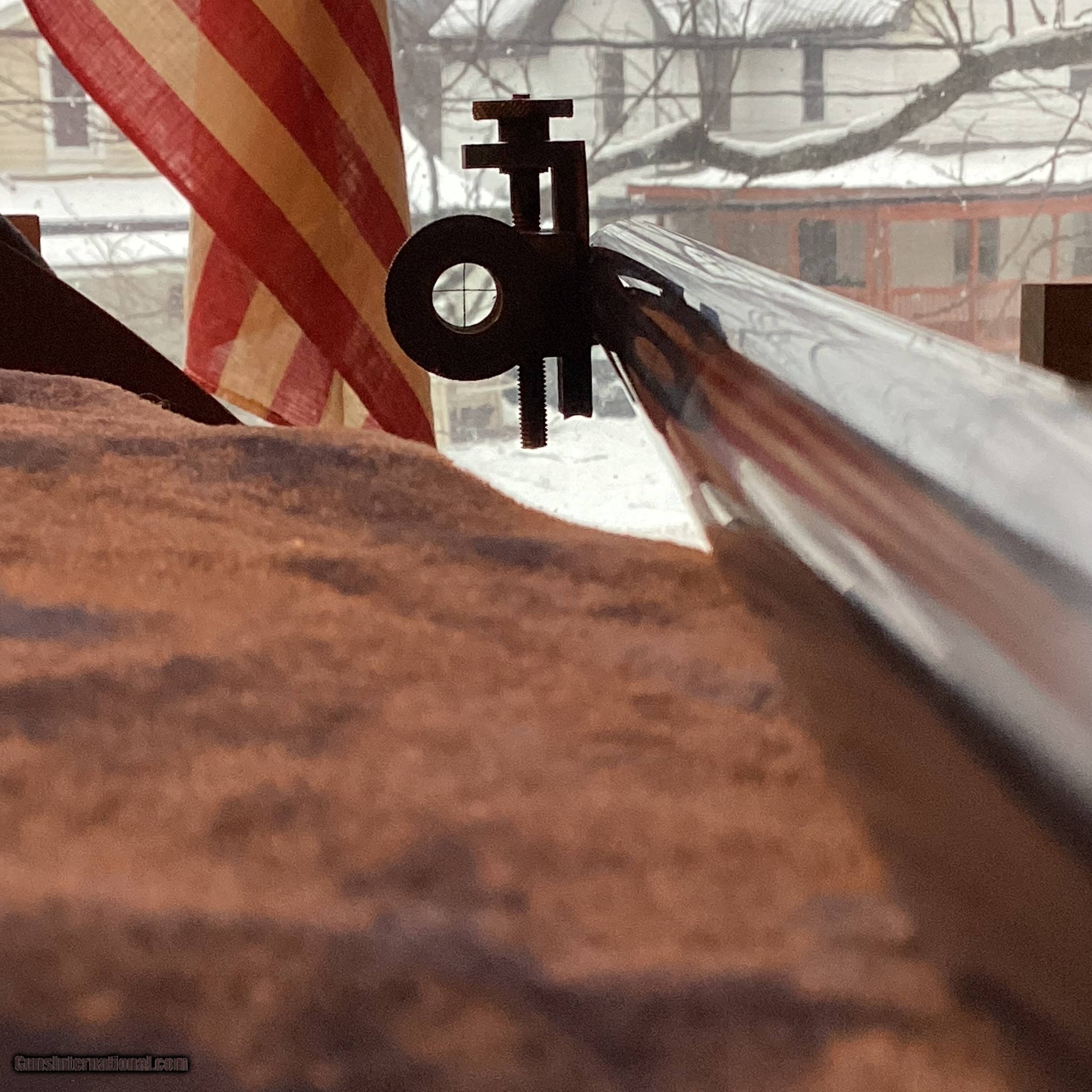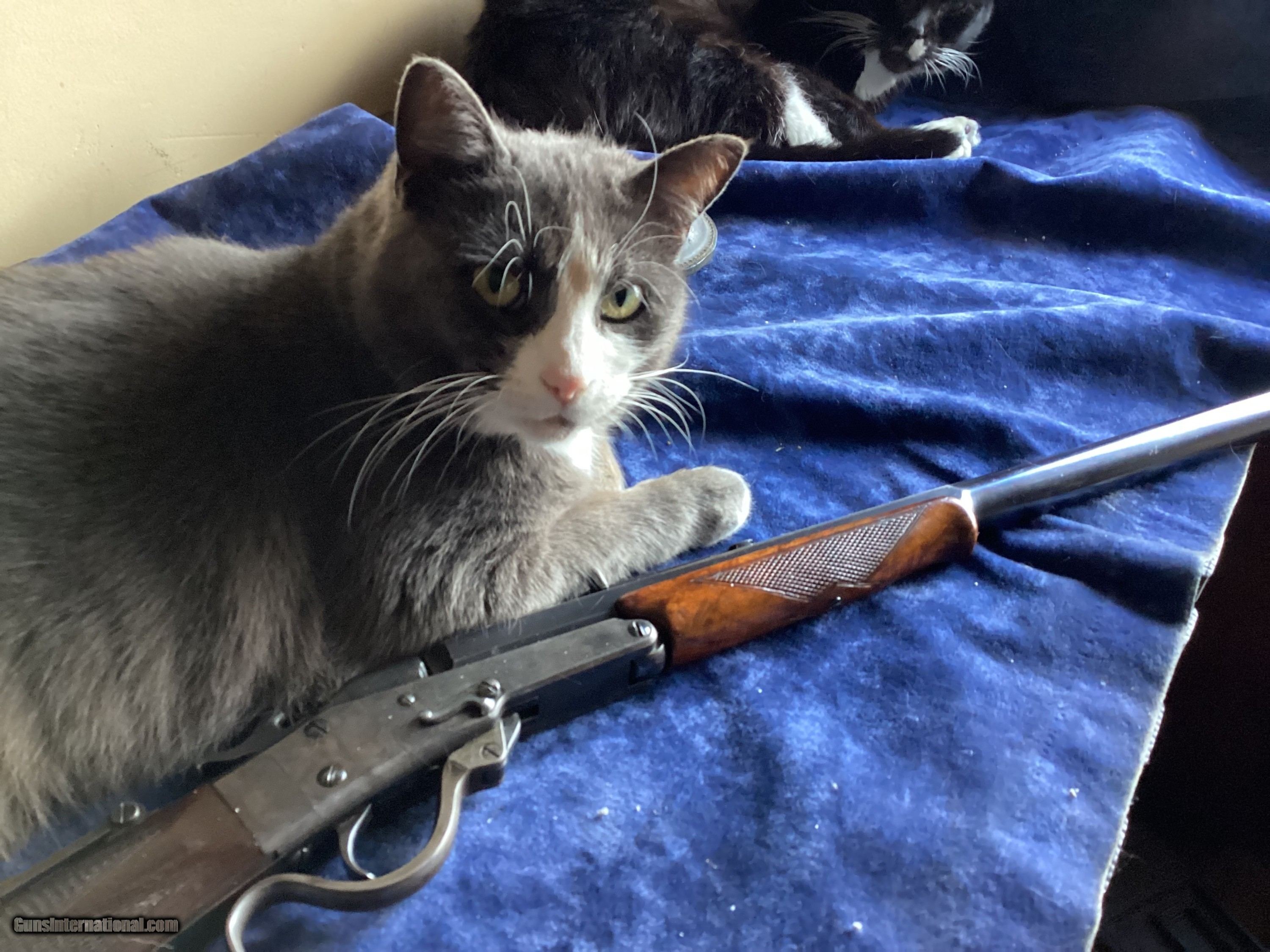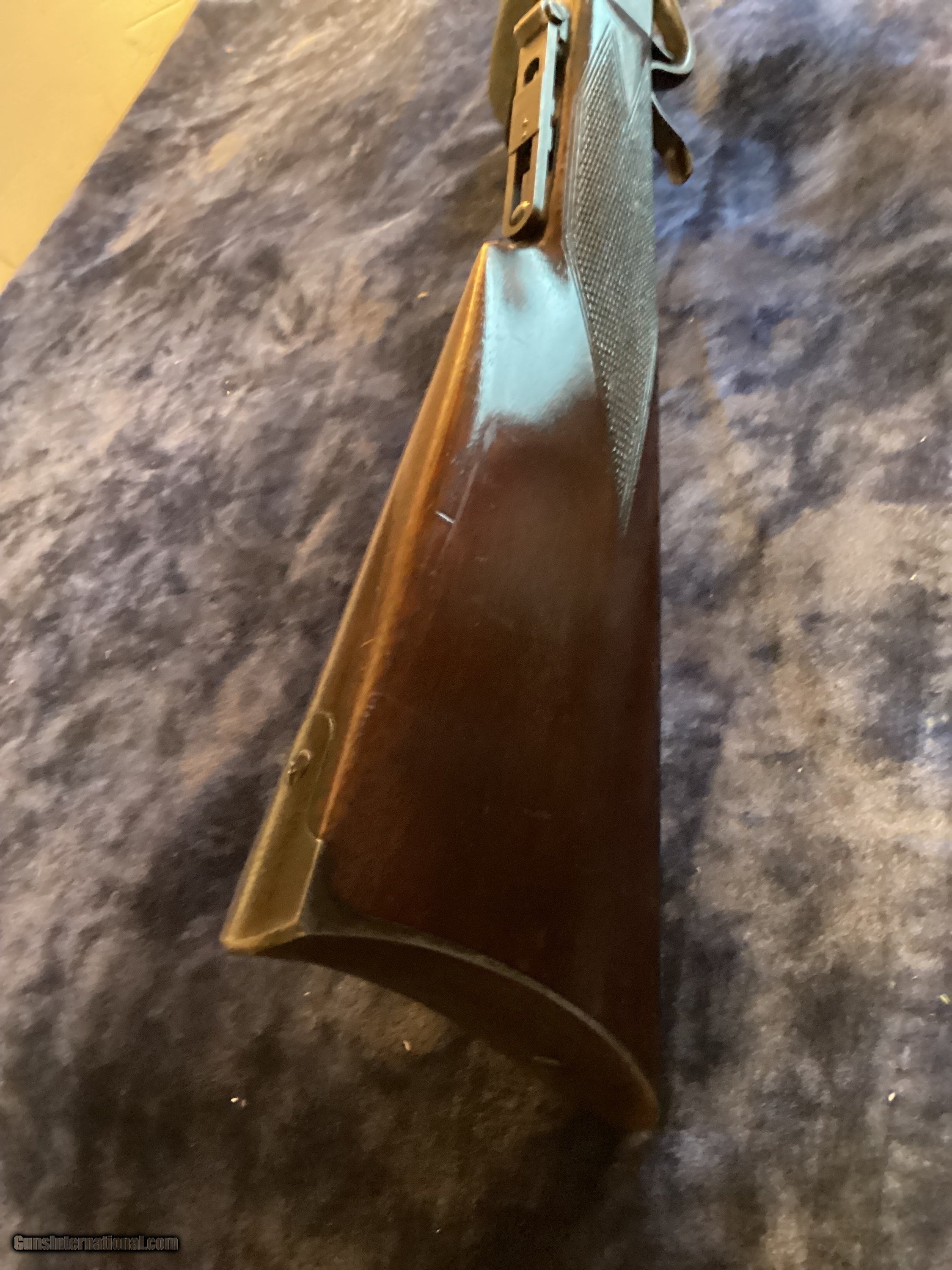 Description: There's a very scarce Maynard target rifle in 25–20 single shot centerfire. There I is a original rear tang sight,windage adjustable custom front sight,buck horn hunting sight,,original-for end often not seen, original blue is 90% plus . this is like the or Thompson contender , barrels,are interchangeable, this gun is very accurate and still is, the bore is very nice.one many competitions and interesting piece of history. Also, the early model of this was also used in the Civil War considered the best of the Carbine's any questions please call Jeff 716-883-9527. This is an antique and can be shipped the most states directly to you buy or pay shipping and handling plus insurance optional. Antique: Yes Rifle Caliber: .25-20 SS Manufacturer: Maynard Model: 15 Condition: Near excellent Price: $2,600.00 Contact Seller |