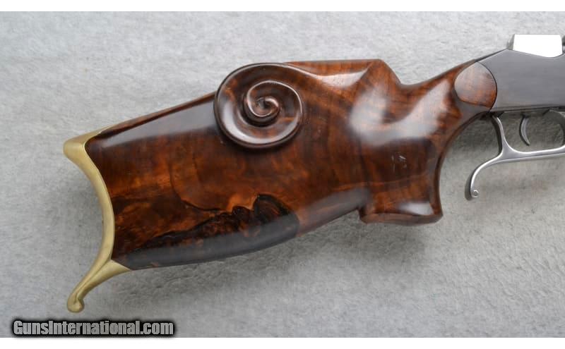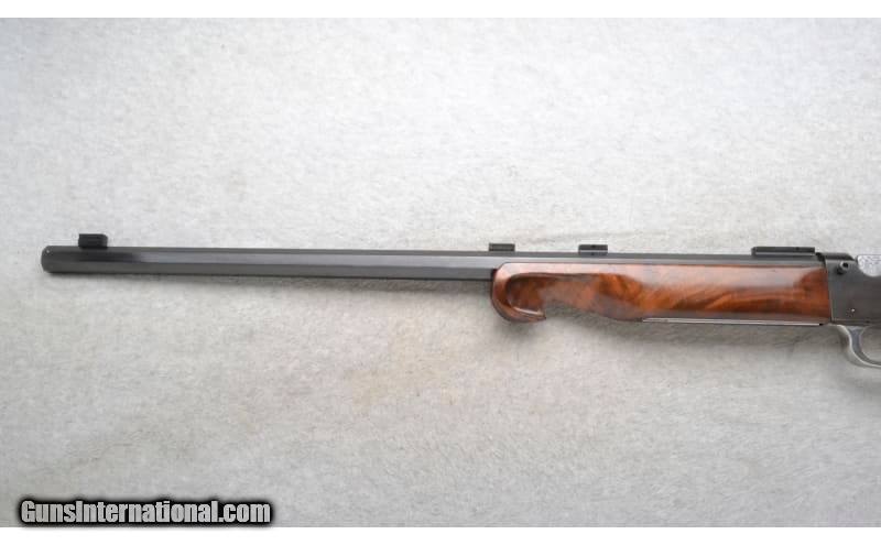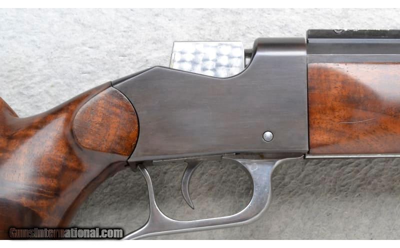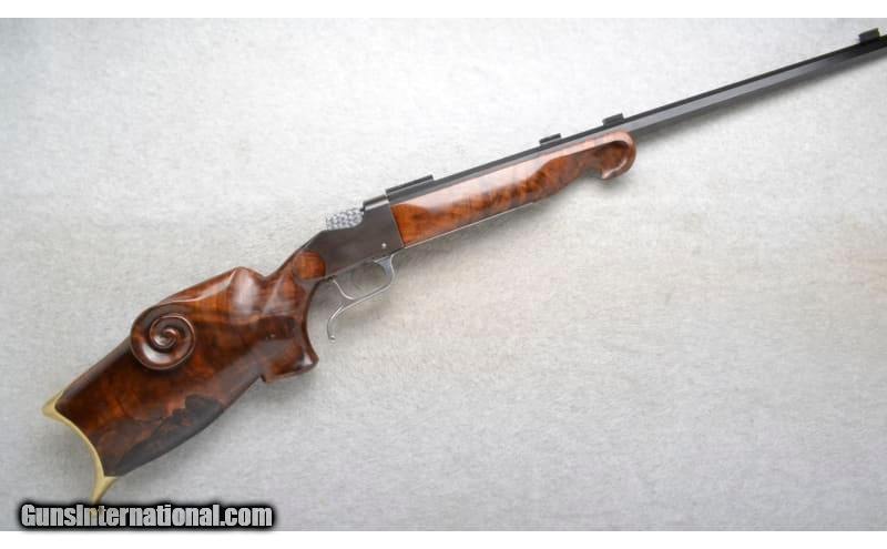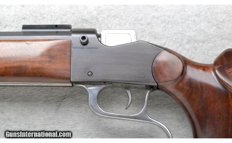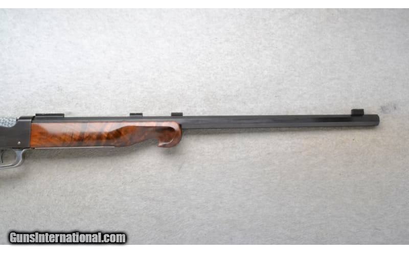 Description: This American Model Single Shot Target is a falling black action rifle in .30 Schwartz Cal. It has a 28 inch octagon barrel No sights are present. The butt stock is a smooth grip walnut pistol grip with a raised cheekpiece. The forearm is a smooth grip walnut with a bottom accessory track. Comes with a box of tools, accessories and brass. .30 Schwartz SOLD Chambers: Single shot falling black action. Metal Condition: Excellent. Wood Condition: Very Good. Some light handling marks. Bore Condition: Excellent. Barrels: 28 inch heavy octagon. Triggers: Single. Stock Dimensions: LOP 13 1/8 inches. Fore End: Smooth grip walnut with a bottom accessory track. Butt Pad: Brass Weight: 11 lb. 10 oz. Sights: No sights are present. Item Location: Richfield, WI |