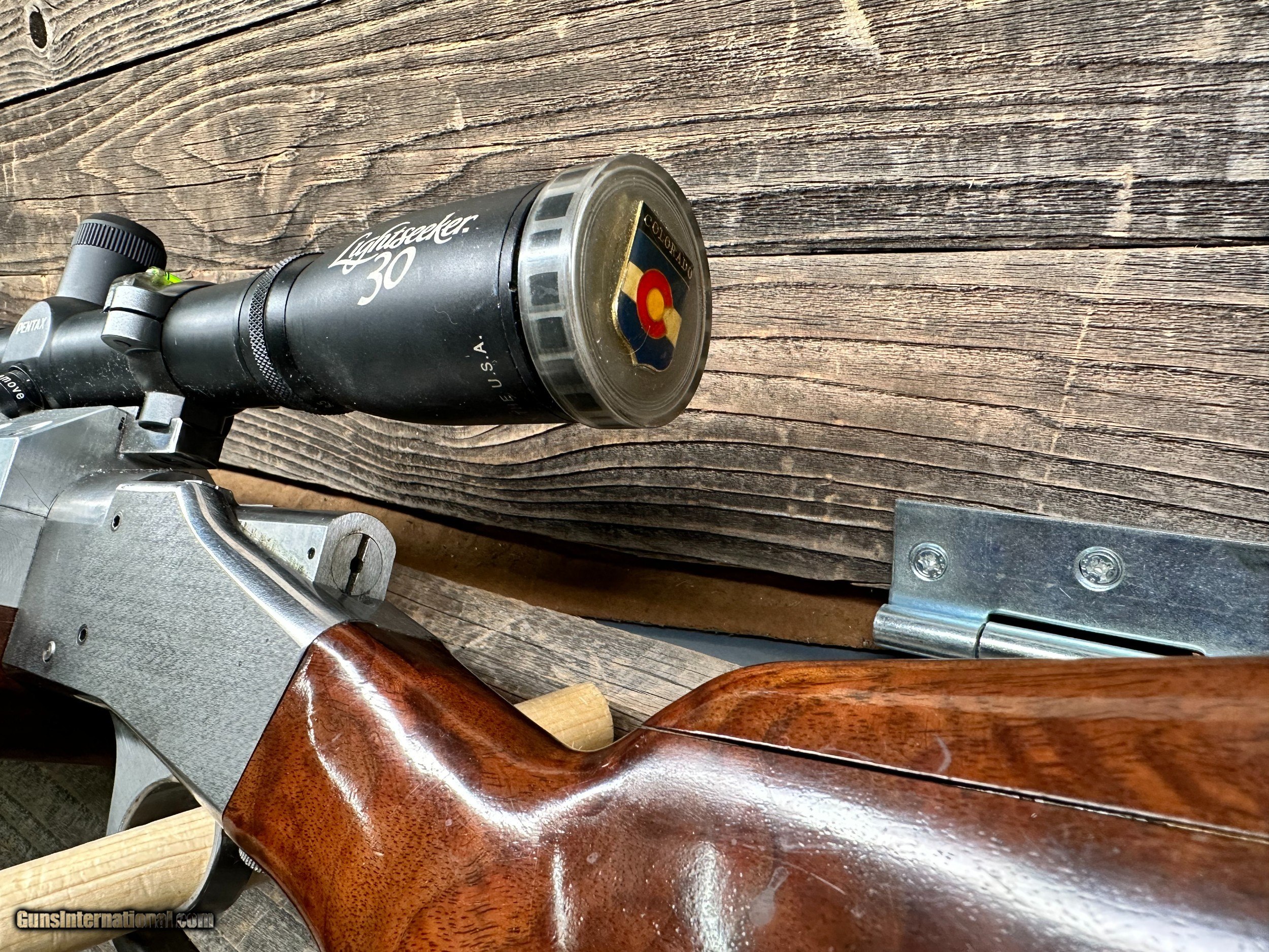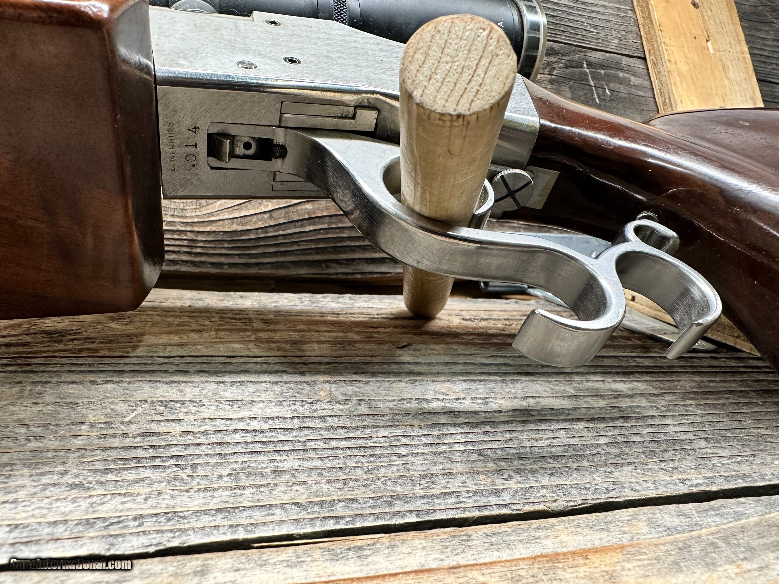 Description: Custom falling block rifle by C.M. Grims, chambered in 6.5-284Norma, sporting a 31" barrel, 13" LoP, mounted Lightseeker 30 8.5-32 scope and a stock with beautiful grain. This rifle will be sold with a bullet mold. SOLD Rifle Caliber: 6.5-284 Norma Item Location: Lakewood, Co |