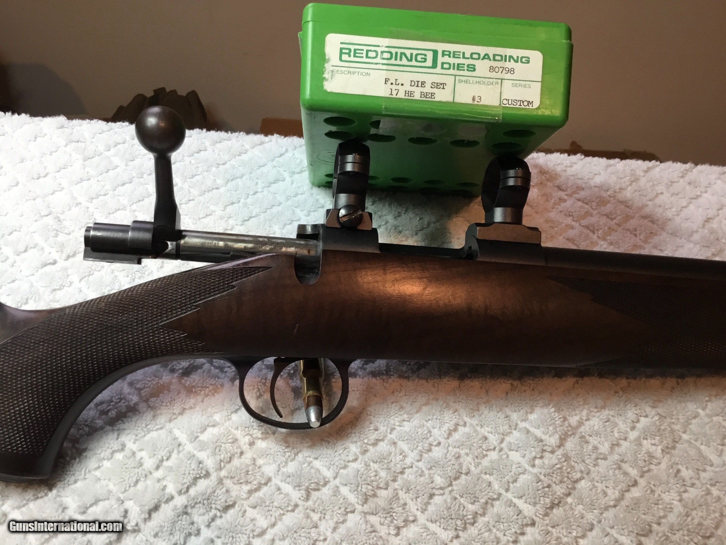 Description: Beautiful Cooper single shot in an unusual and sweet little cartridge. In "The Sensational Seventeens", Todd Kindler writes that "If there was a beauty contest for the Seventeen Caliber Cartridges, the hot-sexy-petite 17 HeBee would win hands down." This rifle does not disappoint. Fine condition. Beautiful (Typical Cooper) wood. SALE PENDING. SOLD Manufacturer: Cooper Model: Model 38 Condition: Excellent Metal Condition: Excellent Wood Condition: Excellent Bore Condition: Excellent |