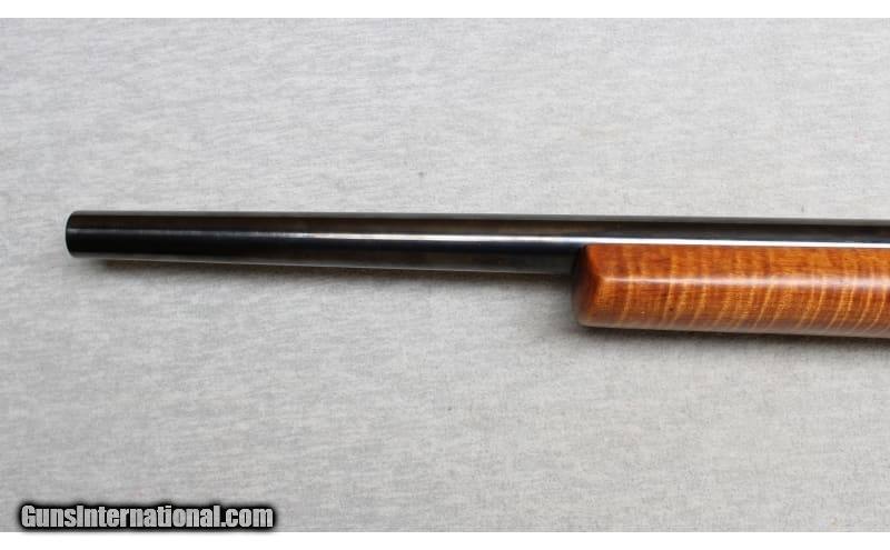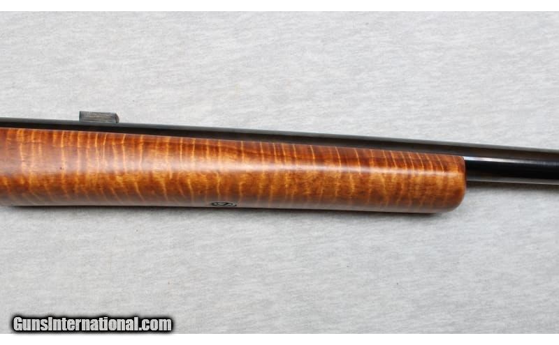 Description: Falling Block Works Custom rifle in .22 K Hornet. This is a gorgeous custom single shot rifle built on a Falling Block Works action. It features a McGowen 23-inch heavy barrel with a mint bore set in beautiful Tiger stripe maple Fajen furniture. The K-Hornet offers a nearly nine percent improvement in case capacity over the original Hornet. The K-Hornet brass is normally fire formed using factory Hornet brass. None SOLD Metal Condition: Excellent Wood Condition: Excellent Bore Condition: Bright Barrels: 23 Inches Triggers: Factory Stock Dimensions: 14 inches Fore End: Smooth maple Butt Pad: Plastic pad Sights: Scope bases for Unertl type scope rings Item Location: La Vista, NE |