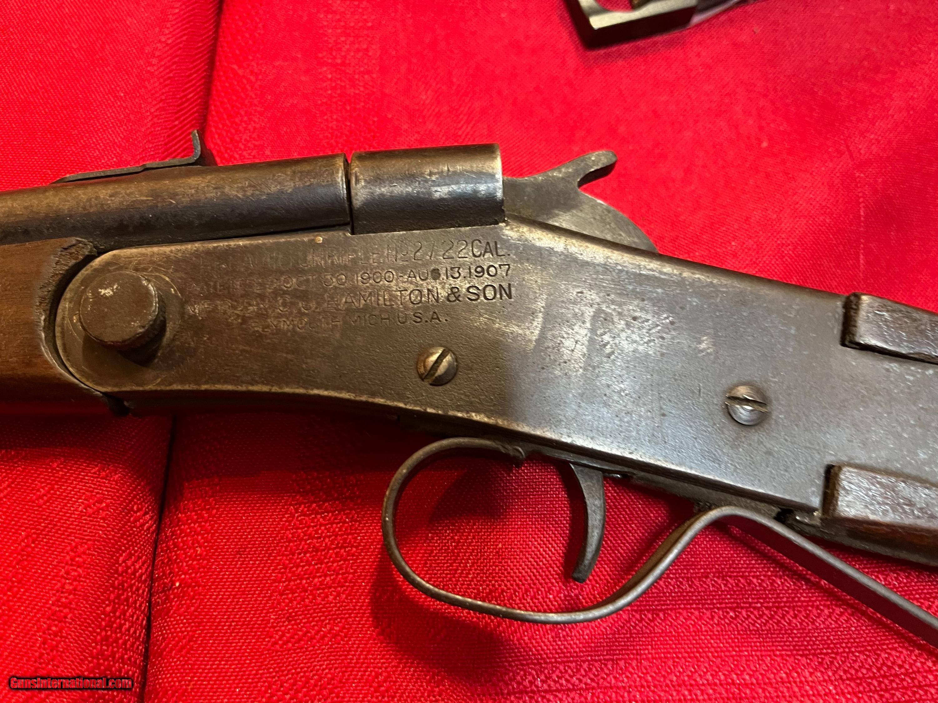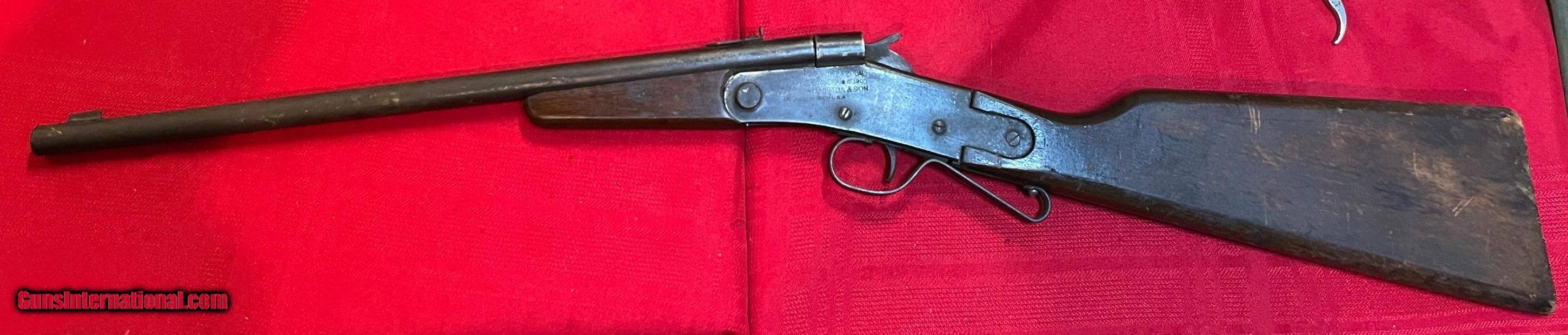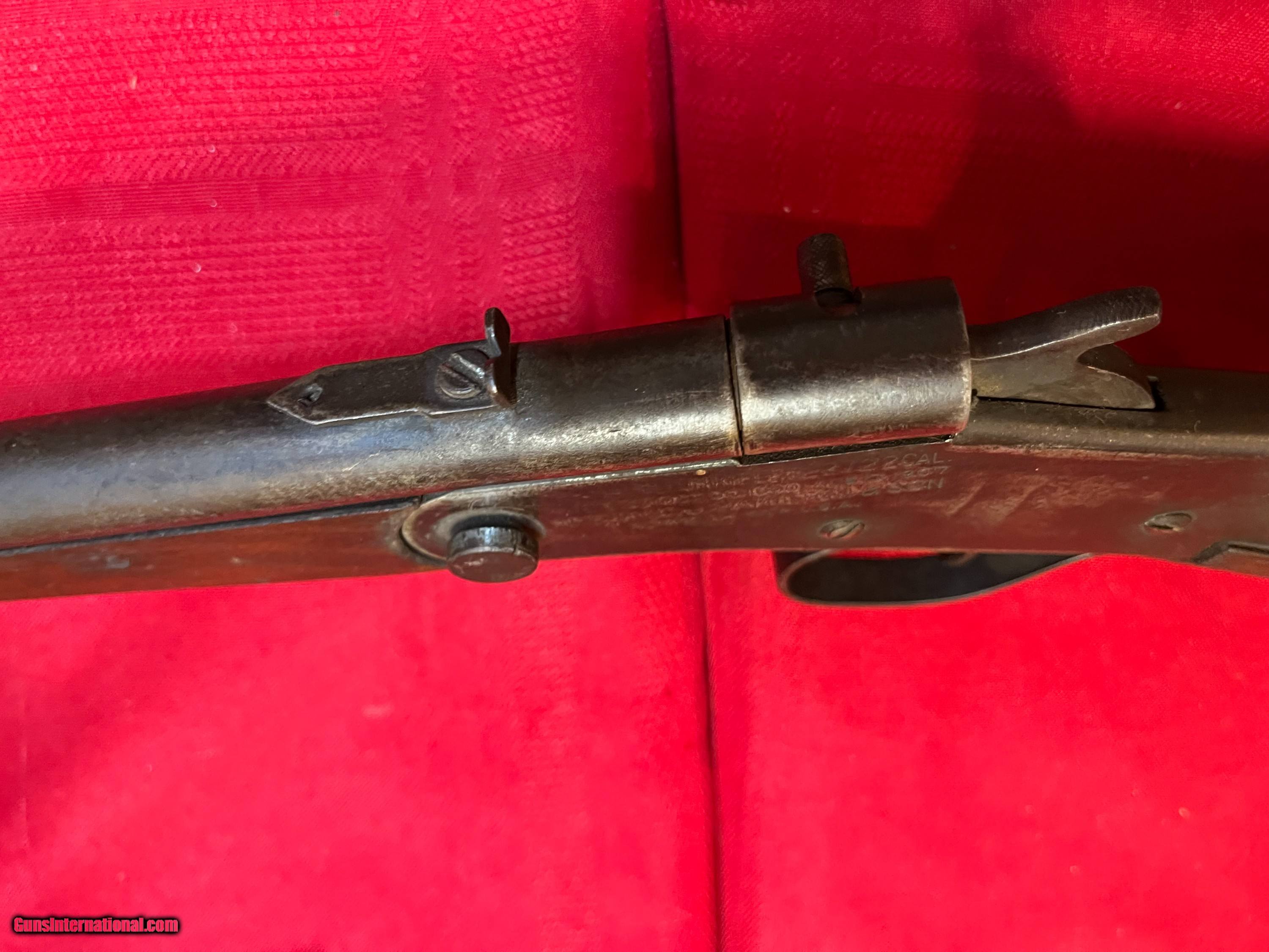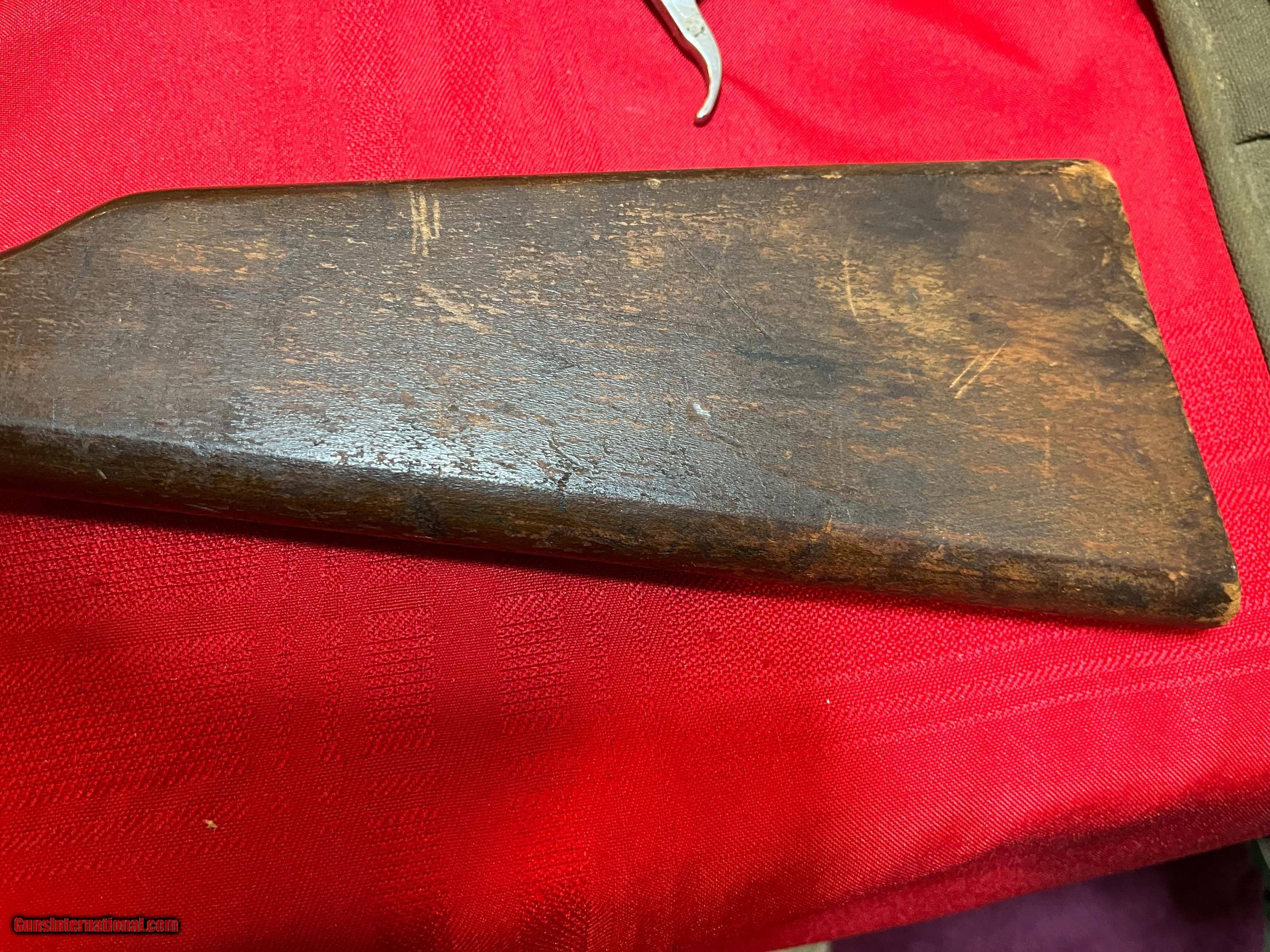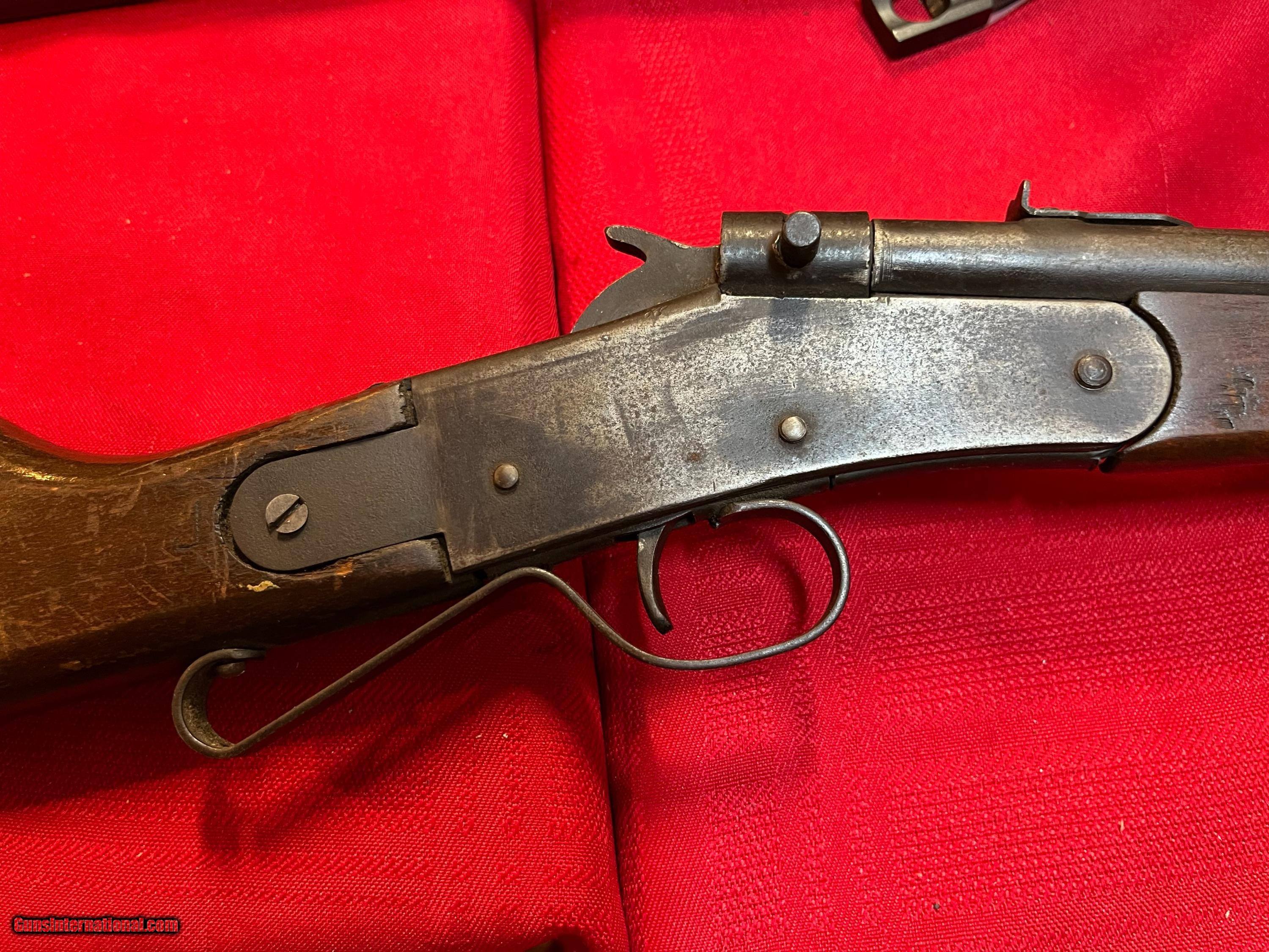 Description: Well used but complete and operating boys rifle. Good bore. An example or parts gun. Wood is solid. All hardware is there. SOLD Curio/Relic: Yes Rifle Caliber: .22 Long |