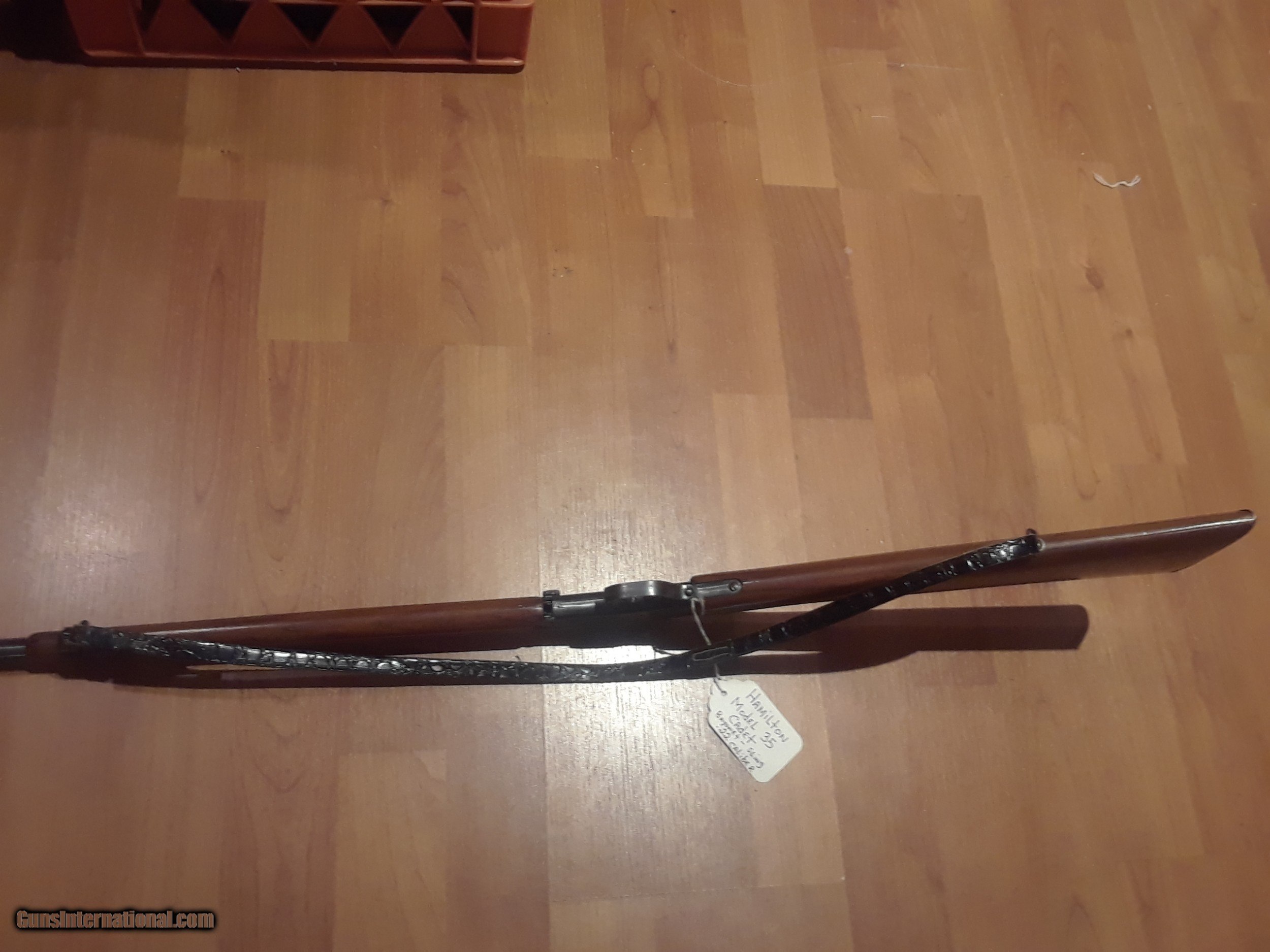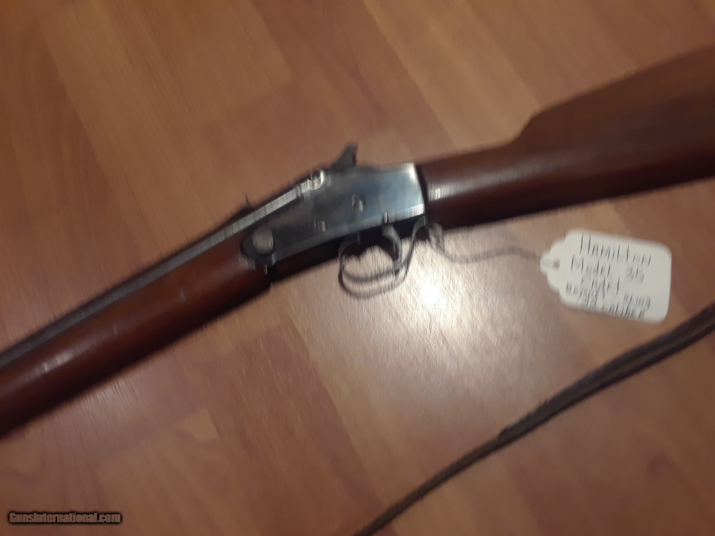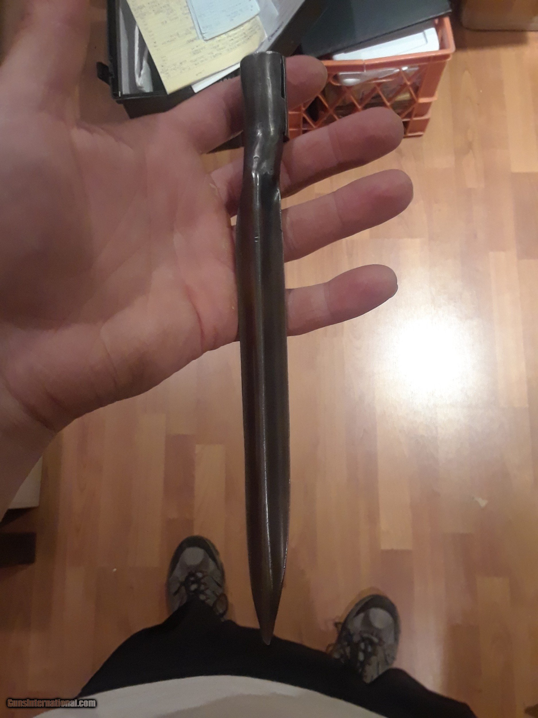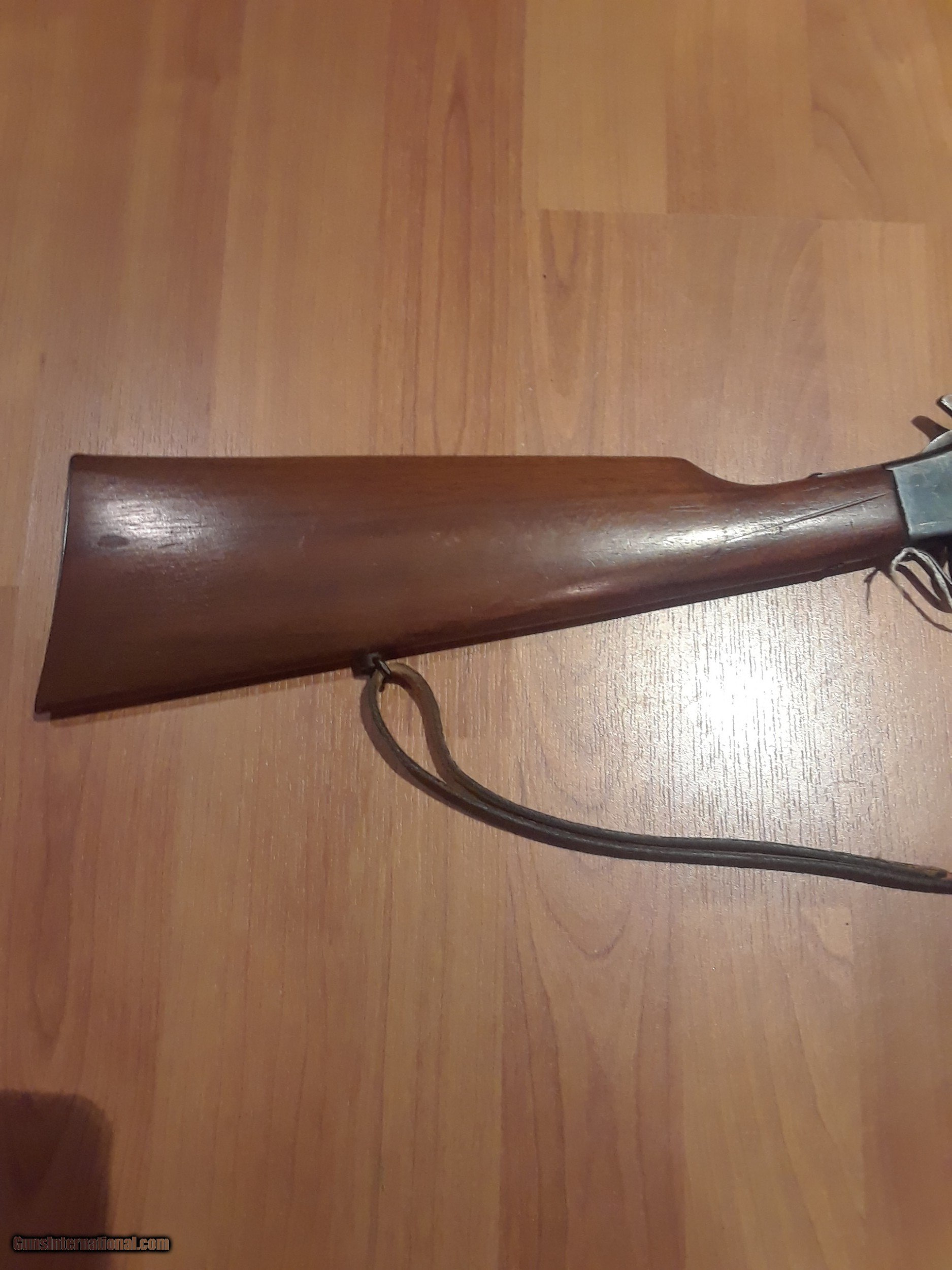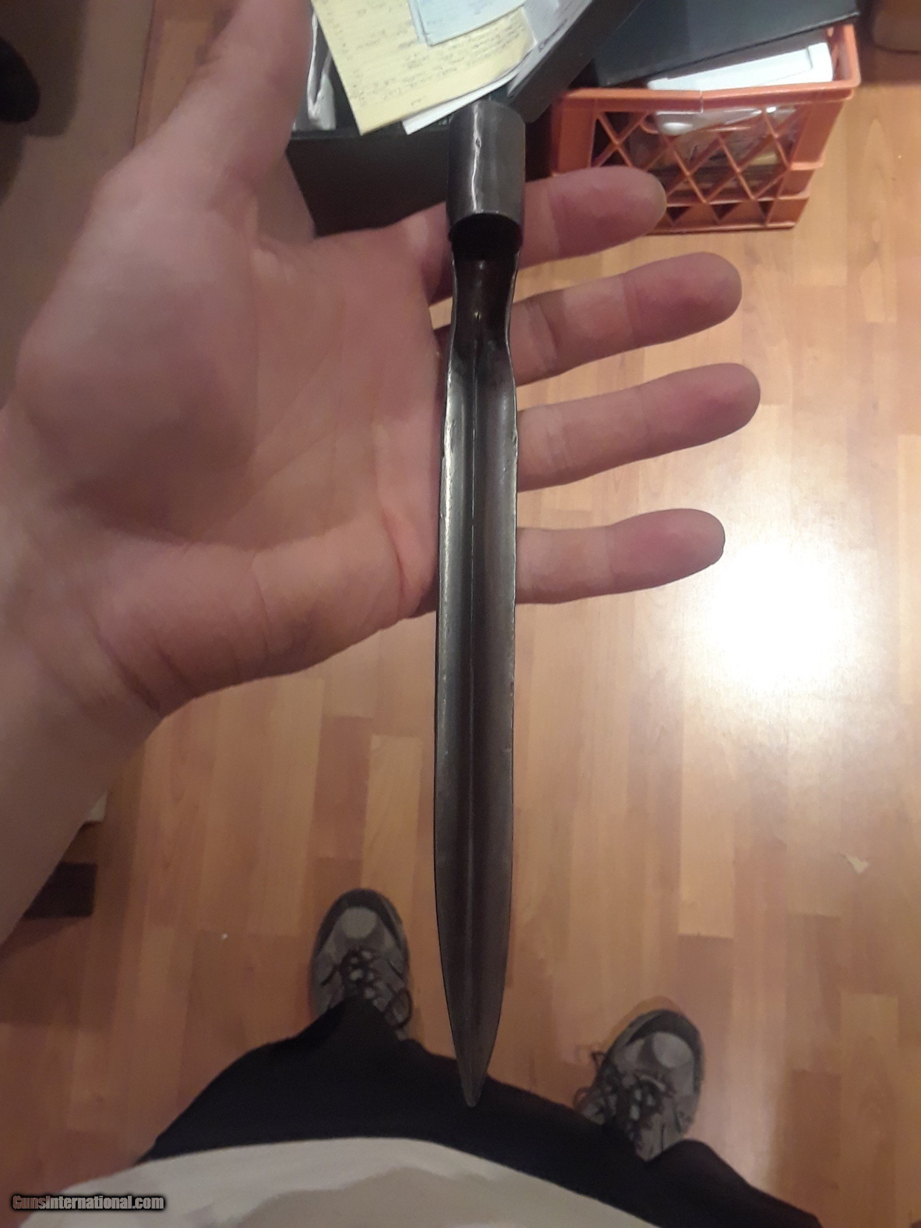Description: Musket style with sling and bayonette. Excellent bore. Wood finish is excellent. Blue 70% plus. Hard to find gun in hard to find condition with accessories. SOLD Curio/Relic: Yes |