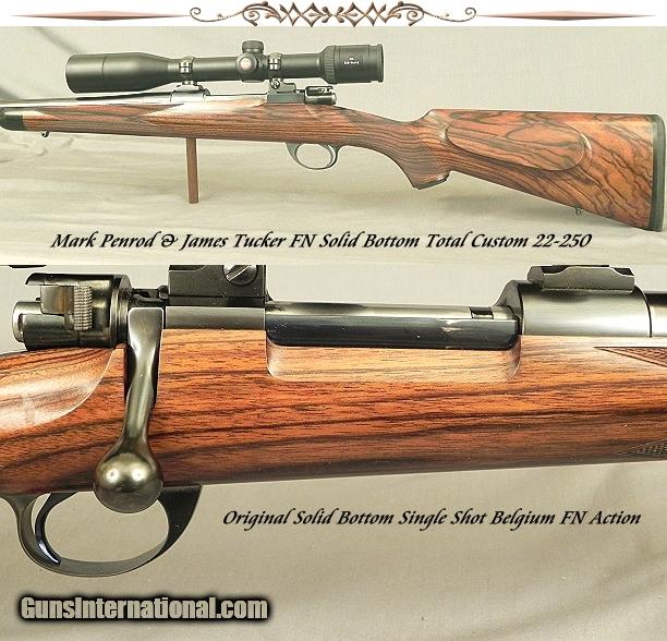 MARK PENROD-JAMES TUCKER 22-250- FN SOLID BOTTOM SGL SHOT ACTION- 5/8" 5 SHOT GROUPS- NICE WOOD- LEICA 3.5x14