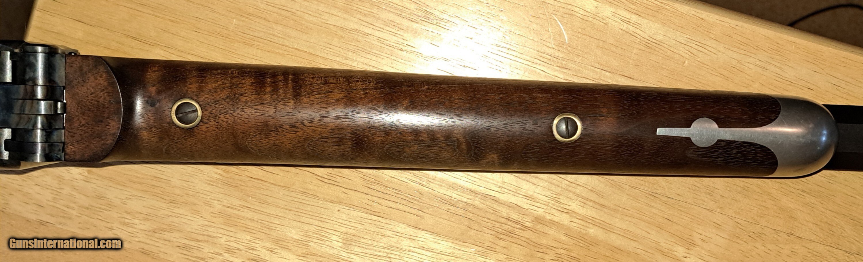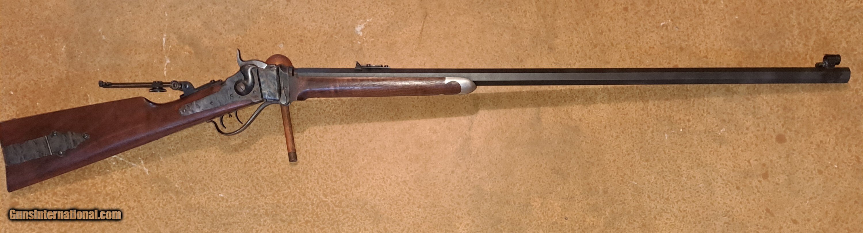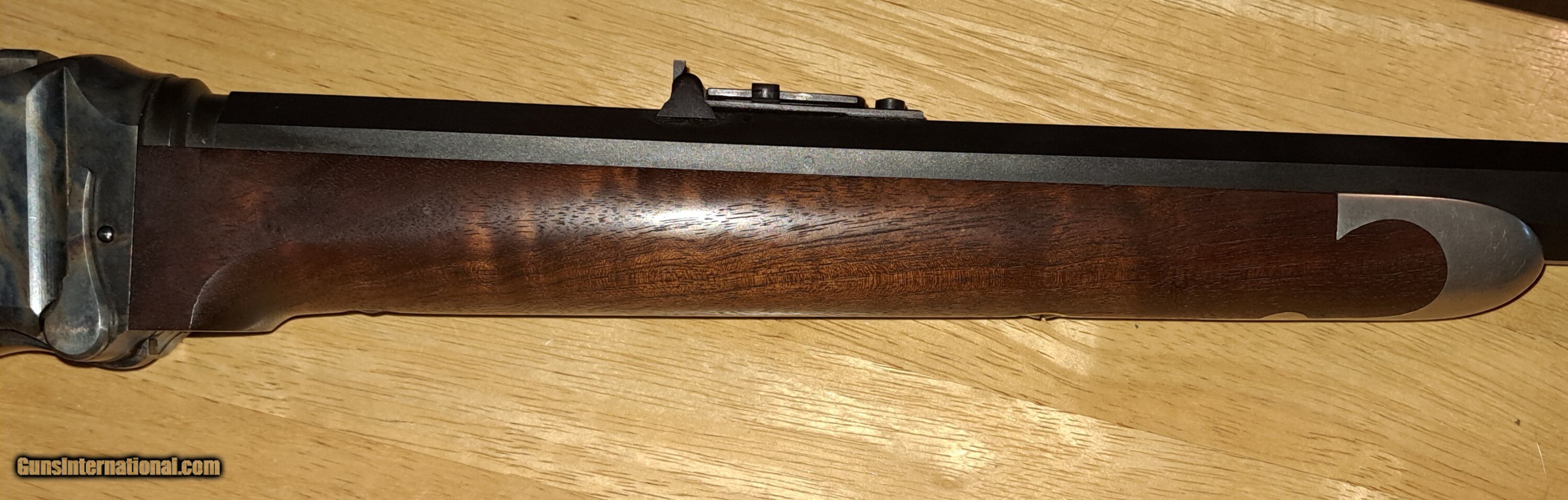 Description: Absolutely beautiful Shiloh Quigley Sharps rifle. .45-70. Fired very little if at all. Condition is easily 99%. This rifle has a heavy 34" barrel. Sights are long range vernier tang with soule adjustments, rear semi-buckhorn rear sight and globe front sight with level. Previous owner put electrical tape around sight to hold inserts in place. I removed this and will get some GoofOff after the residue. The stocks are standard grade Walnut. Steel patchbox and pewter forearm tip. LOP is 14 1/8". Rifle weighs about 11 lbs. Run through Shiloh's cost calculator this rifle would cost $4,495 with over a year wait. Get this one for $3500 + Shipping to your FFL. Add $30 if my FFL has to ship. Price: $3,500.00 Contact Seller |