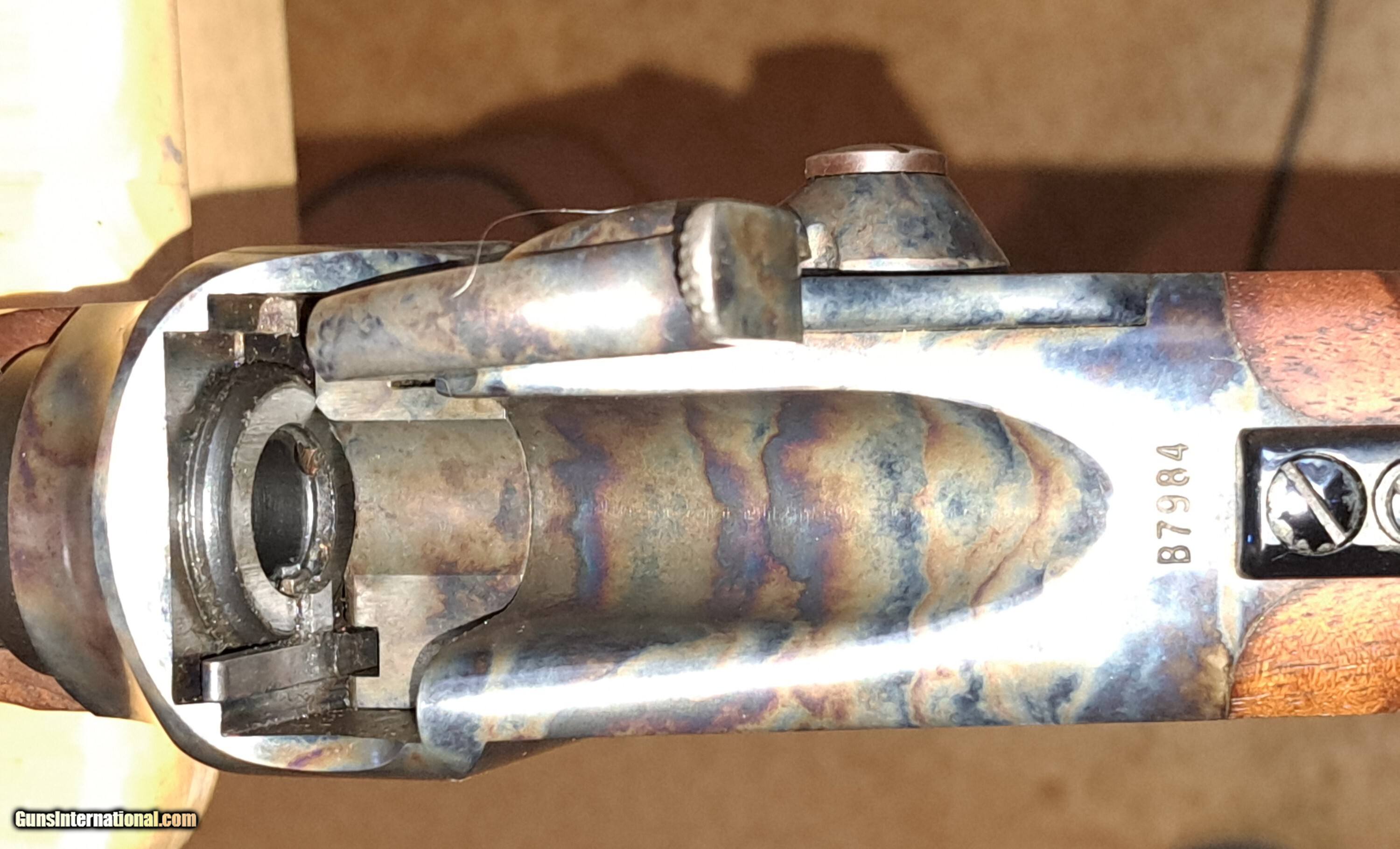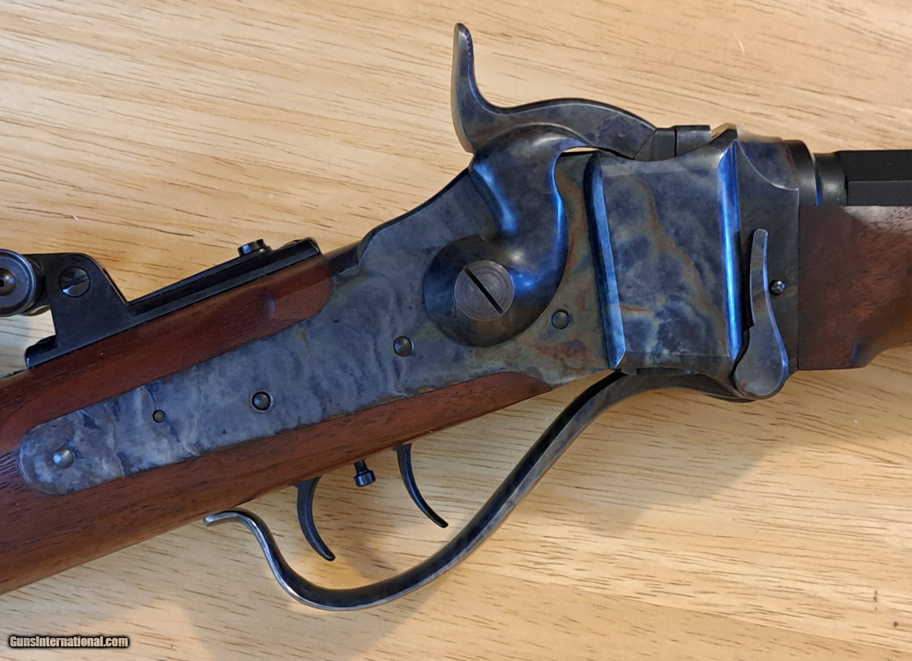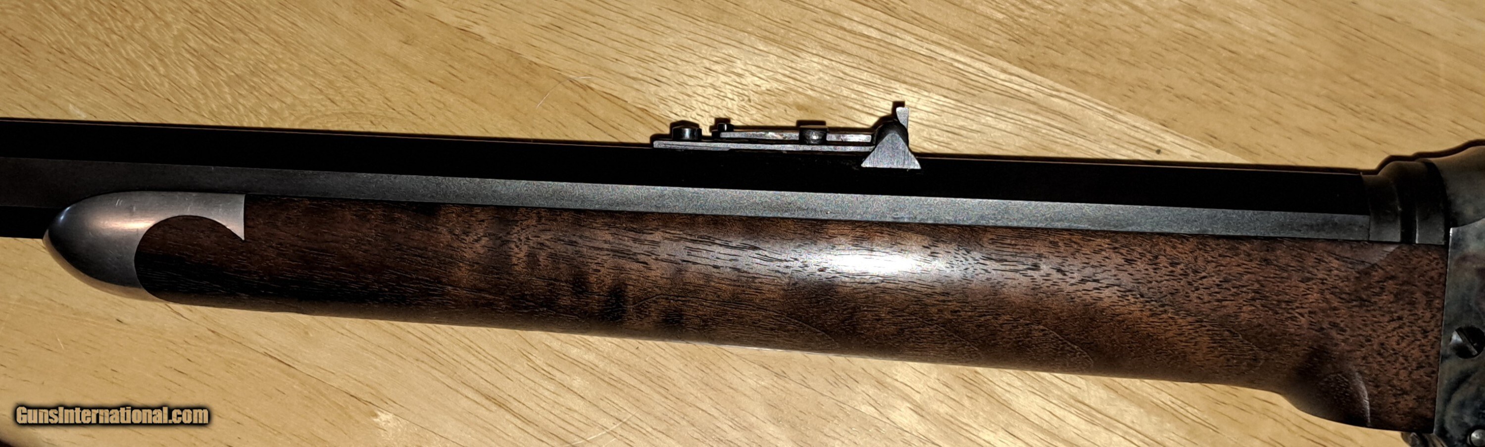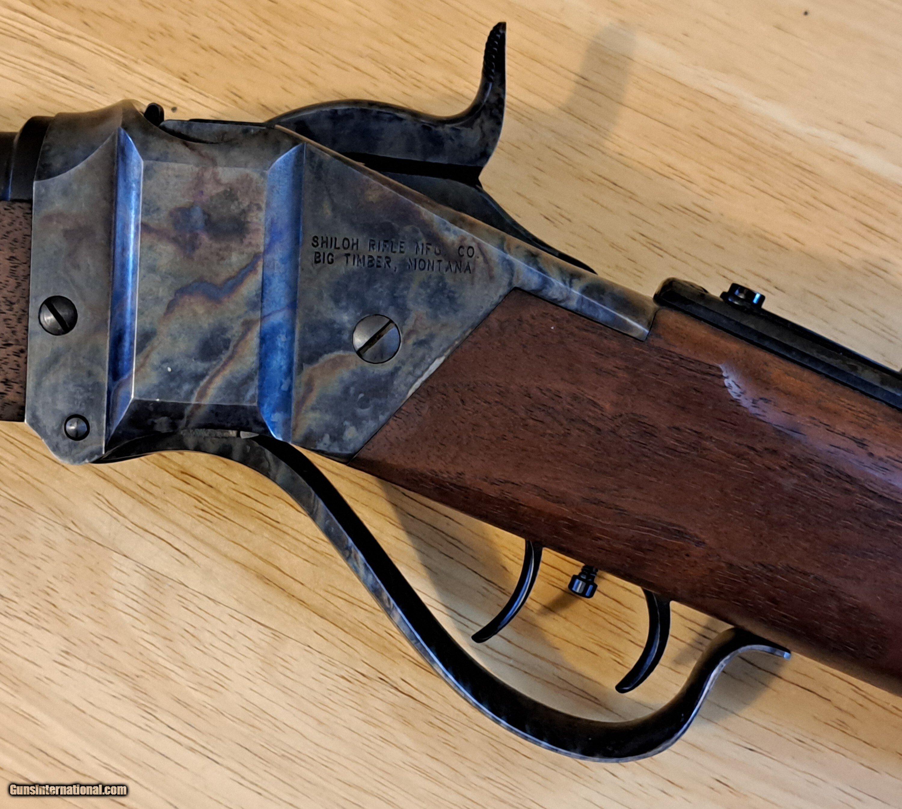 Description: Absolutely beautiful Shiloh Quigley Sharps rifle. .45-70. Fired very little if at all. Condition is easily 99%. This rifle has a heavy 34" barrel. Sights are long range vernier tang with soule adjustments, rear semi-buckhorn rear sight and globe front sight with level. Previous owner put electrical tape around sight to hold inserts in place. I removed this and will get some GoofOff after the residue. The stocks are standard grade Walnut. Steel patchbox and pewter forearm tip. LOP is 14 1/8". Rifle weighs about 11 lbs. Run through Shiloh's cost calculator this rifle would cost $4,495 with over a year wait. Get this one for $3500 + Shipping to your FFL. Add $30 if my FFL has to ship. Price: $3,500.00 Contact Seller |