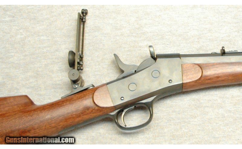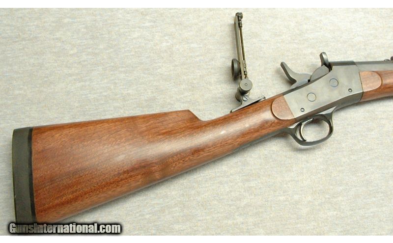 Description: Rolling Block Long Range Rifle. Excellent condition, excellent fit and finish. 30" Heavy octagon barrel and target sights. Chambered for the powerful 45-70 Government cartridge. .45-70 Government SOLD Metal Condition: Excellent Wood Condition: Excellent Bore Condition: Bright Barrels: 30" Octagon Triggers: Factory trigger Stock Dimensions: 14" LOP Fore End: Smooth Butt Pad: Decelerator pad Sights: Adjustable Vernier fold down sight Item Location: La Vista, NE |
