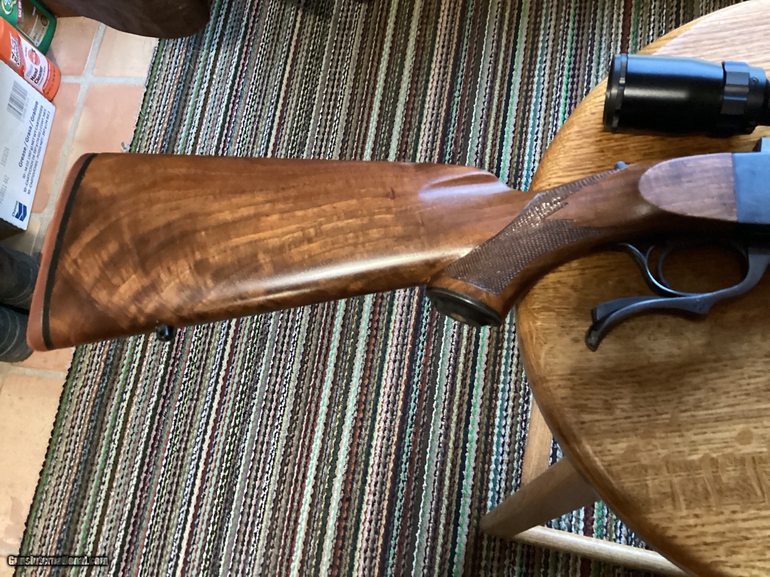 Description: Very nice Ruger #1 in 22-250 caliber. Shoots very accurate. The blue is mint. The stock has very few small marks on it. Made in 1969-1970. Has the 4 digit contoured butt pad. Add $40. Shipping and copy of FFL. I prefer USPS Money Order. No California Sale. Phone: 208 863 0177 [ SEE MY OTHER RARE LISTINGS ] Rifle Caliber: .22-250 Remington Price: $1,450.00 Contact Seller |