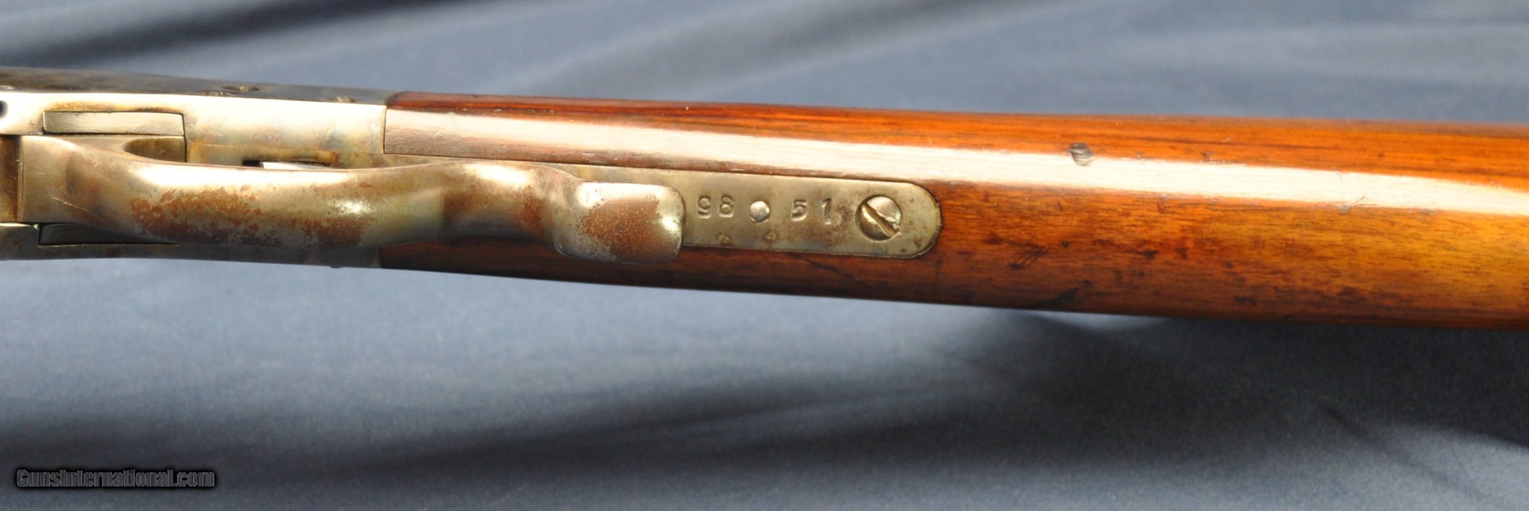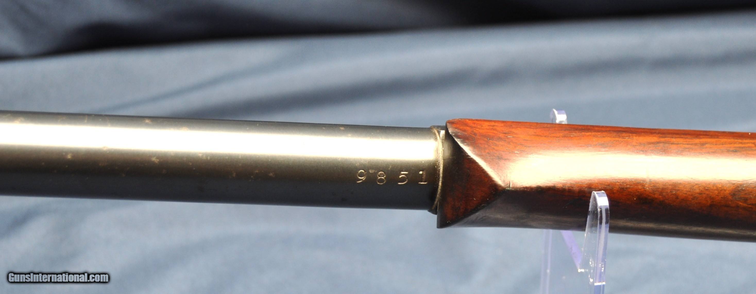 Description: Very nice example of an original Stevens single shot 45 Range Model rifle, based on the 44 1/2 action. Serial # 9851 puts its date of manufacture in the 1890's. Marked 45. Chambered in .32 rimfire with a 28" half octagonal barrel. Bore is in excellent condition. Action is tight and operates smoothly. Swiss buttplate. Very vivid case on the reciever with some minor use and handling wear. Bluing is very nice on the block and hammer. Case still very visible on the buttplate. Wood is in fantasic shape with original varnish and normal handling marks present. Graduated tang rearsight. One box of dry stored Navy Arms ammo included with the sale. Gun case include with sale as well. Feel free to email for more pictures, questions/shipping quote or to make an offer. Curio/Relic: Yes Rifle Caliber: .32 RF Manufacturer: Stevens Model: 45/44 1/2 Serial Number: 9851 Barrel Length: 28 Condition: very nice Bore Condition: very good Price: $2,350.00 Contact Seller |
