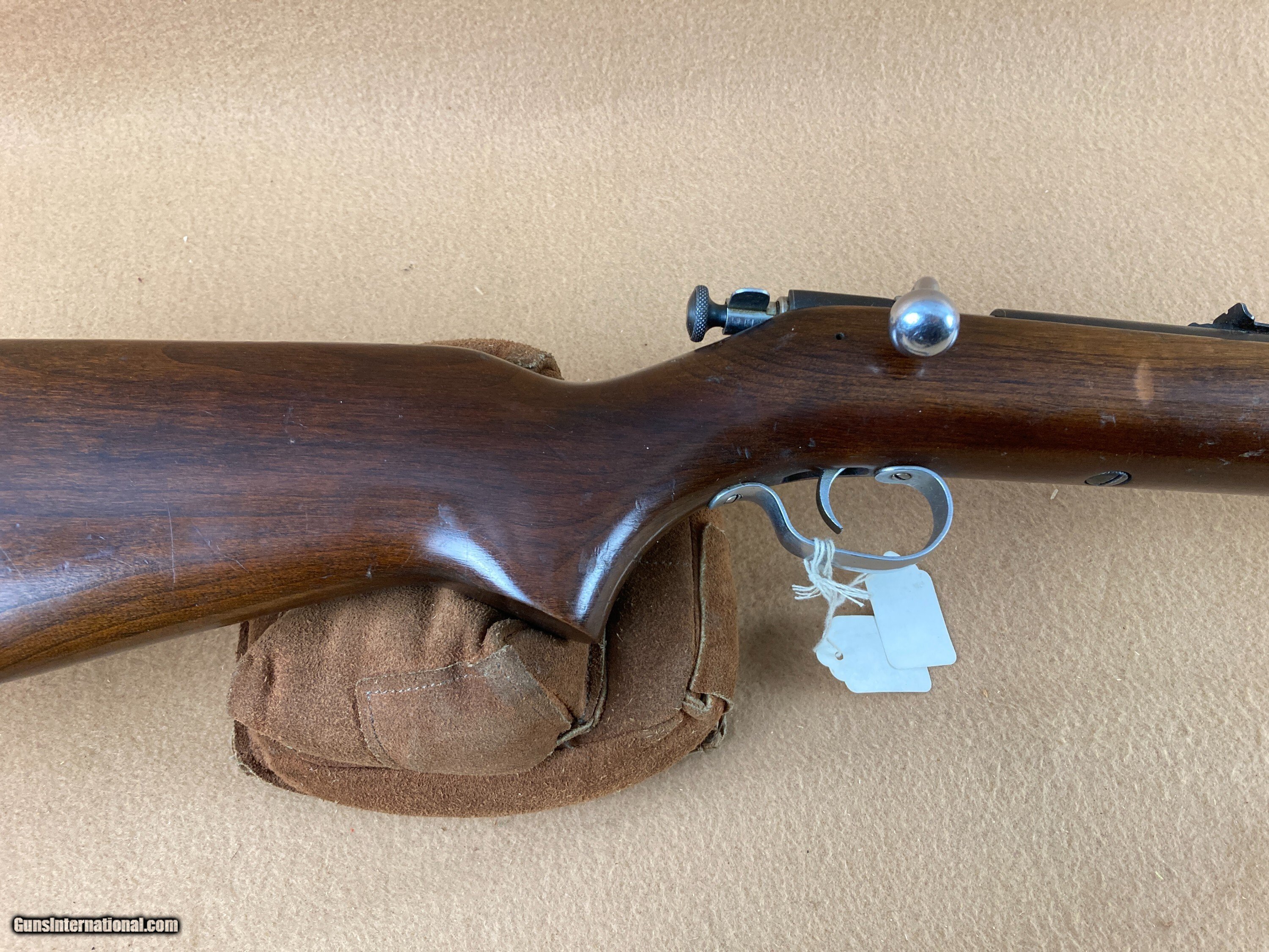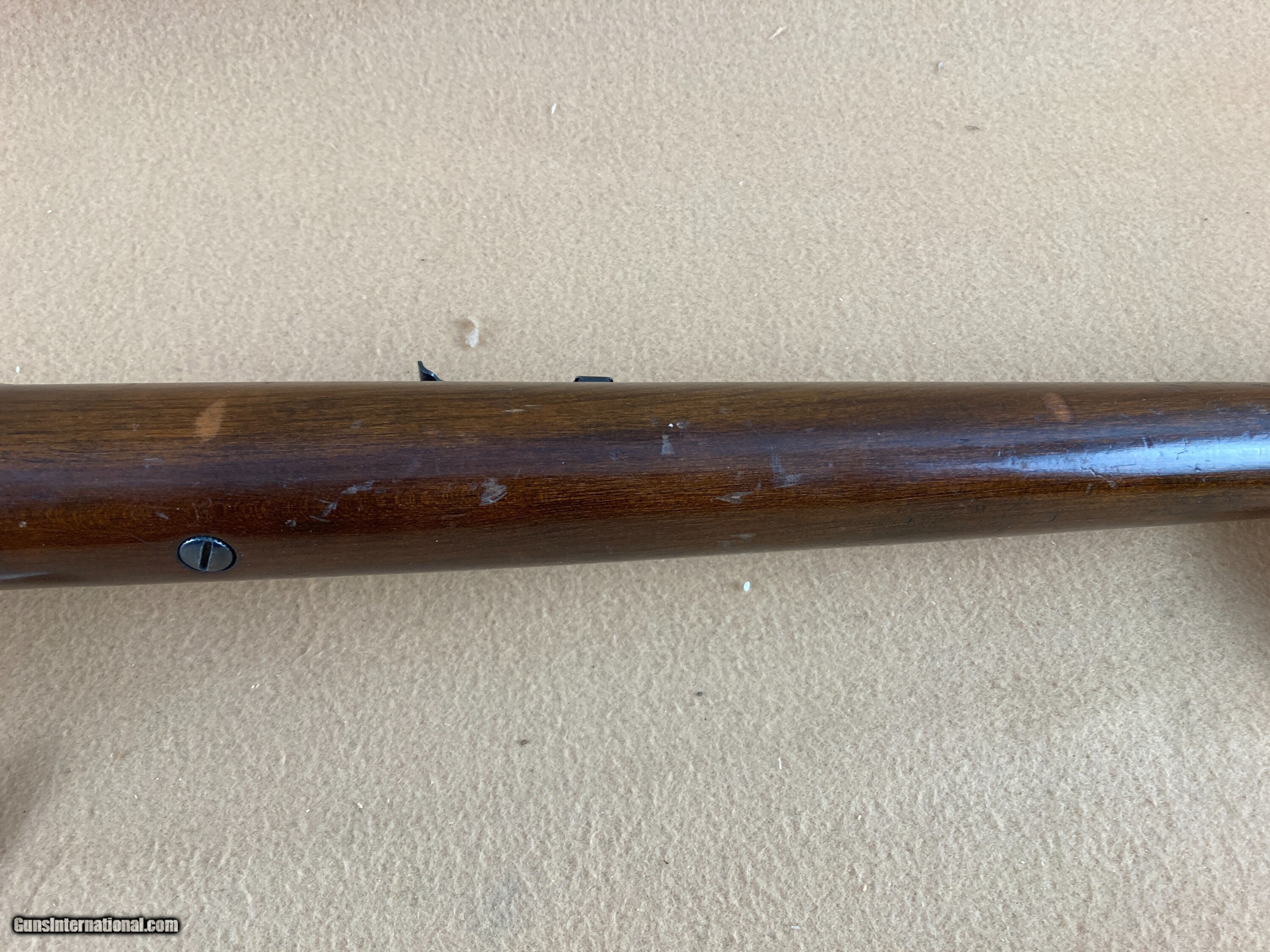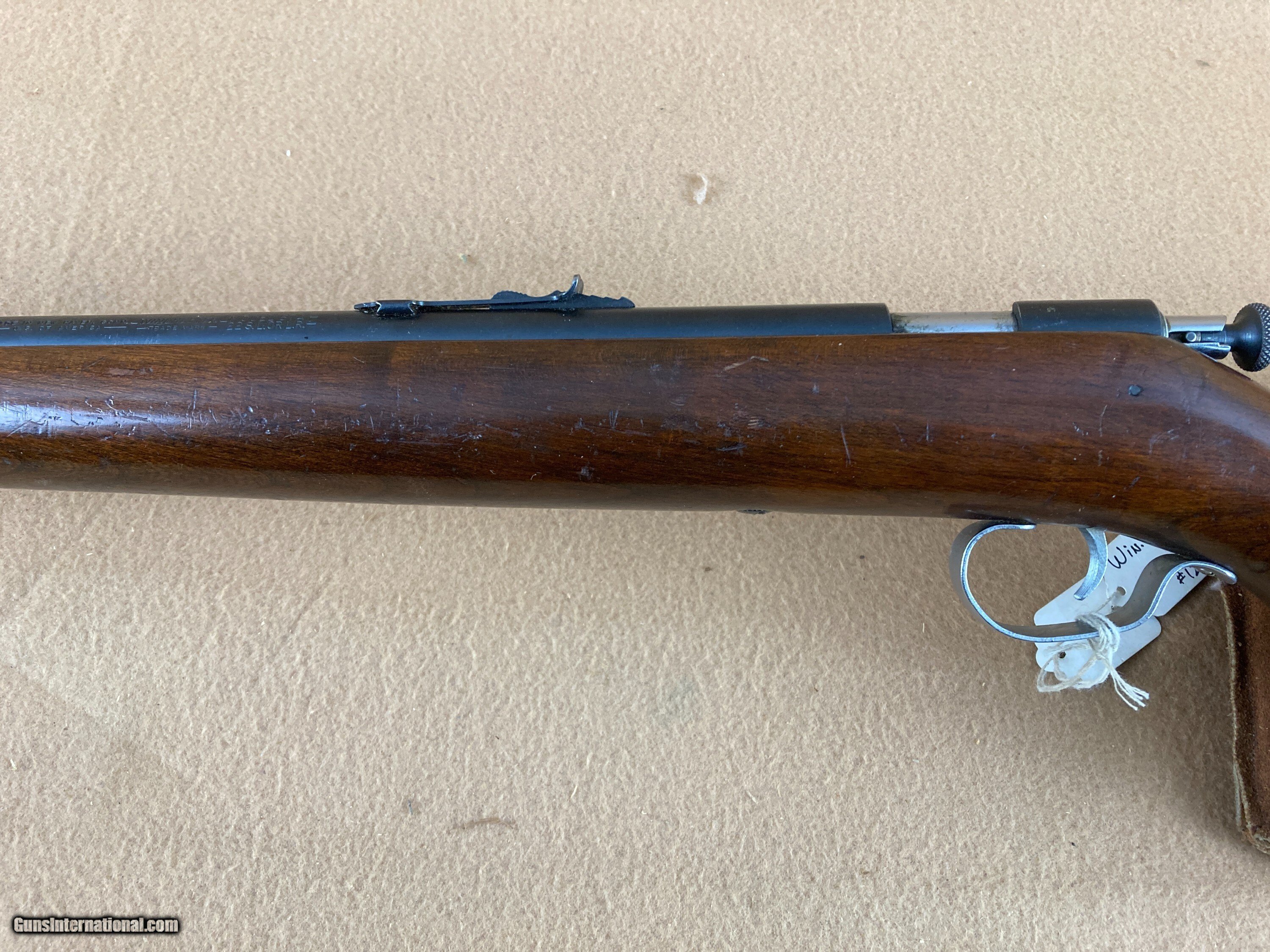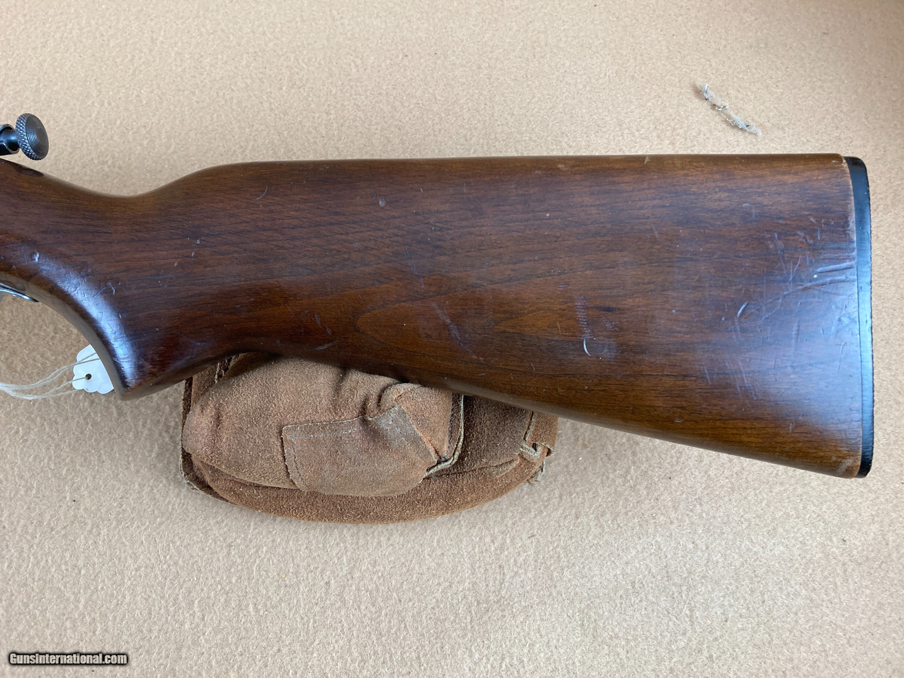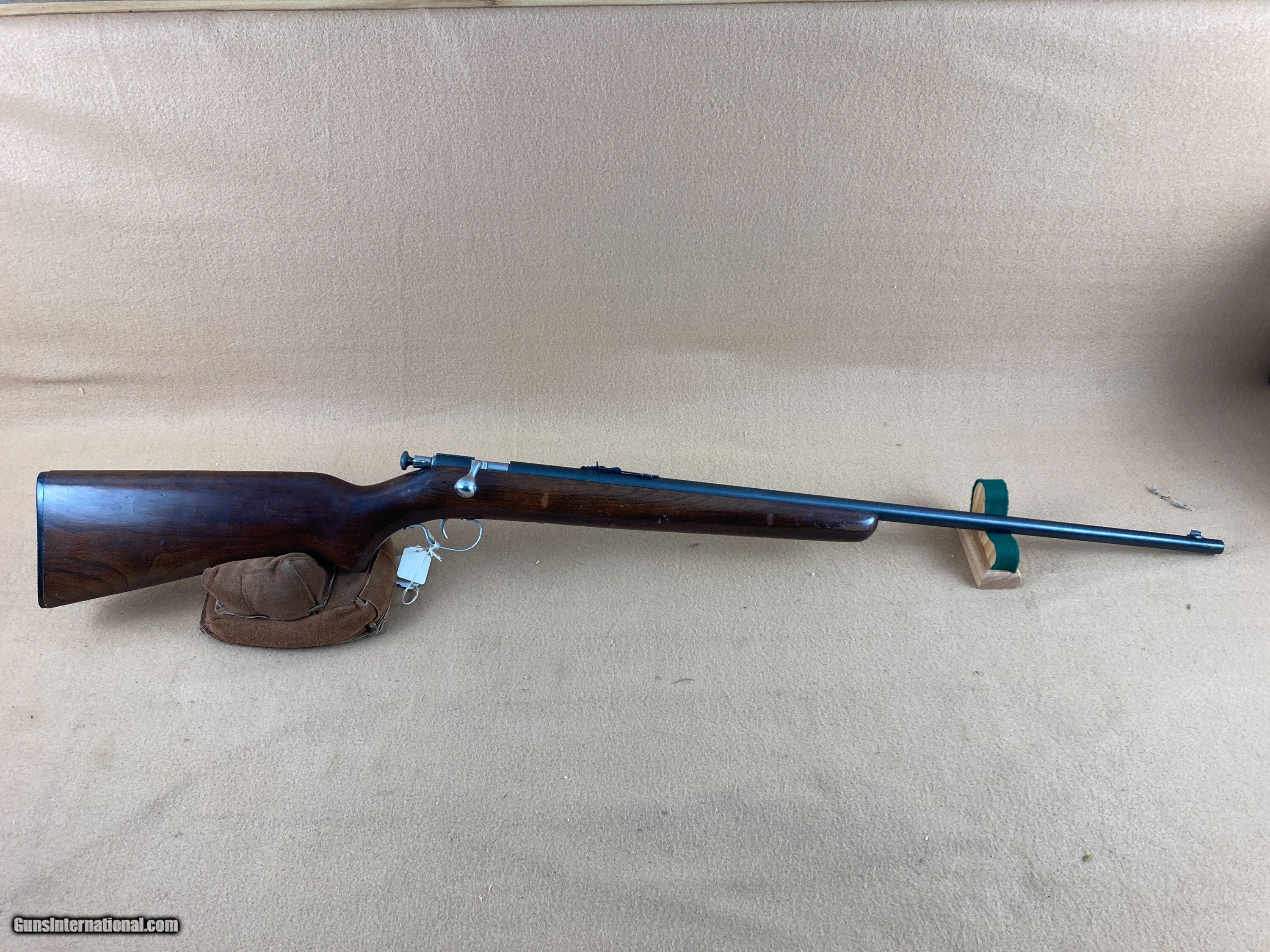 Description: Fabulous Winchester model 67A in .22 Short, Long, Long Rifle Caliber. This model was first introduced in 1934. The barrel markings according to “The Winchester Hand Book by Madis”, indicates it to be a later model. The model 67 and 67A had no serial numbers on them, making it hard to pin down the year this weapon was produced. Last year of production was 1963 according to a Google search. The bore is bright and shiny with beautiful rifling, has no visible pitting. Overall bluing rates at 90%, with some handling wear and dings. The wood is very nice with the expected scratches and dings and no visible cracks. Plastic butt is complete with no cracks. The chrome bolt, trigger and trigger guard are in beautiful condition with no rust. Please review photos as they are part of the description. I have had this rifle in my collection for many years. I have no young children to give this rifle to. The rifle would make a great trainer or first rifle for a child as it uses economical .22 ammunition. I do not shoot my collectable weapons. The rifle is sold as is with no warrantee. All used weapons should be checked by a gunsmith before firing. The weapon will be shipped to your FFL of choice. Curio/Relic: Yes Rifle Caliber: .22 Long Rifle, .22 Short, .22 Long Manufacturer: Winchester Model: 67 A Serial Number: none Barrel Length: 27 Condition: very good Metal Condition: very good Wood Condition: very good Bore Condition: excellent Barrel Type: round Action: bolt action Triggers: single Stock: Pistol Grip Butt Pad: plastic Finish: blue Weight: 5pounds Sights: original Manufacture Date: 1934-1963 Item Location: Oregon Price: $295.00 Buy Now Pay with