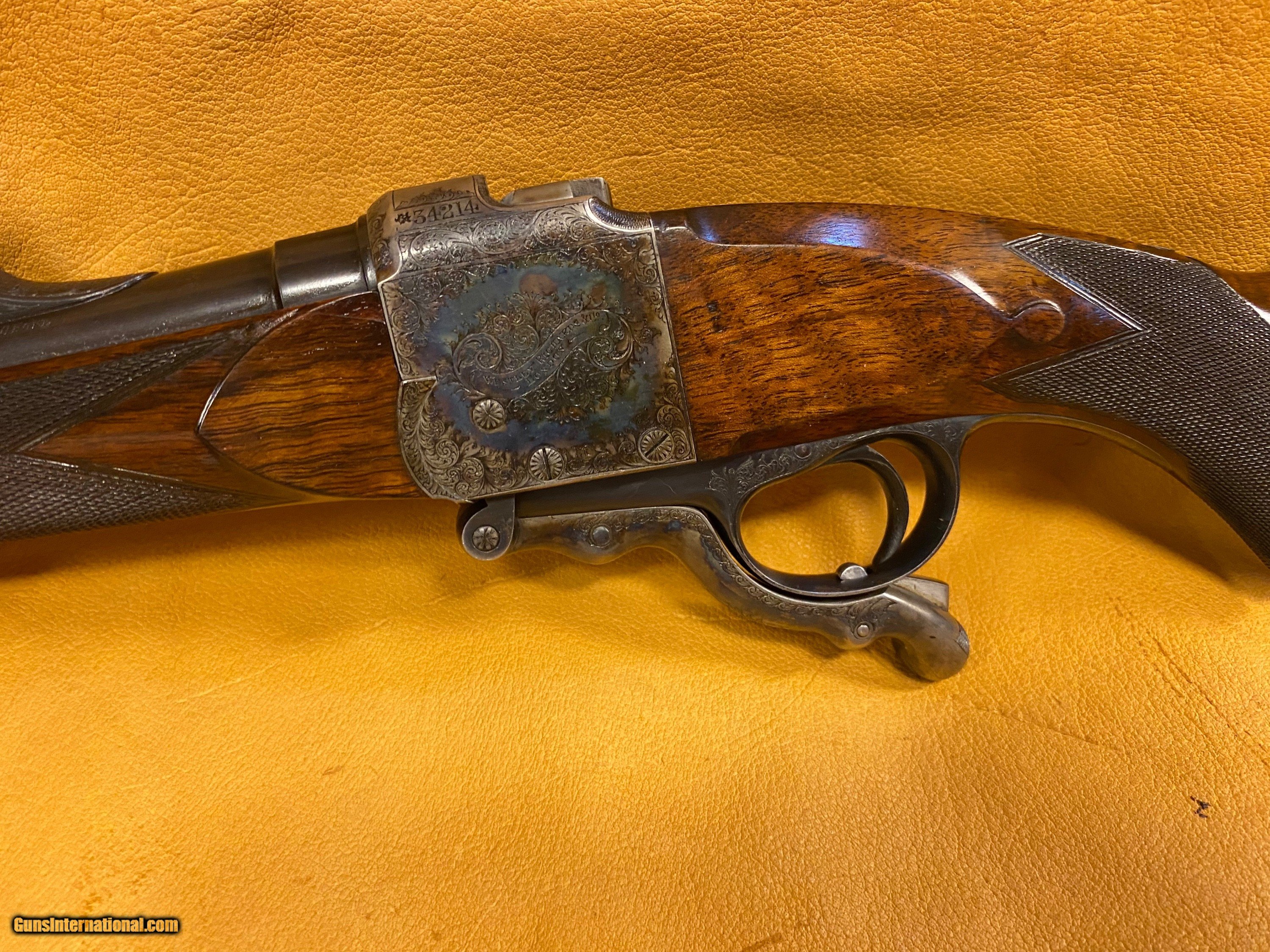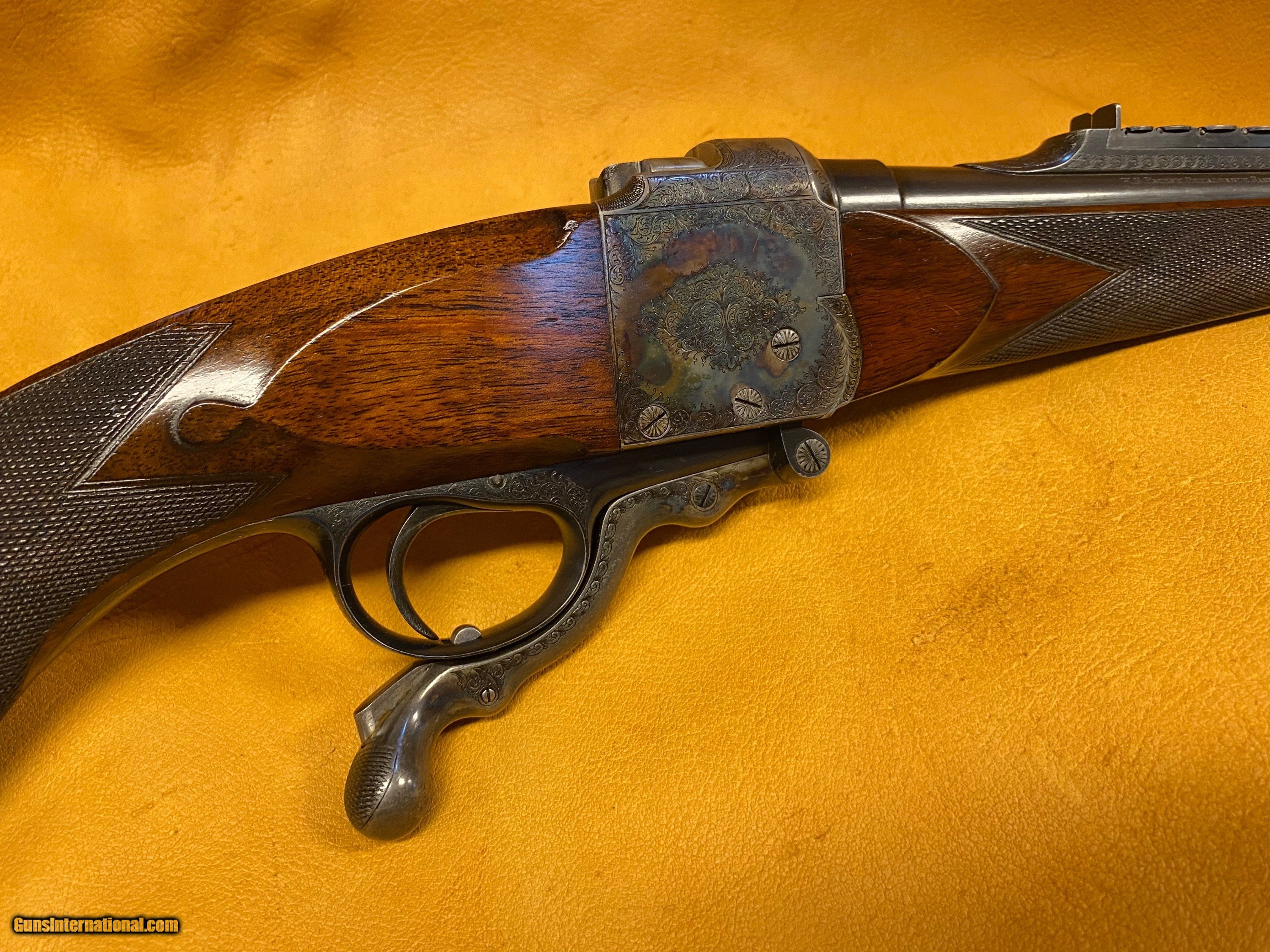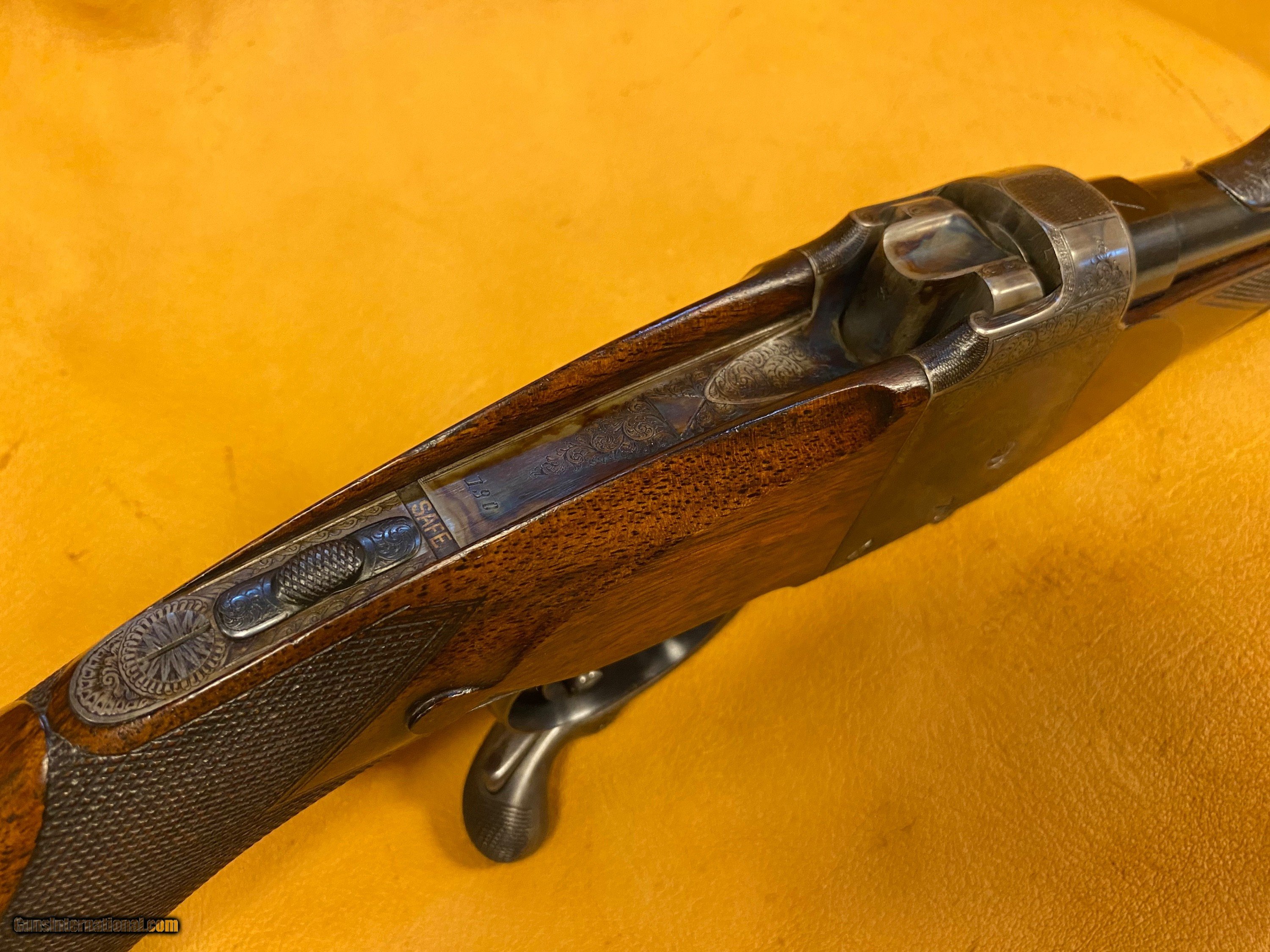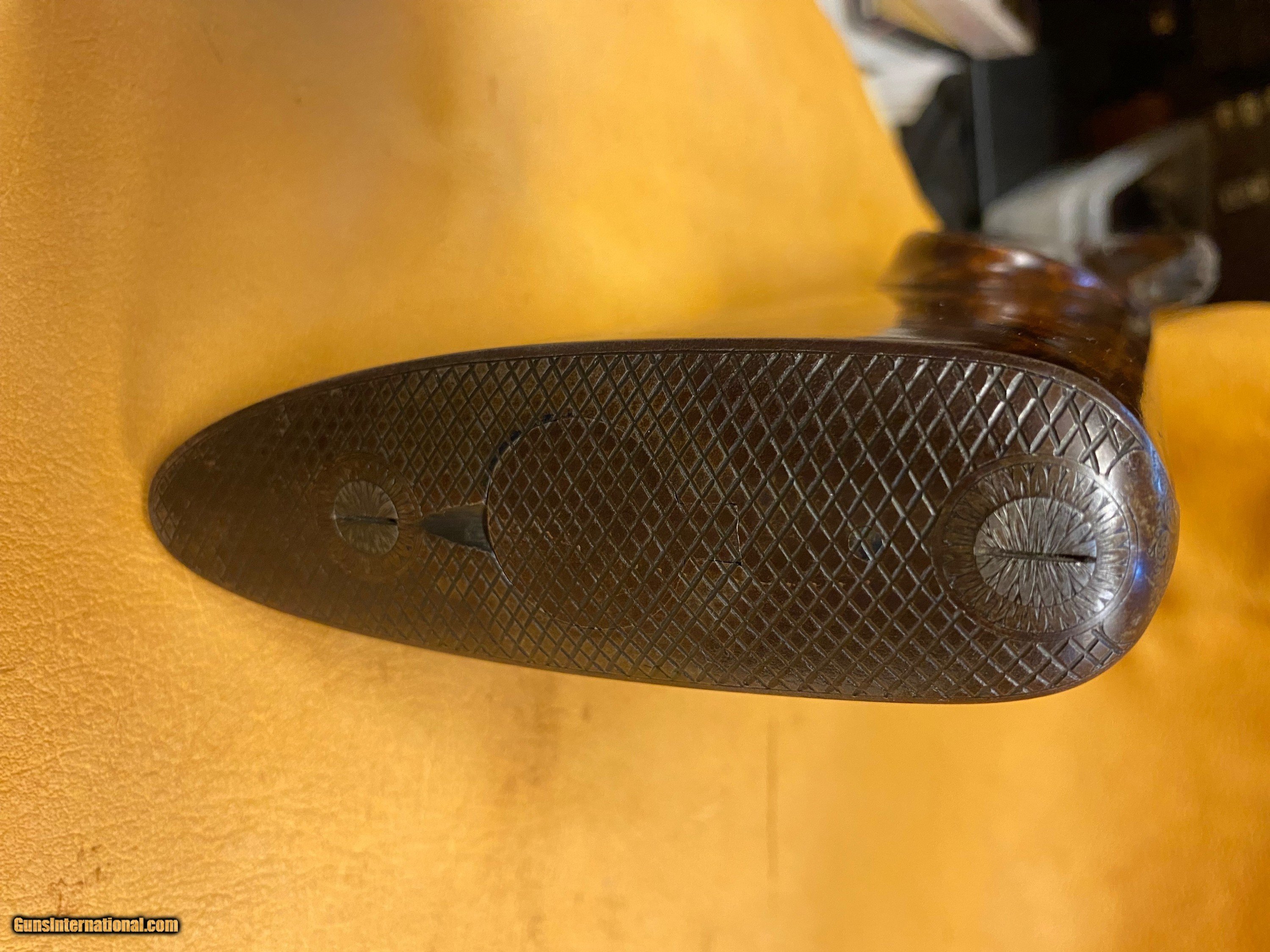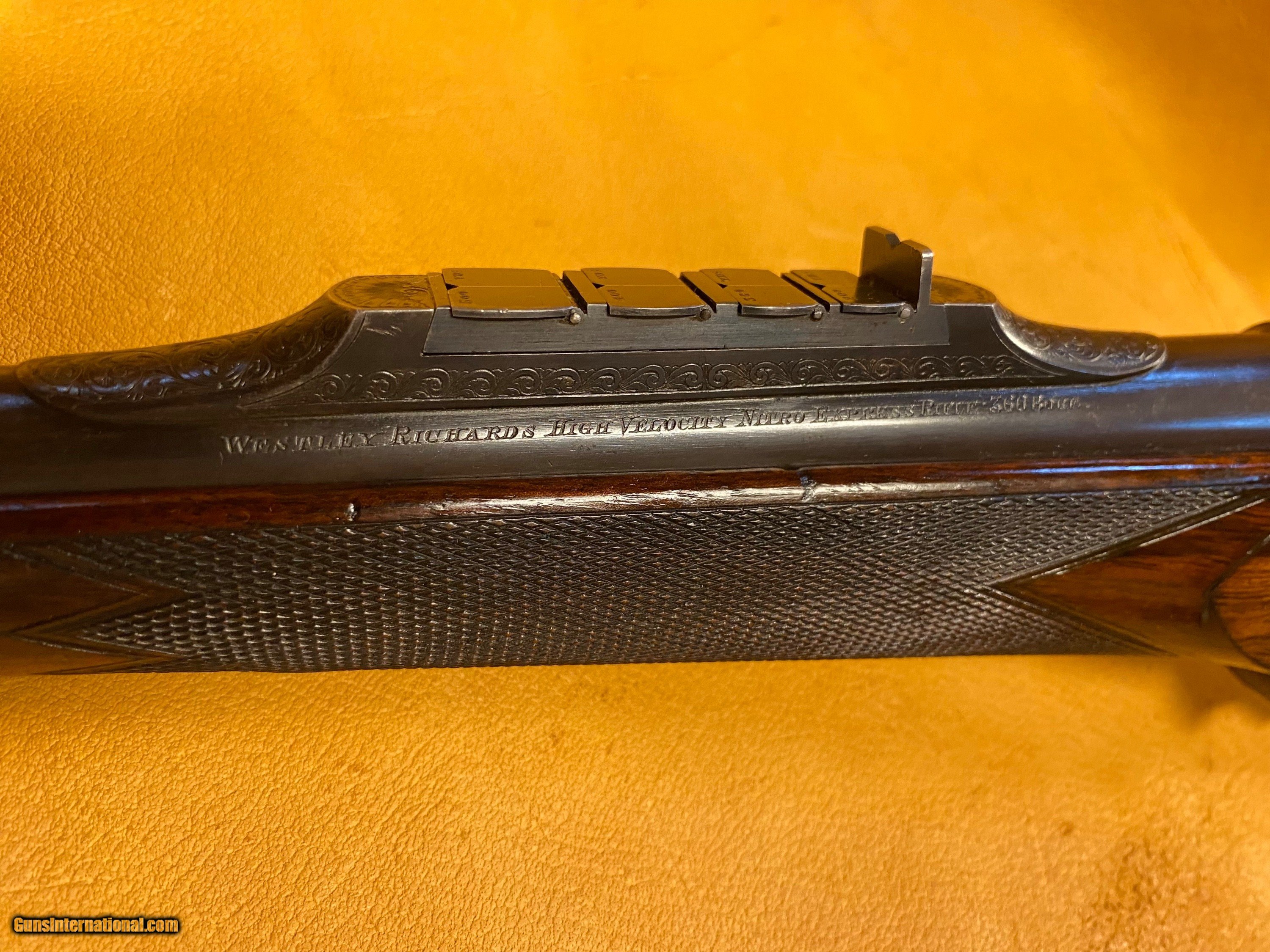 Description: This is a best quality Westley Richards 1897 single shot chambered in 400-360. I believe all finishes, both wood and metal, to be original and close to 100%. I hope the pictures speak for themselves, but contact me with questions. SOLD Curio/Relic: Yes Rifle Caliber: .400/360 Nitro Express Manufacturer: Westley Richards Model: 1897 Serial Number: 34214 Barrel Length: 26 1/2” Condition: Excellent Metal Condition: Excellent Wood Condition: Excellent Bore Condition: Excellent LOP: 14 5/8” Weight: 7 3/4lbs Manufacture Date: 1902-4 Proof:Nitro: Yes |