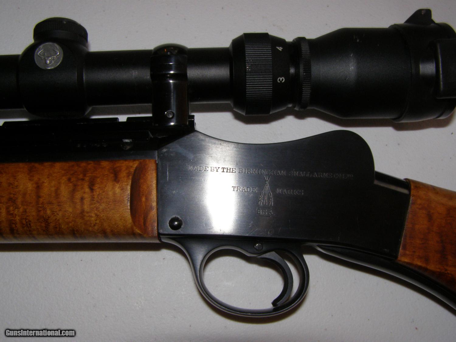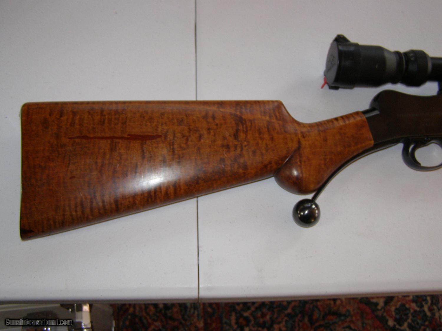 Description: BSA-Martini small action rife with octagon to round barrel, chambered in 32-20 (32WCF) with Simmons Whitetail 3x9 scope. The bluing of this rifle is deep blue-black on both action and barrel and is unmarred. The stock is hard maple and there are no cracks or hole in it. SOLD |