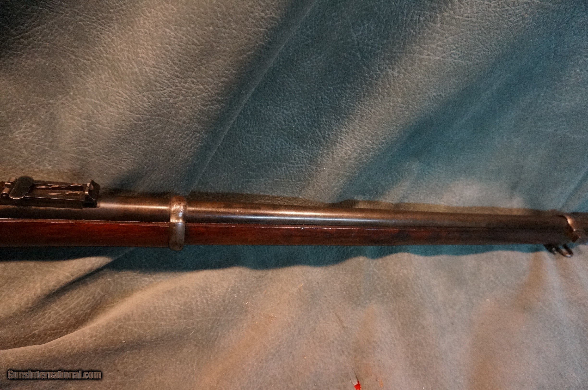 Description: Soper's Patent 450 Rigby Match,32" bbl,serial #672,excellent bore,sidelever action with rotating breechblock and self cocking action,rate of fire of over 30 rounds per minute,fine original condition with bayonet. GUN COLLECTIONS WANTED FOR CASH! We buy, sell, consign and trade new and used firearms.We will pay finders fees and travel for large collections. This is our 45th year in business. We offer 90 day layaways with 20% down. No return on layaways. Firearms will need to be transferred through a FFL dealer. Prices reflect a cash discount. There will be 3% added to credit card sales. We trade for gold and silver. THANK YOU! SOLD |