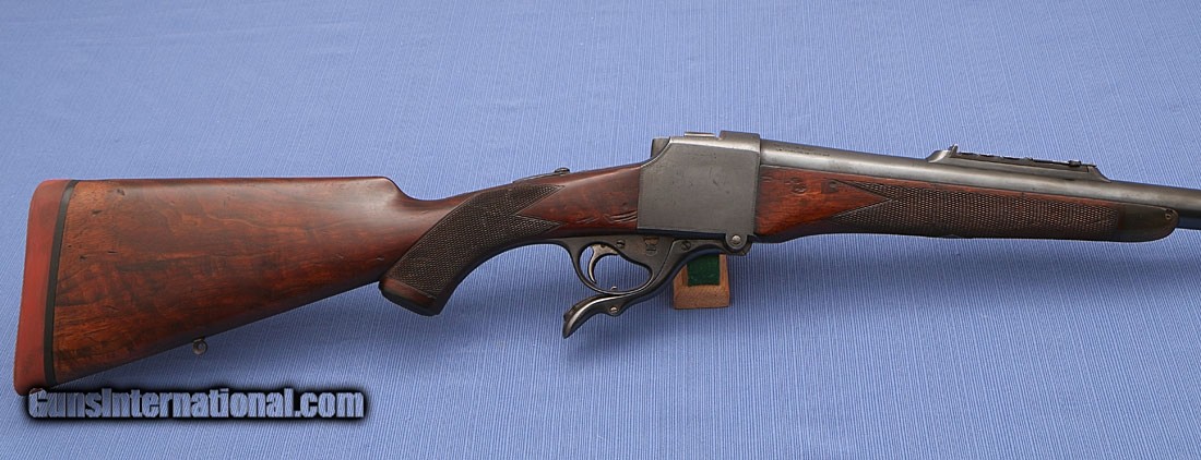 Description: Thomas Turner, Fisher Street, Birmingham - Large Action (No.5) Farquharson Falling Block Single Shot - 450 No.2 Nitro Express - 26" Tapered Bbl, Proved at Cordite 80 & 480 Gr Max, LOP 14-3/8", Weight 10 lbs. 12 oz. Nice Original Finish gun. Bore is Excellent. PLEASE SEE MY OTHER LISTINGS - I will consider trades on any item, and I am not averse to paying if your trade is more valuable than my listed item. Three day inspection always honored. All Federal and State laws apply. No credit cards. Any Tennessee buyer will have to arrange for transfer through another dealer who will have to collect sales tax on the transaction. PLEASE NOTE THE FOLLOWING: No credit cards. I do not have a retail business location. Therefore, any Tennessee buyer will have to arrange for transfer through another dealer, and will have to pay SALES TAX on the transaction. SOLD Curio/Relic: Yes |