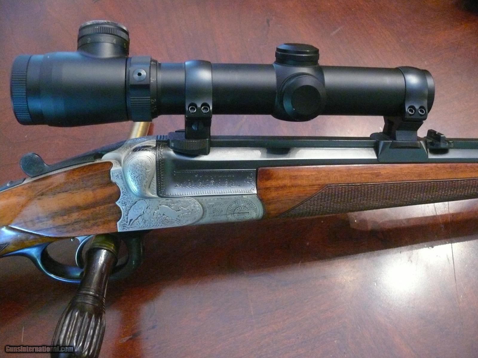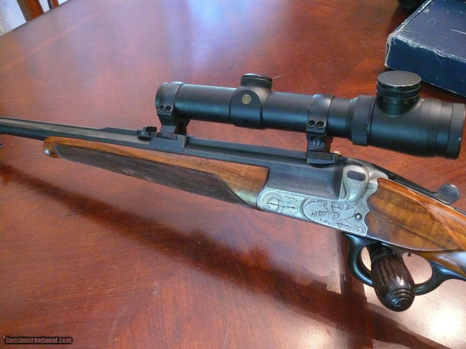 Description: Eblen made rifle built on a Sauer action in the 1930s. Excellent bore on a 26.5" barrel chambered in 8x57JR. Horn trigger Gaurd and single set trigger. Great figured wood and very nice checkering. LOP is 14 1/2". Features a new set of NECG claw mounts with 30mm rings. If you have any questions please let me know. Additional photos are available. Credit cards add 3%, we offer a 3 day non-firing inspection period. Must ship to an FFL and shipping is $40. Thanks for looking. Strength and Honor! SOLD |