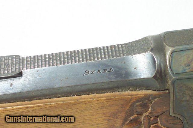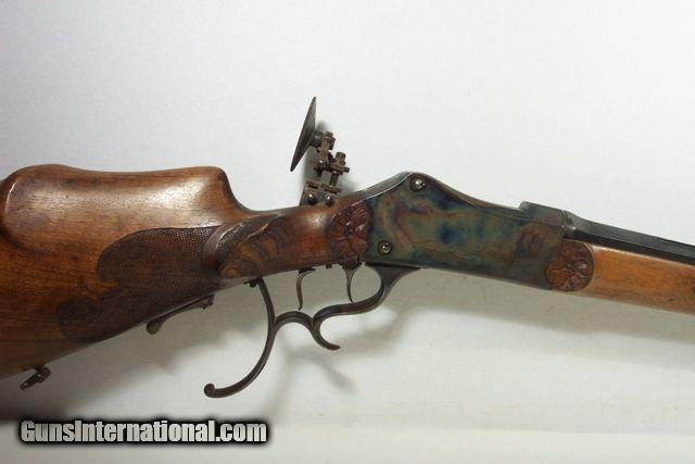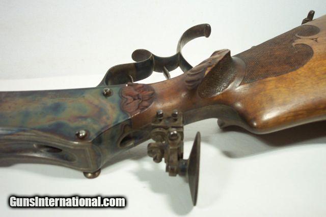 Description: Very fine Schuetzen Rifle by Miller & Greishoff (?); Munchen Germany (now Munich); 8 mm cal.; 8-15-46R?; 29 ½” octagon bbl.; lots of case colors on receiver and butt plate; nice original blue on bbl.; good action and PERFECT bore; set trigger does not work; antique, no FFL/C&R required shipping; from my own personal collection; antique, no FFL/C&R required for out of state shipping; from my own personal collection; SHIPPED FEDEX GROUND IN HARD CASE $65; return policy: three days inspection from the date the item is received; full refund of shipping both ways ONLY IF THE ITEM IS MISREPRESENTED. SOLD Antique: Yes Manufacturer: Miller-Greifhoff? Model: Benchrest & Target |