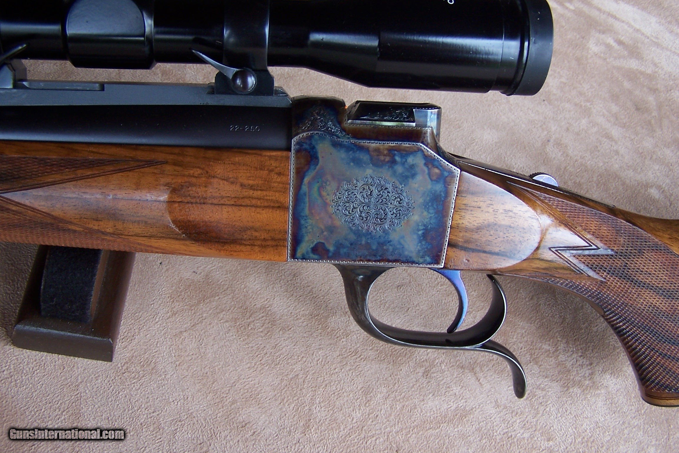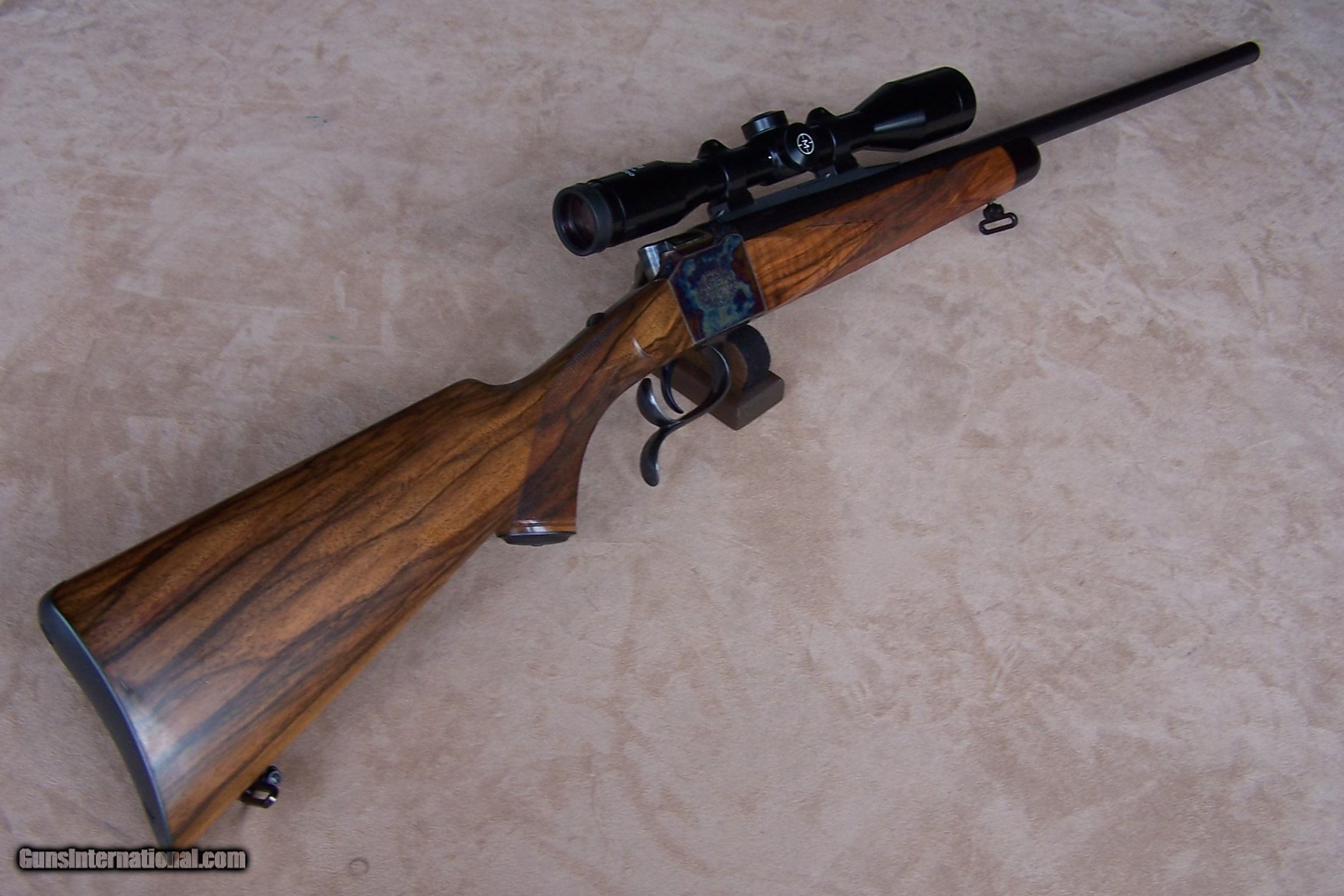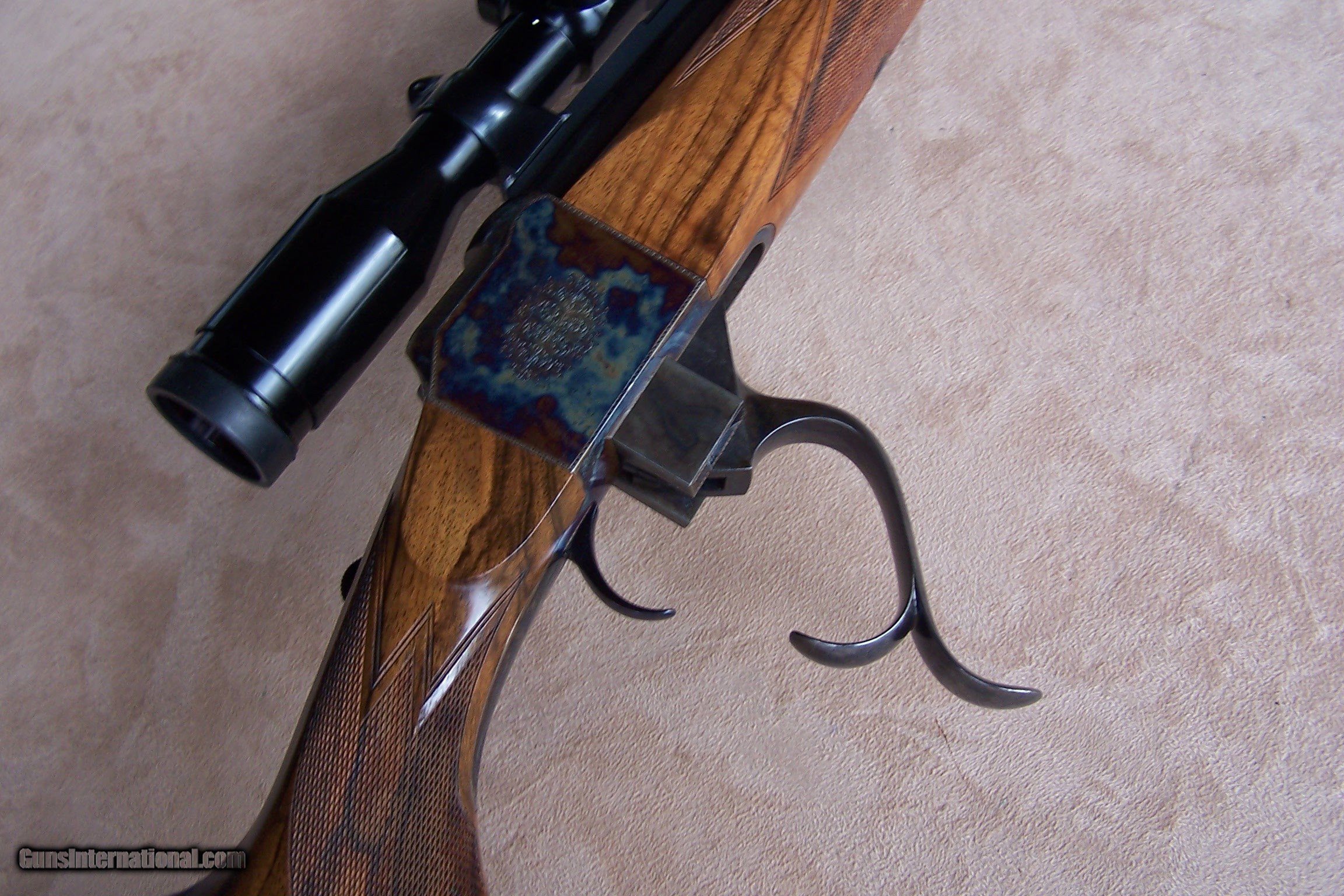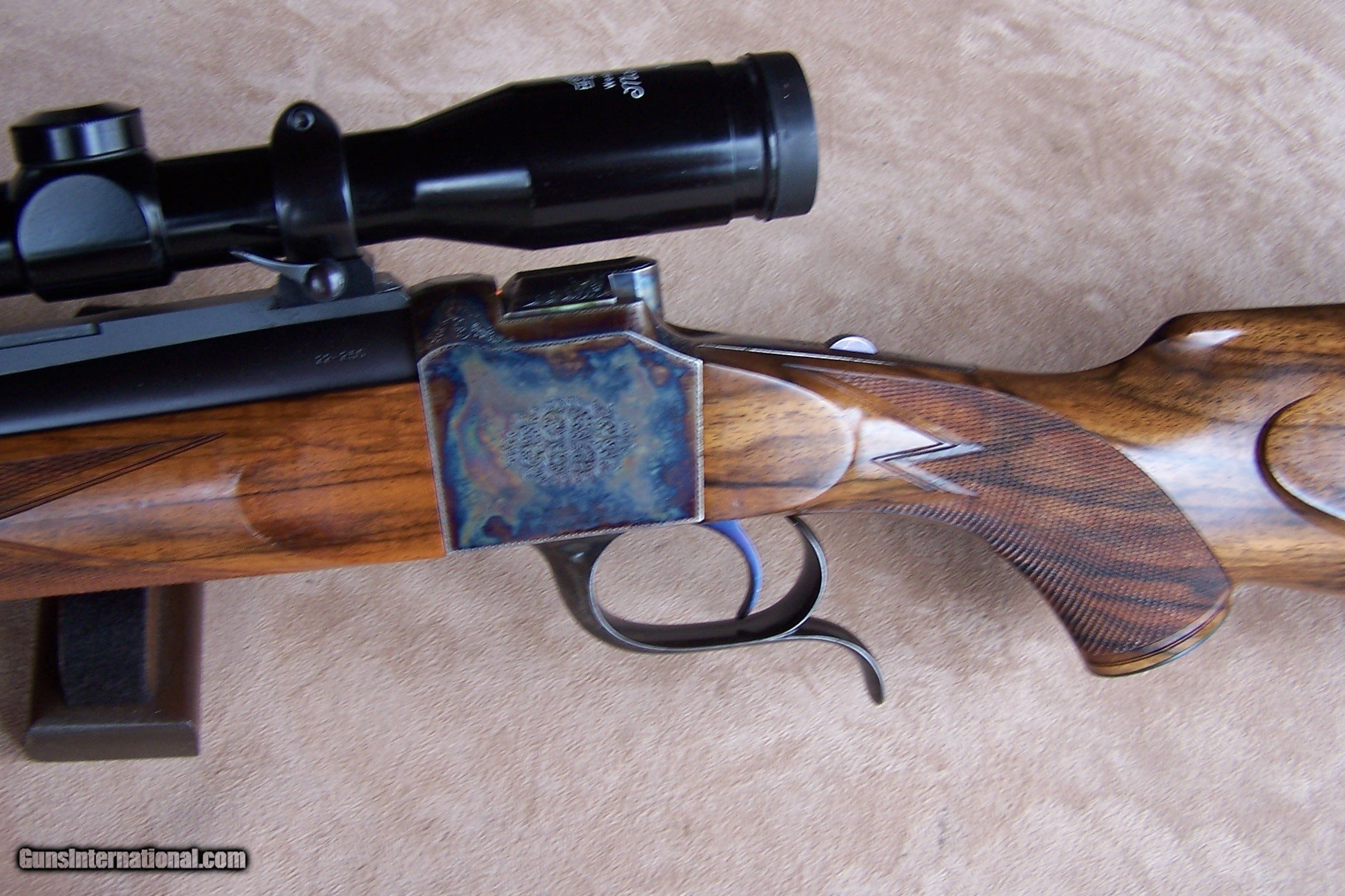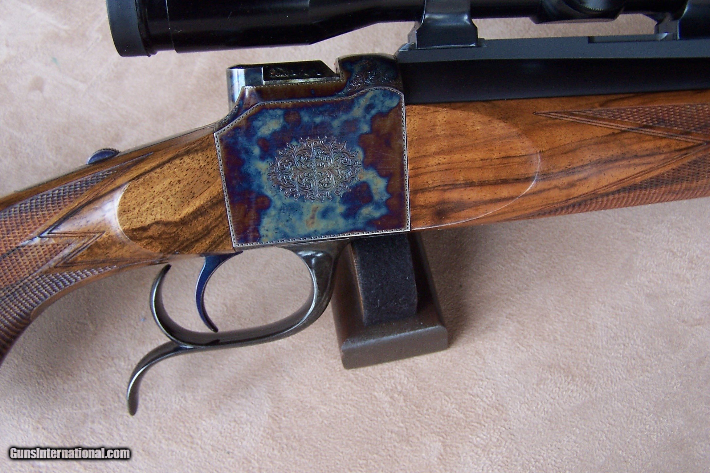 Hagn falling block Engraved Single Shot rifle chambered in .22-250 for the discriminating sportsman