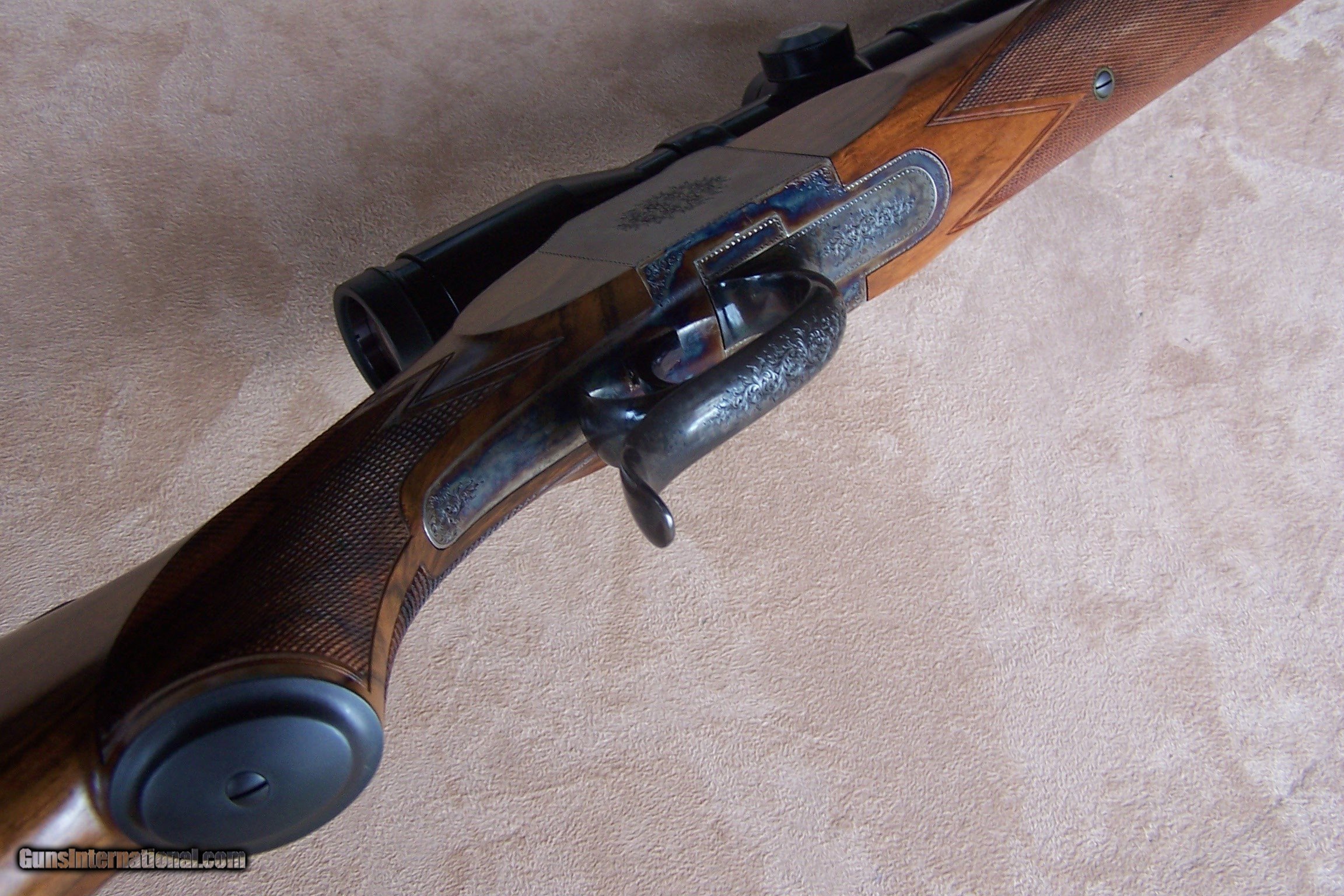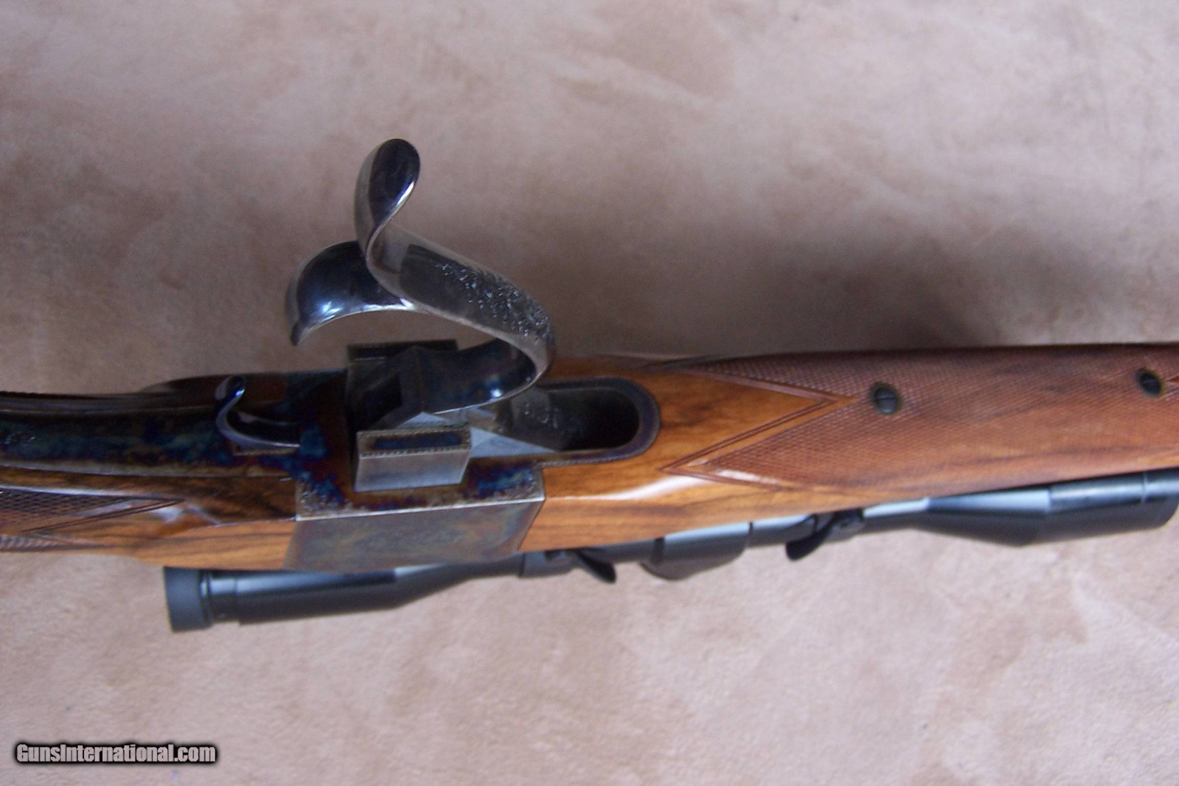 Description: This is a custom single shot falling block that utilizes the famed Hagn action that was designed by Munich-born Martin Hagn. These are regarded as the premier falling block action in the world and used in high grade rifles such as those made by the famed Hartmann & Weiss of Germany. Falling block rifles are characterized by simple handling, light weigh and a short design and are a particularly suitable for hunting is difficult terrain where a compact rifle becomes essential. Falling block rifles with Hagn actions are characterized by their clear-cut design, simplicity of handling, perfect function of all components and a precise single stage trigger. This gun is chambered in the very desirable 22-250 caliber and has a AAA fancy walnut stock with an ebony forend. The action and falling block lever are engraved with a tight scroll pattern and fully case color hardened. The finish is Matte blue and color case hardening. The premium grade barrel is 26” long. The unique roll over safety at the top of the action is synonymous with the Hagn action and a feature that lets the shooter simply give a slight thumb movement to engage and disengage. This gun is equipped with a 10X40 Hertel & Reuss German made scope that is equipped with a set of Warne quick release scope rings. The Hertel & Reuss scope covers are also included. These allow visual use while being installed but keep the moisture out. The gun, while having been built some 40 plus years ago, remains in new condition. This is a deluxe rifle for the sportsman who will only accept the best. I offer a three-day non-firing inspection period and always want the buyer to be satisfied with their purchase. I ship rifles in a hard rifle case to your dealer for the actual cost of the case and shipping. This gun requires an FFL license for transfer. I ship the following day after the payment arrives and provide tracking information. Please see my other collectible firearms that I have listed. Thanks for your interest and please let me know if you have any questions. Price is $5,250.00 plus shipping. Please Note: A same as cash price Lay-A-Way plan is available on this gun. Please call to discuss. Important Note: If you want to insure buying this just Click on the Blue BUY-NOW button to the right of the price below as this closes the listing. SOLD Rifle Caliber: .22-250 Remington Manufacturer: Hagn Model: Single Shot Barrel Length: 26 Condition: As New Metal Condition: As New Wood Condition: As New Bore Condition: As New Action: Falling Block Triggers: Single Stage Stock: AAA Fancy Walnut Finish: Matte Blue & Color Case Hardened Engraving: Yes, Receiver & Lever Item Location: Tennessee |