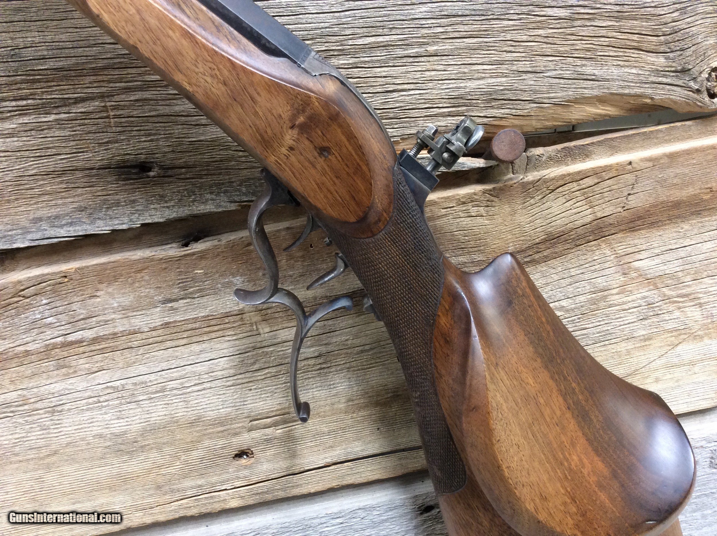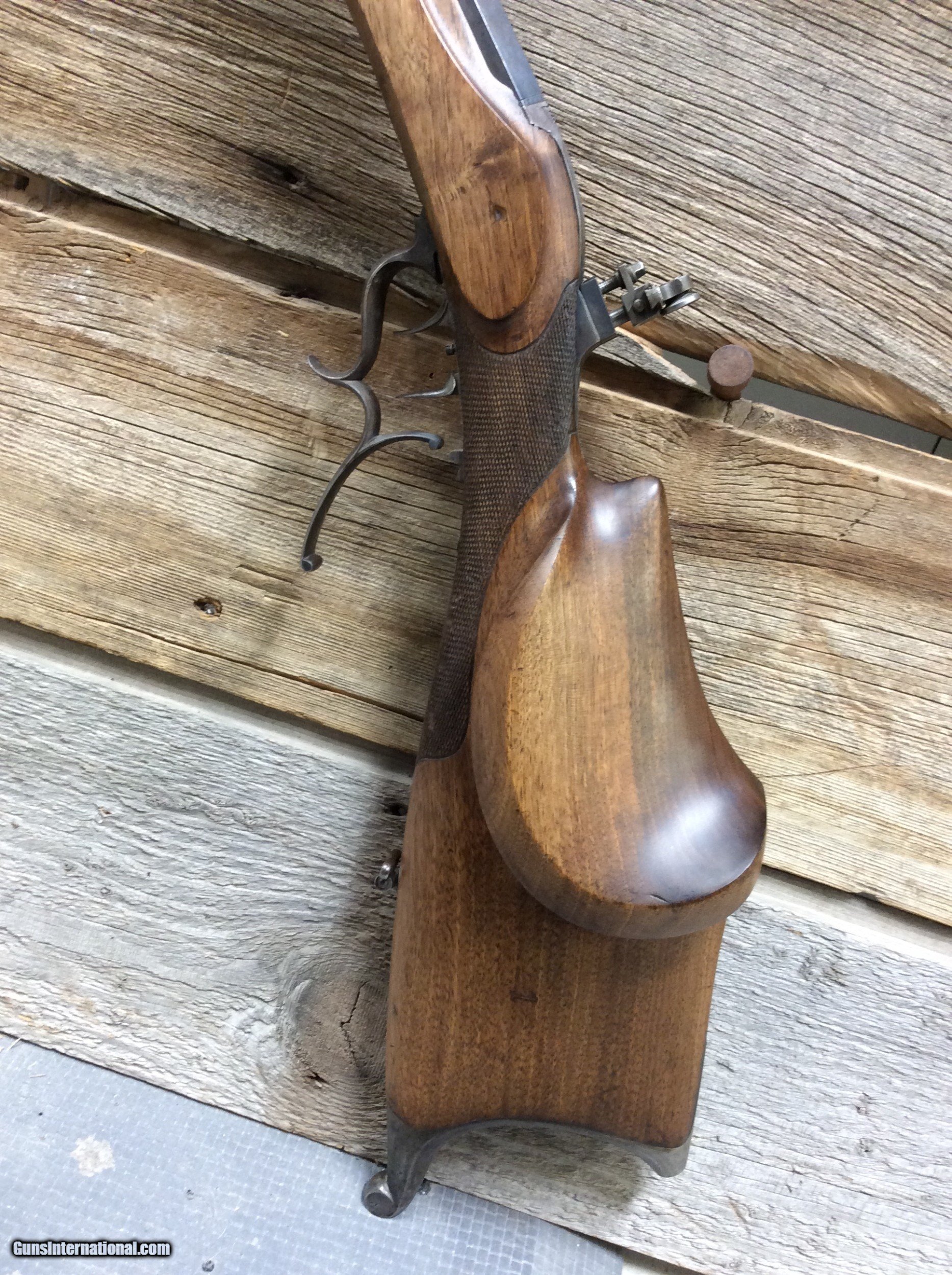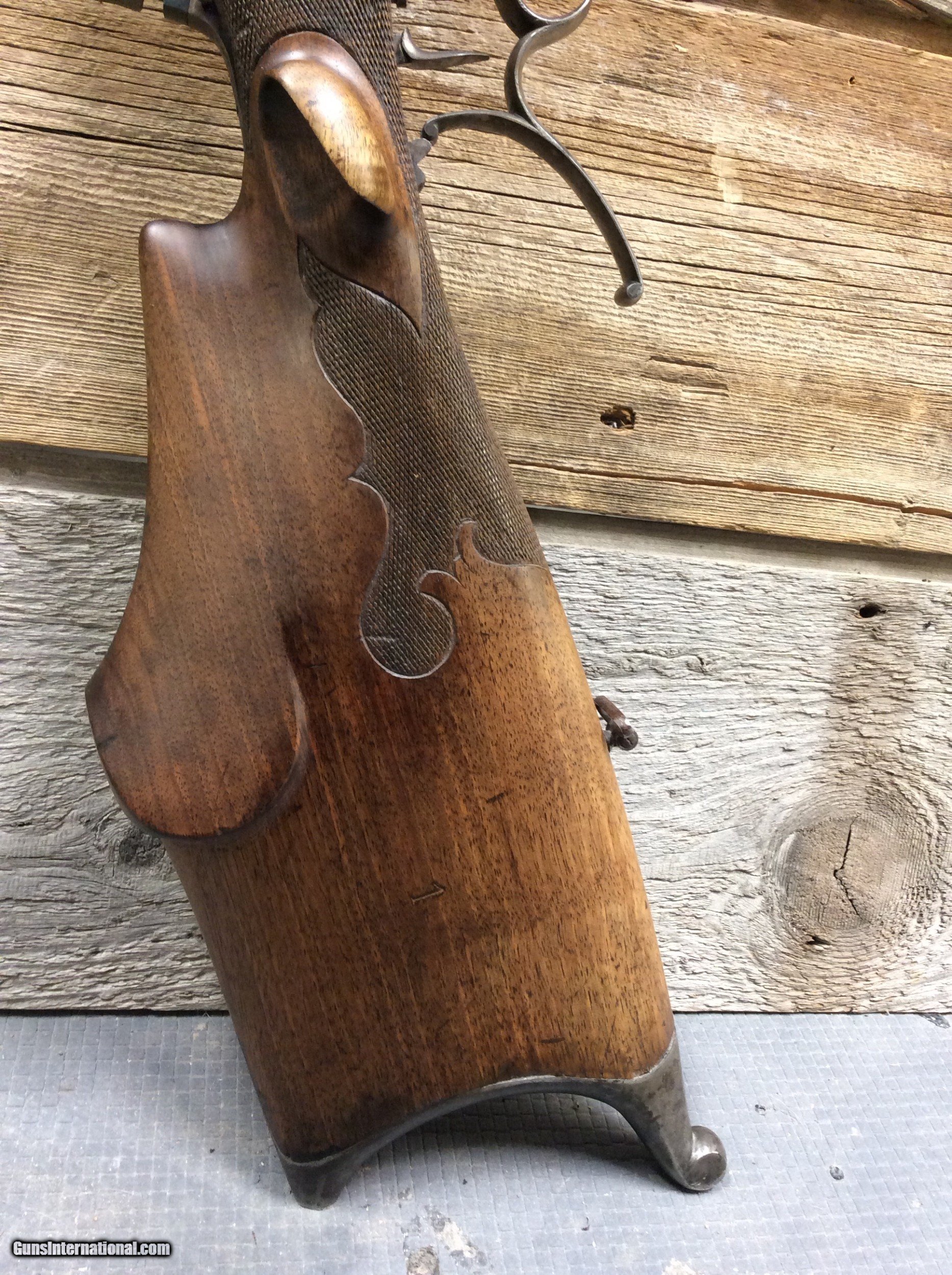 Description: Here’s an Otto Lang Zimmer rifle complete with rear sight. The Parlor/Zimmer rifles were full sized Schutetzen rifles that were used for in door shooting. Firing a 4mm rim fire cartridge similar to a CB cap. They are found in many varieties but are generally missing the rear aperture sight. This is a nice example that falls in the middle of the type. SOLD |
