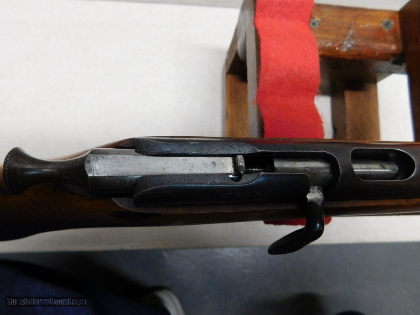 Description: Simson & Co. Training Rifle,22 Short,24-1\2" Barrel,Nice Original Condition, About 80% Bluing with Brown Patina Reciever and some minor Piting,Solid Original Finish Checkered Stock with Cheek Piece and Original Buttplate, Original Barrel Sights, Excellent Function and Bore!! Store hours Thurs-Fri-10AM-8PM Sat-9AM-12PM All Other times please leave a message,Thank You! No California Sales Lower 48 State Sales only Pa. Residents 6% Sales Tax applicable Shipping $ 35.00 SOLD Rifle Caliber: .22 Short Manufacturer: Simson & Co Model: Training Rifle Serial Number: 114222 Barrel Length: 24-1|2 |