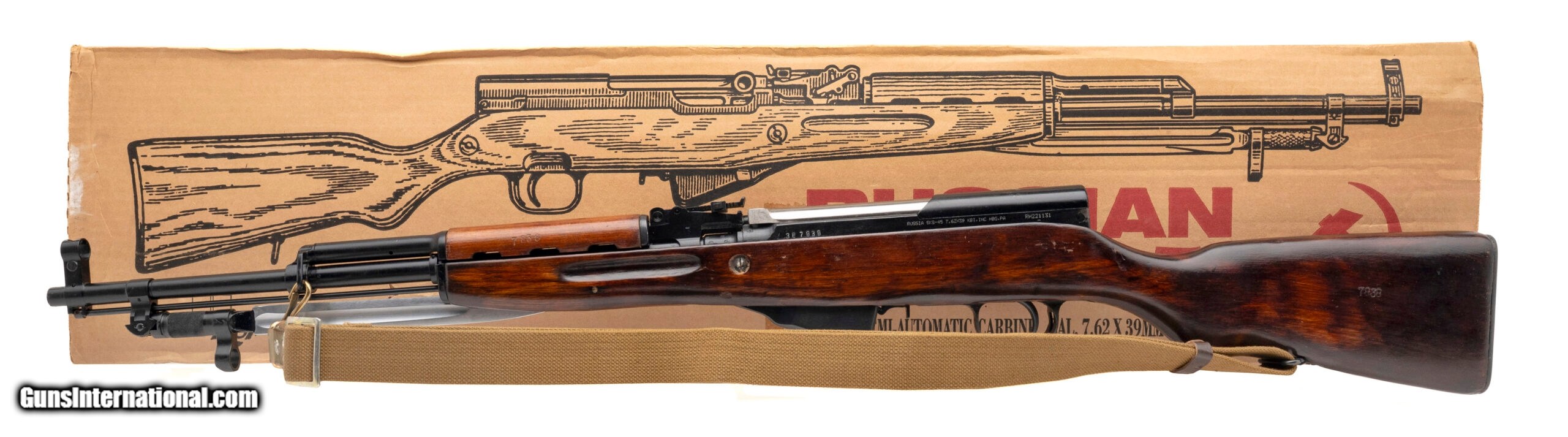 Description: "Serial No. RH221131 (Importer), manufactured in 1954 by Tula Arsenal, 7.62x39mm, 20½" round barrel. Rifle is in overall excellent condition, with light handling marks visible on the stock. Left side of the receiver is import marked. Action is smooth and functions correctly. Includes sling, accessory pouch with stripper clip and cleaning kit, and an additional pouch with oiler and box. A fine example of a mid-20th century Soviet SKS, complete with original accessories SOLD Curio/Relic: Yes |